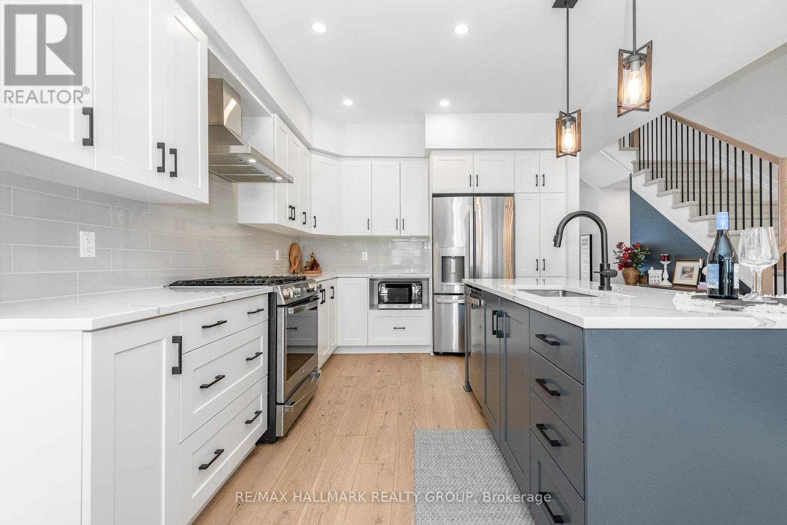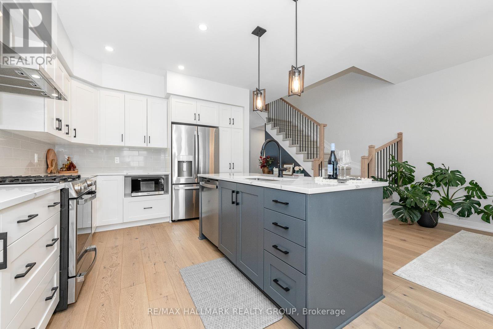 This move-in ready townhome features all-brick & -stone front elevation. A bright & spacious front entry features tile floor, which is extended to the powder room. Inside entry to the oversized garage is also found here. The open concept layout sets the tone for this upscale townhome. Attractive wide-plank wood floors & flat ceilings emphasize spaciousness. The kitchen has been efficiently designed to include sleek quartz counters, an island with breakfast bar, tiled backsplash, microwave sling, pot drawers and pantry. The eating area is currently furnished as media nook and is open to the dining room. The open concept offers flexibility for furniture arrangement. The generous living room is highlighted with an impressive fireplace, recessed lighting, large window and patio door, which offers an abundance of natural light and easy access to the back yard. Comfort characterizes the second level, featuring quality broadloom and ceramic tile flooring throughout. Primary bedroom boasts a walk-in closet, a large window and private luxury ensuite bath with soaker tub, large shower stall and a two-sink vanity. Two additional bedrooms are well-proportioned, offering ample closet space. A multi-use loft is ideal for those who require a home office, and the four-piece main bath and laundry room complete this level. Built with the growing family in mind, the expansive lower level significantly increases the living space of this home. The recreation room with quality carpeting, large window and recessed lighting is the ideal space for informal gatherings. Ample storage and future bathroom rough-in will be welcome features. Separate utility room accommodates the furnace, HRV and hot-water-on-demand system. Plenty of storage space remains in the large unfinished area. Last but not least, a generous back yard provides unlimited opportunity to personalize. This home is beautifully maintained, upgraded and decorated, better than new. Come back to stay! 24 hrs for offers.