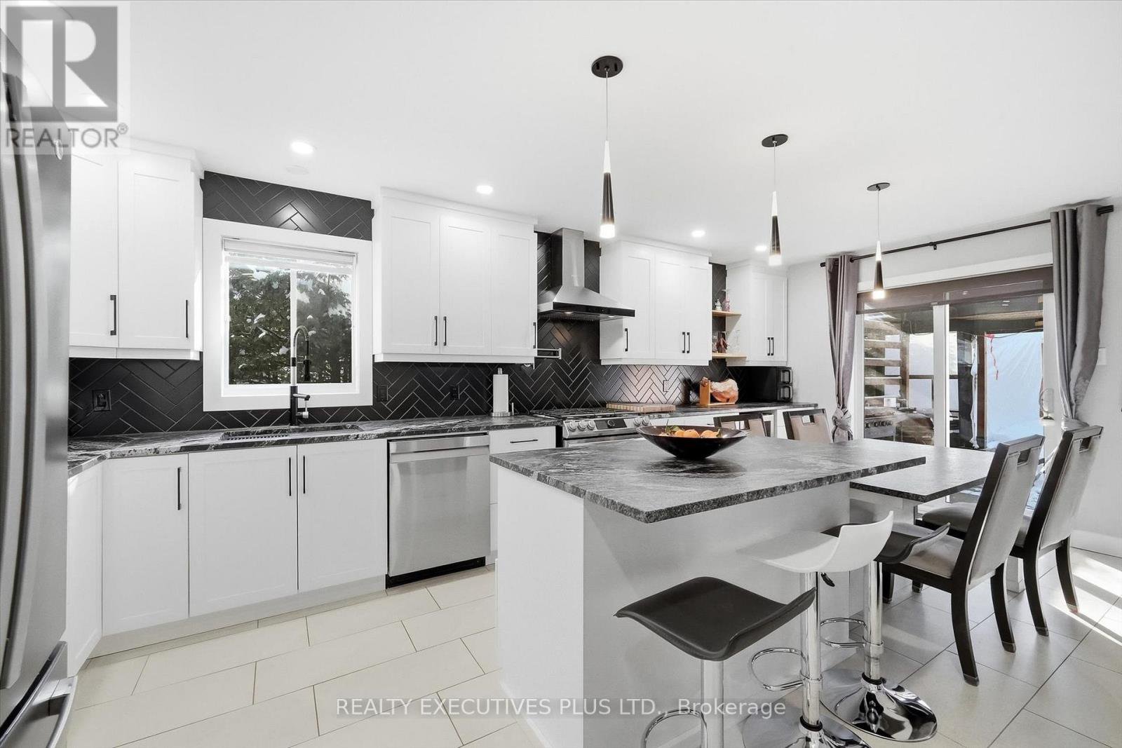 Offered for the first time by the original owner, this extensively updated 3-bedroom home sits on a premium pie-shaped lot with an exceptionally spacious backyard designed for true outdoor living. With 1,551 sq.ft. above grade plus a fully finished basement, this property delivers the perfect balance of comfort, function, and lifestyle. Step outside to your private spa-inspired retreat featuring a covered deck with TV, hot tub, wood-burning sauna, and firepit - an ideal setting for entertaining or relaxing year-round. Inside, the fully renovated 2021 kitchen is a standout, showcasing a gas stove with pot filler, leather-finish granite countertops, abundant storage, built-in dining area, and quality finishes throughout. The main floor bathroom has been fully remodeled. Upstairs, the spacious primary bedroom offers cheater access to a beautifully updated bathroom complete with a walk-in shower and convenient laundry area. Two additional bedrooms are generously sized. The fully finished basement adds outstanding versatility with a Murphy bed, bar area for entertaining, and a stunning 4-piece bathroom (2025) featuring a freestanding tub and heated floors. Major upgrades include heat pump, furnace, roof shingles with lifetime warranty, siding, fascia and soffit, select windows and doors, and full kitchen and bathroom remodels in 2021. All appliances, hot tub, sauna, central vacuum, and window blinds are included.Click the brochure link button to explore the complete list of upgrades, inclusions and detailed improvements made over the years. Move-in ready and meticulously maintained, this home truly has it all.