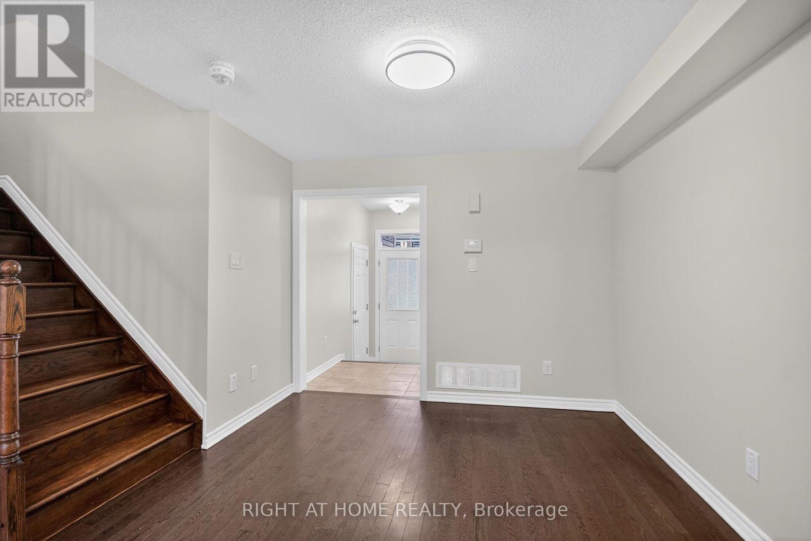 This carpet-free, move-in-ready 3Bed/2.5Bath townhome is located in the family-oriented neighborhood of Half Moon Bay. The main level features a bright open-concept layout with a formal dining area, a spacious living room with a gas fireplace, a well-appointed kitchen, and a convenient powder room. The kitchen boasts upgraded cabinetry, granite countertops, a stylish backsplash, a center island with breakfast bar, and stainless steel appliances. Gleaming hardwood flooring enhances the living and dining areas, complemented by ceramic tile in the kitchen and hallway. The second floor offers a generous primary bedroom with a walk-in closet and a luxurious 5-piece ensuite featuring a glass shower, soaker tub, and double vanity. Two additional generously sized bedrooms and a 3-piece main bathroom complete the upper level. The unfinished basement provides potential for future development or storage space. Fenced backyard with no rear neighbors. Walking distance to parks, public transportation, schools and amenities.