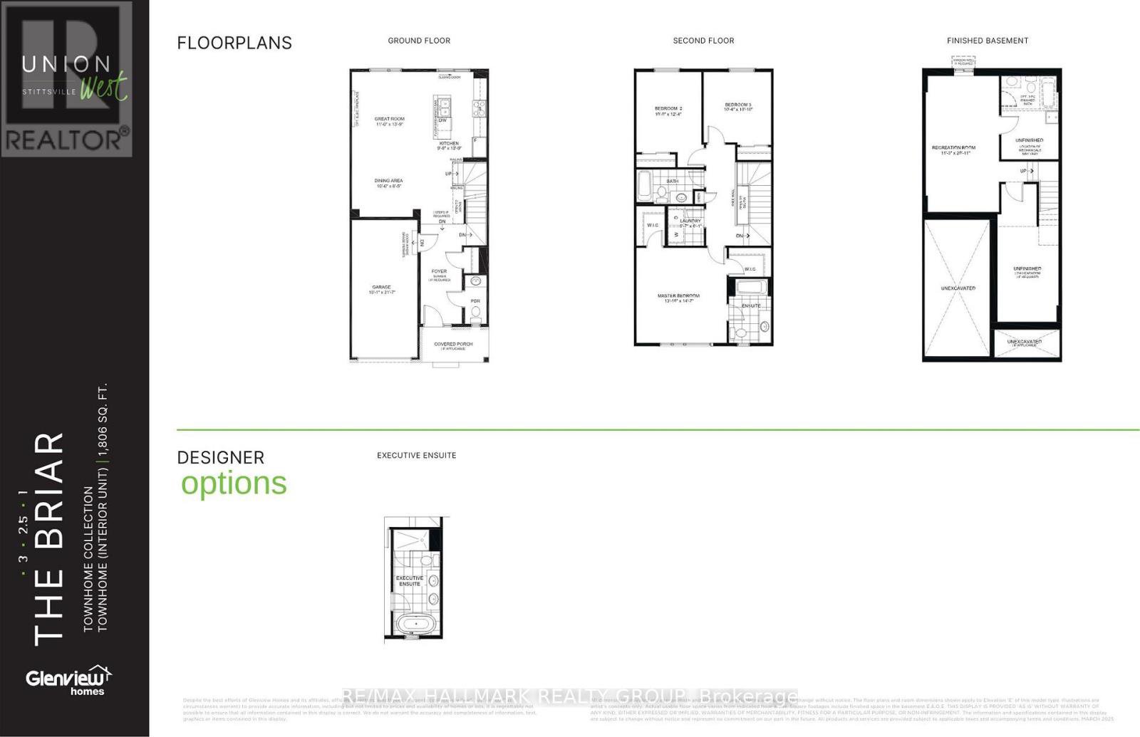 Welcome to Union West - A Move in the Right Direction! Discover the Briar (E) model by Glenview Homes, offering 1,806 sq ft of thoughtfully designed living space, including a 232 sq ft finished basement. This stunning townhome perfectly blends modern style with everyday functionality. Step into the open-concept main floor, elevated by 9-foot smooth ceilings and 7-1/2" wood composite core flooring, flowing seamlessly into the upgraded kitchen. The kitchen boasts quartz countertops in both the kitchen and bathrooms, an enhanced kitchen design featuring pots and pan drawers, 39-inch uppers, and soft-close cabinets. Additional conveniences include a microwave/hood fan combo option, a water line for the refrigerator, and a pot light package illuminating the kitchen and great room. Upstairs, retreat to the luxurious primary bedroom with dual walk-in closets and a bright ensuite complete with a deluxe glass walk-in shower. Two large secondary bedrooms, a spacious full bathroom, and the convenience of second-floor laundry complete the second level. The finished basement offers a versatile rec room featuring an oversized window that brings in abundant natural light, creating a perfect space for family fun, entertaining, or a quiet retreat. Here's the extra something you'll love: this home includes central A/C for comfort year-round. At Union West, you'll thrive in a vibrant, family-friendly community where local shops, restaurants, schools, and recreation centres are seamlessly intertwined with parks, trails, and green spaces. With easy access to transit and just minutes from Ottawa's world-class entertainment venues, this is more than just a home - it's the perfect place to plant your roots.**Home is currently under construction with an anticipated completion/occupancy date of October 15, 2026.**