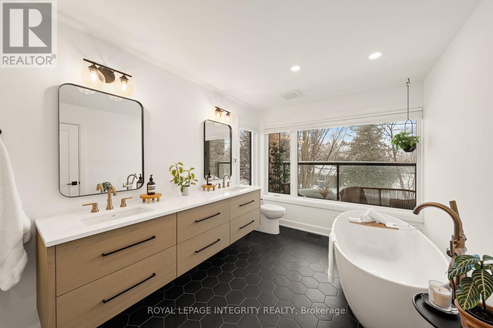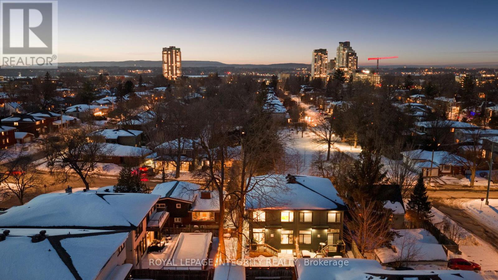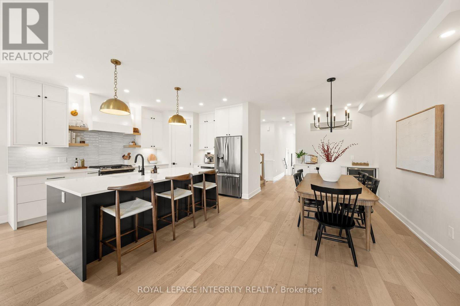 Situated in the heart of Westboro Village and directly overlooking Clare Gardens Park, this exceptional 2022-built semi offers over 3,200 sq ft of beautifully finished living space and an oversized South facing backyard. Thoughtfully designed for modern living with future flexibility in mind, the home features a separate side entrance to the lower level which is fully roughed-in for a legal secondary dwelling - offering excellent potential for multi-generational living or rental income. The main floor is both functional and refined, featuring a dedicated home office, a generous walk-in foyer closet for clutter-free living, and a striking custom gas stone fireplace that anchors the family room. Wide-plank European oak flooring and Hunter Douglas blinds add warmth and texture throughout. At the heart of the home, the custom Deslaurier kitchen showcases quartz countertops, premium appliances, designer lighting, and a walk-in pantry complete with custom millwork. The adjacent dining area is enhanced by an oversized bar with built-in wine fridge - perfectly suited for entertaining.Upstairs, the primary retreat offers an oversized balcony with durable composite flooring and a spa-inspired ensuite with heated floors. Custom millwork continues throughout every closet, maximizing both function and style, while a full upper-level laundry room adds everyday convenience. The fully finished lower features high ceilings, a bright bedroom and full bathroom - well-suited for guests or future suite configuration. All just steps to Richmond Road's boutiques and cafés, the Ottawa River Pathway, and Westboro Beach - an exceptional opportunity in one of Ottawa's most sought-after neighbourhoods. Exterior wooden posts will be sanded & stained. Tarion warranty will transfer. Irregular lot (27 ft frontage, 35 ft at rear). Incredible sound-proofing between the properties. This wonderful home awaits its new owner!
