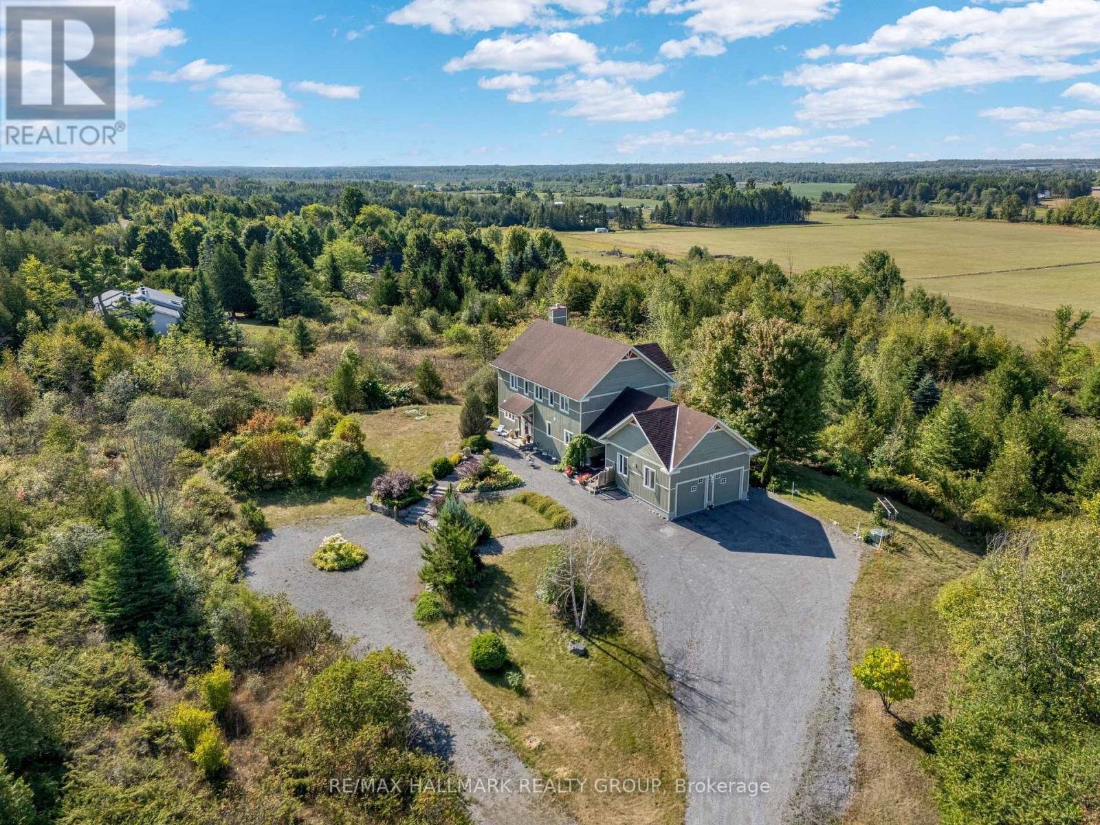 High end custom home with income potential w/ its walk-out in-law suite, this property provides both flexibility and financial opportunity. The feeling of serenity begins the moment you turn onto the driveway, with nature surrounding you on both sides all the way up to where the home is perched at the top. Exceptional 5-bedroom, 4-bathroom thoughtfully designed for comfort, elegance and versatility. This property includes a walk-out lower level in-law suite, ideal for multi-generational living/rental income. The main level greets you with a bright, spacious foyer that leads into the living and great rooms, featuring coffered ceilings, gleaming hardwood floors, and a large balcony off the great room. The kitchen is both functional & inviting, flowing naturally into a bright eating area connecting to a mudroom with abundant storage. A main floor bedroom adds flexibility, perfect for guests or a home office. Upstairs, the primary suite offers a private retreat with a large walk-in closet and a 5-p ensuite. Off bedroom #3 (media room), you'll find another large balcony where you can enjoy beautiful sunset views. Two generously sized bedrooms share a Jack & Jill bathroom, while the laundry room provides everyday convenience. The walk-out lower level feels like its own private home, complete w/ a full kitchen, a living room, bedroom, a cozy nook (office or nursery), a den, a 4-piece bath with laundry, extra room, and ample storage space. Quality & sustainability shine throughout this home, from its durable CanExcel siding to the energy-efficient geothermal heating and cooling system that ensures year-round comfort. Set on 3 acres embraced by forest, the property offers peace and natural beauty from every angle. Mature gardens, fruit trees, forested views fill each window with a different scene of tranquility. Just minutes from Almonte, Carp, Kanata - High Tech Center, and only 35 min from downtown Ottawa making it the perfect balance of privacy, space, and accessibility.