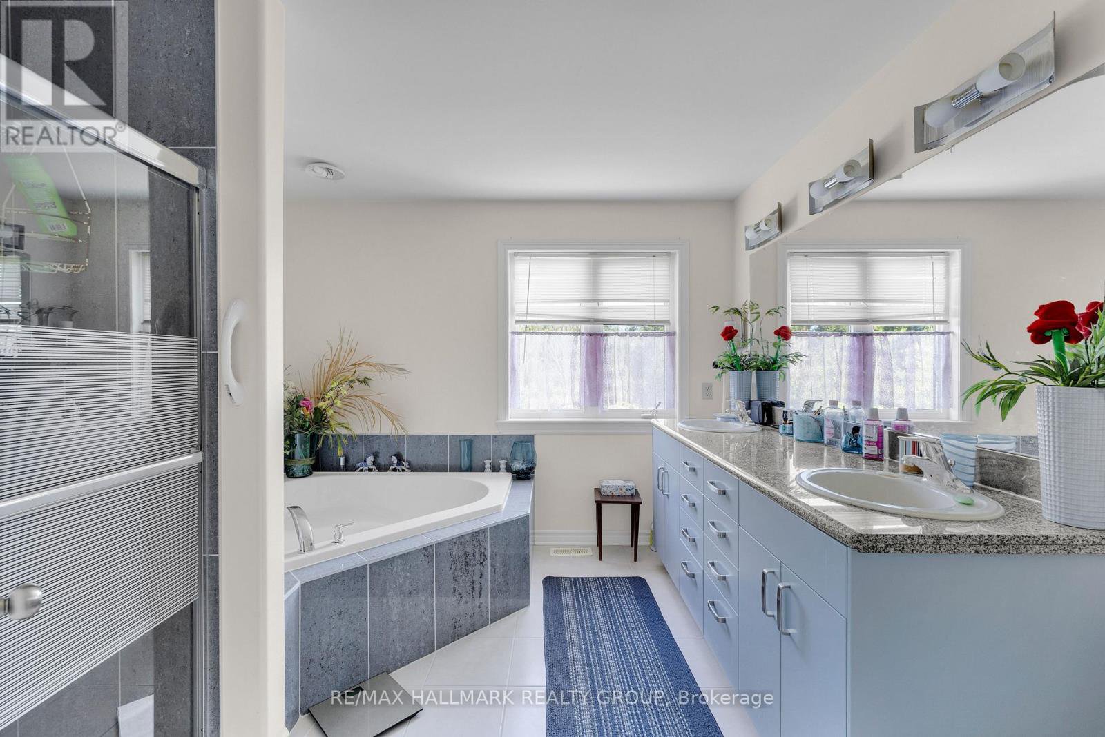 Offering excellent income potential with its walk-out in-law suite, this property provides both flexibility and financial opportunity. The feeling of serenity begins the moment you turn onto the driveway, with nature surrounding you on both sides all the way up to where the home is perched at the top. Exceptional 5-bed, 4-bath custom Doyle Home thoughtfully designed for comfort, elegance, and versatility. This property includes a walk-out basement in-law suite, ideal for multi-generational living/rental income. The main level greets you with a bright, spacious foyer that leads into the living & great rooms, featuring coffered ceilings, gleaming hardwood floors, and a large balcony off the great room. The kitchen is both functional & inviting, flowing naturally into a bright eating area connecting to a mudroom w/ abundant storage. A main floor bedrooom adds flexibility, perfect for guests or a home office. Upstairs, the primary suite offers a private retreat with a large walk-in closet & a 5-p ensuite. Off bedroom #3 (used as media room), you'll find another large balcony where you can enjoy beautiful sunset views. Two generously sized bedrooms share a Jack & Jill bathroom, while the laundry room provides everyday convenience. The walk-out lower feels like its own private home, complete w/ a full kitchen, a living room, bedroom, a cozy nook for an office or nursery, a den, a 4-piece bath with laundry, and ample storage. Quality & sustainability shine throughout this home, from its durable CanExcel siding to the energy-efficient geothermal heating & cooling system that ensures year-round comfort. Set on 3 acres embraced by forest, the property offers peace & natural beauty from every angle. Mature gardens, fruit trees, forested views fill each window with a different scene of tranquility. Just minutes from Almonte, Carp, Kanata - High Tech Center, and only 35 min from downtown Ottawa making it the perfect balance of privacy, space, & accessibility.