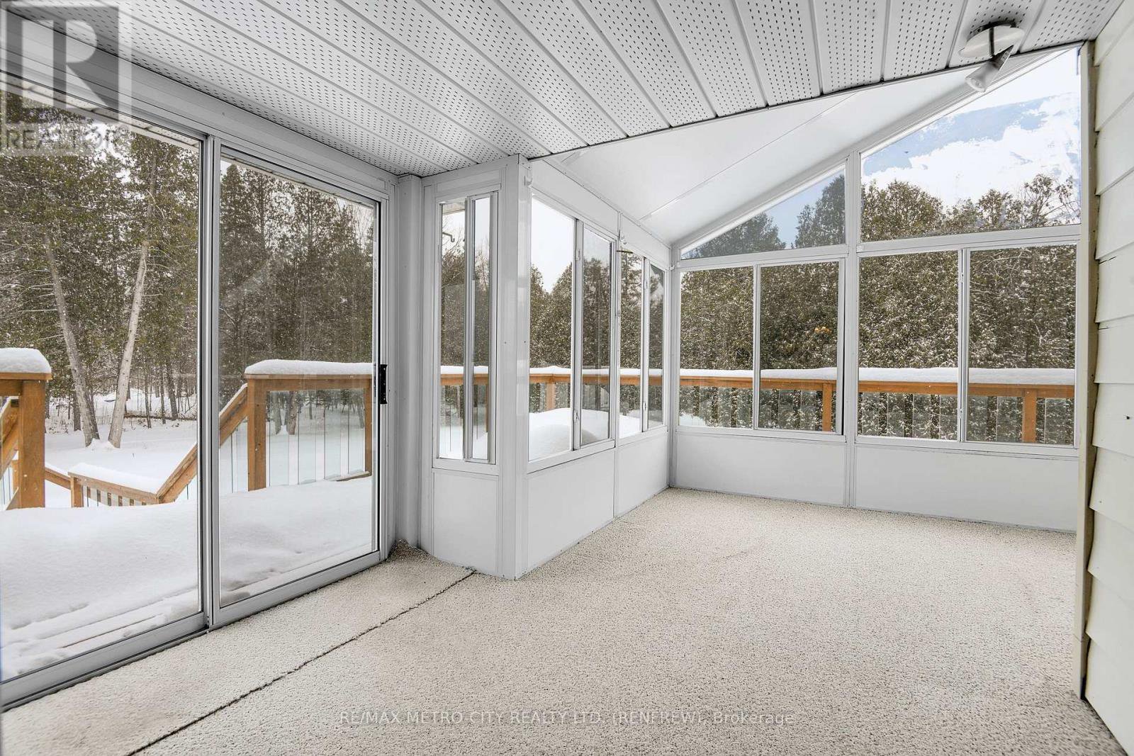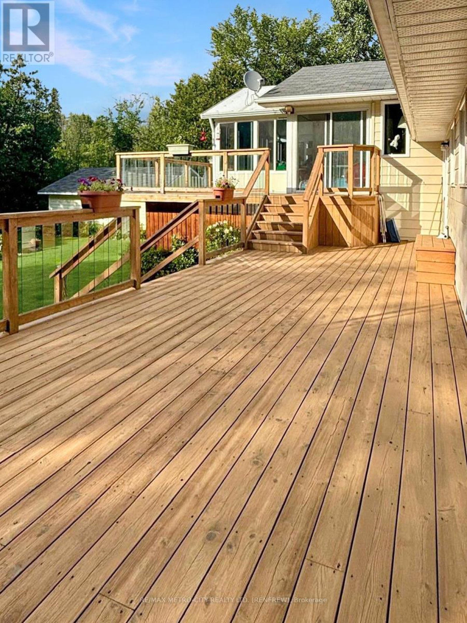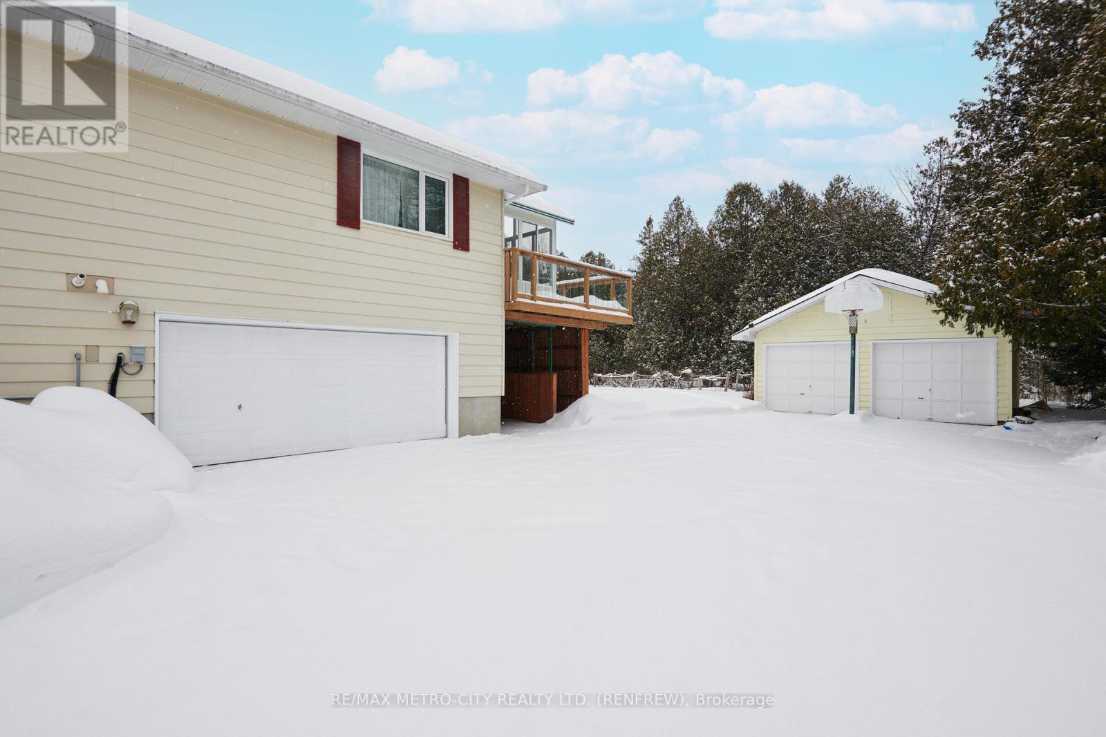 Welcome to this immaculate three-bedroom home, showcasing pride of ownership throughout, nestled on a beautifully landscaped 2-acre lot in a highly desirable and established area of Braeside. Enjoy the peace and privacy of backing onto a lush forest, making this property a perfect retreat for families. This impressive residence features both an attached two-car garage and a detached two-car garage, offering ample space for vehicles and toys. Upon entering, you'll discover a spacious layout designed for family living. The upper level boasts a generously sized kitchen with a spacious eating area, complemented by a formal dining room for special occasions. The inviting living room, equipped with a gas fireplace, ensures comfort during cooler months. The three season room with its many windows is a perfect refuge and added entertaining space as it opens to the extensive rear deck. The main level houses three well-appointed bedrooms, including a spacious primary suite with a convenient 3-piece ensuite. An additional 4-piece bathroom and laundry room enhance the functionality of this floor. The lower level is ideal for relaxation and recreation, featuring a family room, mudroom, utility room with access to the attached garage. The basement also includes a large workshop, and a rec room-perfect for entertaining guests as well as a 3-piece bathroom with a sauna for ultimate relaxation. With a 200 amp service and a forced air natural gas furnace, paired with central air conditioning, you'll enjoy comfort year-round. Step outside to the expansive rear deck, where you can overlook the meticulously manicured gardens that embellish the property. Don't miss the opportunity to call this stunning home yours! Please allow 24 hours irrevocable on all offers.