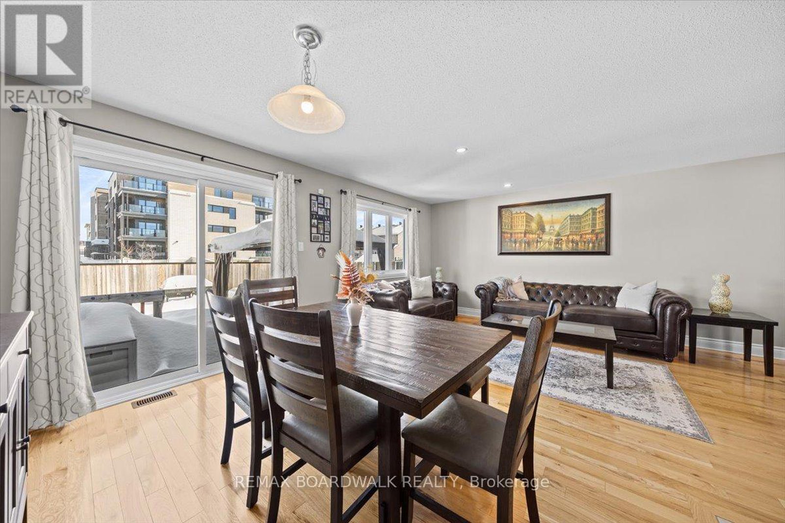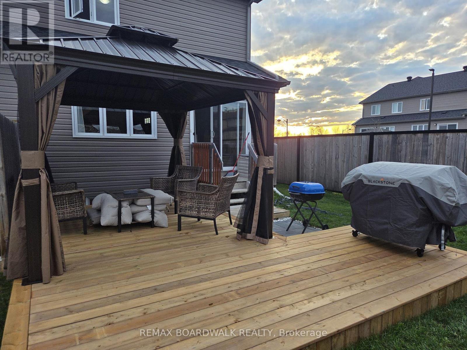PERFECT STARTER HOME! This 3-bedroom end unit townhome is located in the family-friendly Morris Village community. Step inside to a welcoming entrance and an open-concept main level filled with natural light. The upgraded kitchen features a large island, granite countertops, stainless steel appliances, and flows seamlessly into the dining and family room. Upstairs, find three generously sized bedrooms with recently upgraded hardwood flooring. The primary bedroom includes a walk-in closet and a cheater door to the spacious five-piece bathroom. The fully finished basement offers a large family room and plenty of storage. Enjoy the backyard oasis with a large L-shaped deck (2025), gazebo with netting and privacy curtains (2025), 4x4 ft interlock paver area for BBQ (2024), shed (2022), partially fenced yard (2022), and elevated garden bed (2022). Well maintained and move-in ready - don't miss the chance to make it yours!