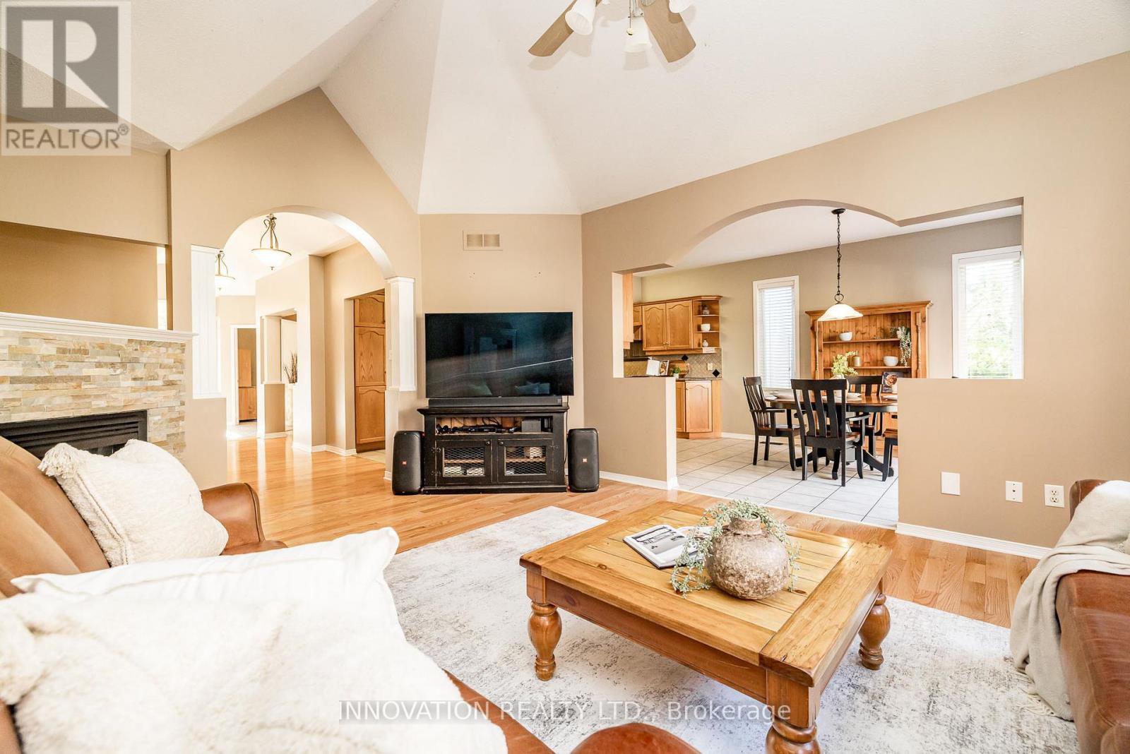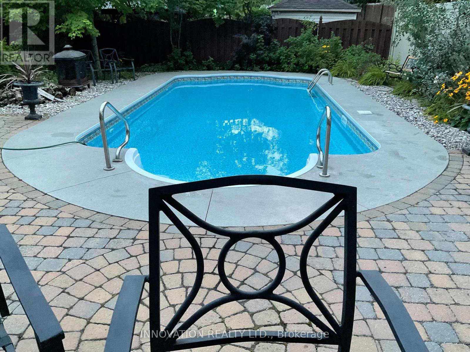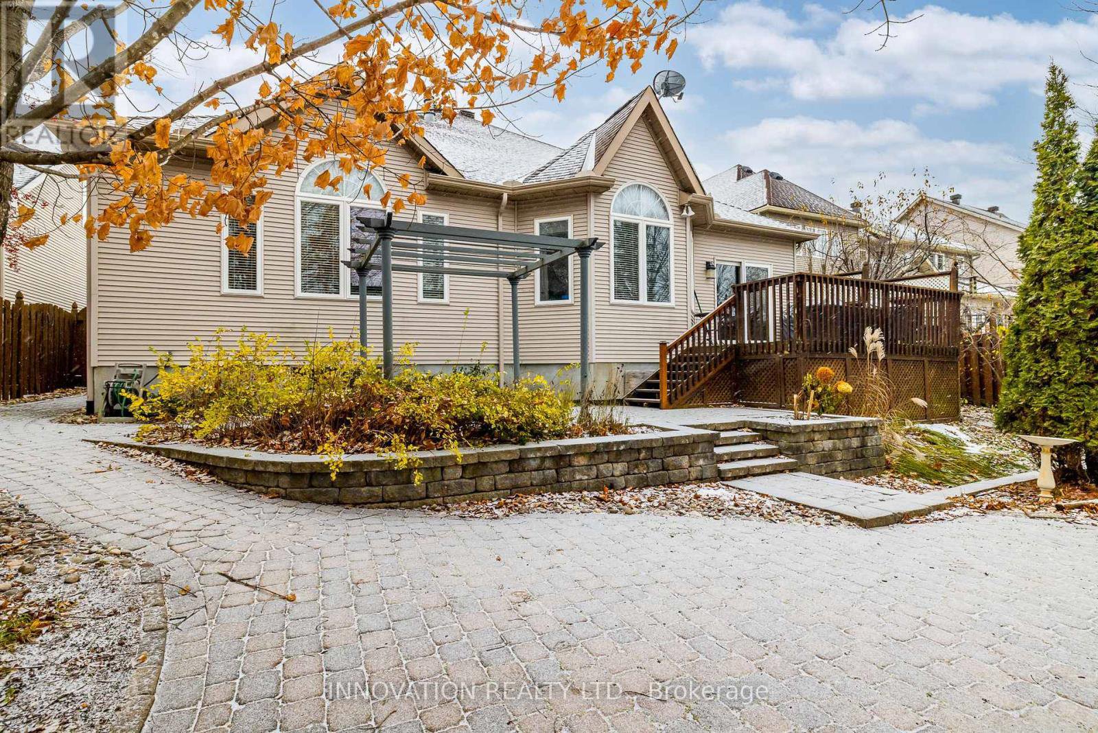 A Custom Bungalow Defined by Space and Lifestyle in Crossing Bridge.Offering impressive room proportions, true main-floor living, and a private backyard retreat, this home is designed to live beautifully-inside and out. Wide accessible hallways, 36" doorways, and exterior ramps support comfort at every life stage, all set on an oversized, landscaped lot. Inside, the open layout provides exceptional flow for daily living and entertaining. The bright family room with cathedral ceiling and gas fireplace connects seamlessly to the spacious eat-in kitchen. Granite countertops, deep pot drawers, extensive pantry cabinetry, and high-end stainless steel appliances-including a Monogram gas stove with commercial-grade hood-create a functional and well-equipped culinary space. A separate dining room is ideal for family & friend gatherings. The front bedroom works perfectly as a home office, while the private primary suite features a walk-in closet and spa-inspired 4-piece ensuite with corner tub and separate shower. The second bedroom offers cheater access to an additional full bath; both bathrooms include granite countertops. A practical mudroom with direct ramp access from the garage adds everyday convenience. Summer living shines in the fully fenced backyard with interlock patios, heated saltwater pool (4'6" depth), pool house with retractable awning, and pergola-creating a private outdoor setting for relaxing or entertaining.The lower level, complete with bathroom rough-in, offers excellent potential for additional living space, gym, theatre, or games area, plus generous storage. Rarely do bungalows of this scale and quality come available in Crossing Bridge. Enjoy spacious single-level living steps from parks, pathways, highly regarded schools, restaurants, and everyday amenities.(A/C 2020, pool liner 2024, GAF roof 2016, Monogram stove 2022, irrigation)