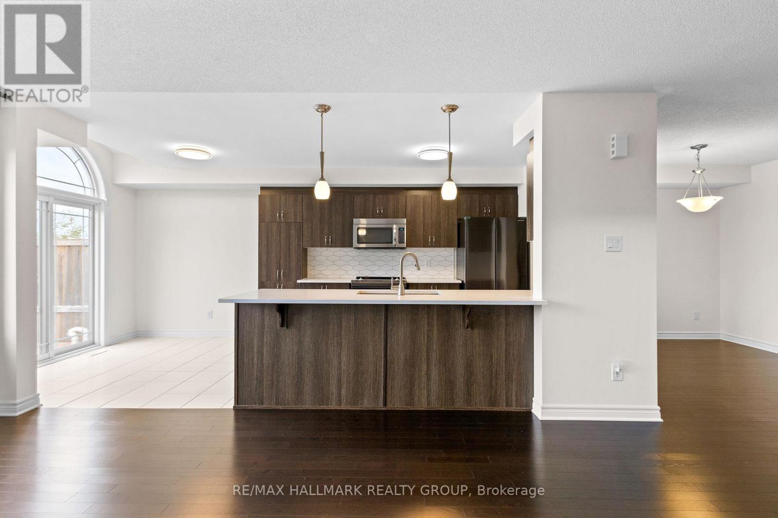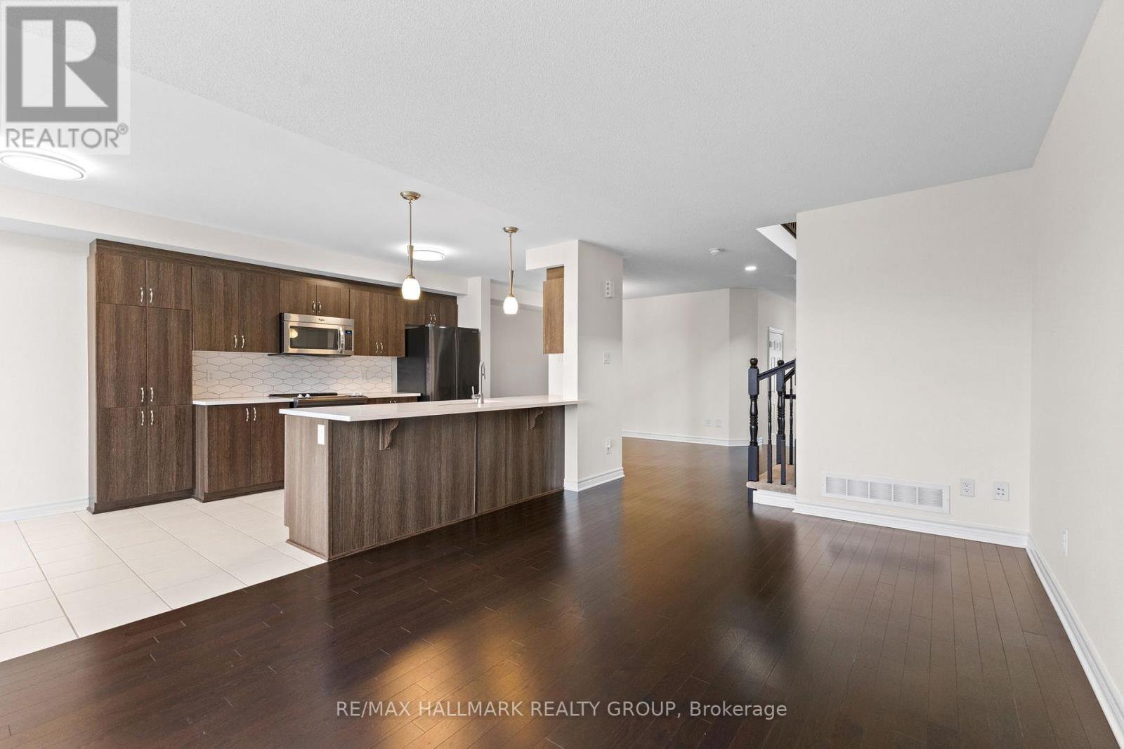 Welcome to this exceptional Marseilles II end-unit by Valecraft Homes offering 1,740 sq ft above grade on an extended premium lot with no rear neighbours. Backing onto open space, this home delivers rare privacy, natural light, and functional living space in one of Kanata's most desirable communities.A sunken foyer and dramatic curved staircase create an impressive entrance, while rich hardwood floors run throughout the main level. Unlike most townhomes, this layout features both a formal dining room and a bright separate breakfast area, offering flexibility for everyday living and entertaining.The upgraded kitchen showcases quartz countertops, an elongated hexagon backsplash, abundant cabinetry, and a new stainless-steel fridge (Sept 2025).Upstairs offers three generously sized bedrooms, including two oversized secondary rooms. The primary suite features a large walk-in closet and a 4-piece ensuite with a corner soaker tub and separate shower. Convenient second-floor laundry and a full main bath complete this level.The finished basement spans nearly the full width of the home with a cozy gas fireplace and a bathroom rough-in for future potential.Outside, enjoy an extended backyard with no rear neighbours and a long driveway for ample parking. Move-in ready with space, style, and privacy. Book your showing today!