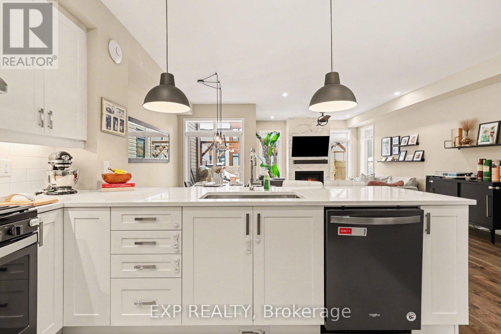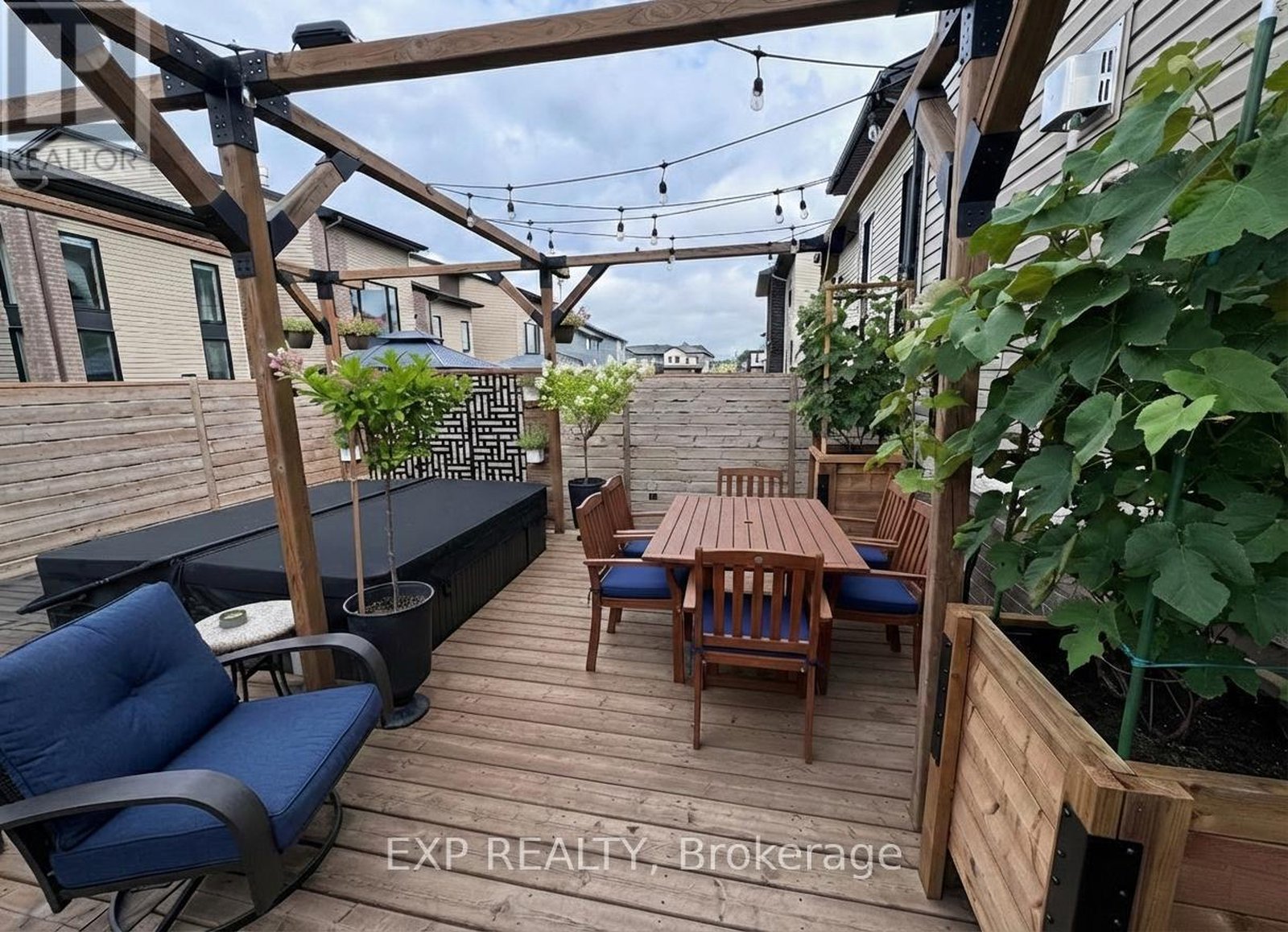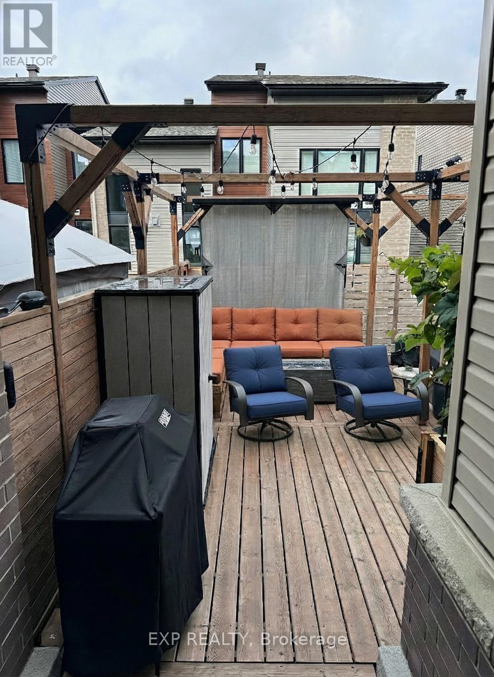Welcome to 567 Rathburn Lane an exceptional Urbandale Discovery end-unit in the heart of Findlay Creek, thoughtfully upgraded and meticulously maintained. This 3-bedroom, 3.5-bath residence blends refined design with everyday functionality, offering a sun-filled open-concept layout and an expanded, fully finished basement.The main level is elevated with extra-wide plank engineered hardwood, large-format tile, designer lighting, and custom built-ins at the entry with generous mudroom storage. The chef's kitchen is both elegant and practical, featuring upgraded cabinetry with soft-close details, striking quartz countertops, and premium appliances, a space designed to entertain beautifully. Upstairs, the primary suite feels like a true retreat with soaring 10-foot ceilings which create an airy, luxurious atmosphere, complemented by a spacious walk-in closet and a beautifully finished 4-piece ensuite designed for daily comfort. Two generously sizeds econdary bedrooms, a stylish full bath, and a thoughtfully positioned laundry room complete this level with both elegance and practicality. The expanded lower level delivers impressive additional living space, enhanced by a full 3-piece bathroom and endless flexibility for a home gym or executive office. Outside, the widened two car driveway and professionally landscaped, fully fenced backyard unveil a truly private sanctuary. An expansive wood deck anchors the space, framed by a striking architectural pergola that defines an inviting outdoor entertainment space. The hot tub is positioned for year-round enjoyment, while the surrounding river rock detailing and touches of greenery enhance both privacy and design. Whether hosting summer gatherings under the pergola or enjoying quiet evenings beneath the stars, this outdoor setting delivers a refined, resort-inspired experience rarely found in townhome living. This is the one buyers wait for. Refined, upgraded, and ready to impress.