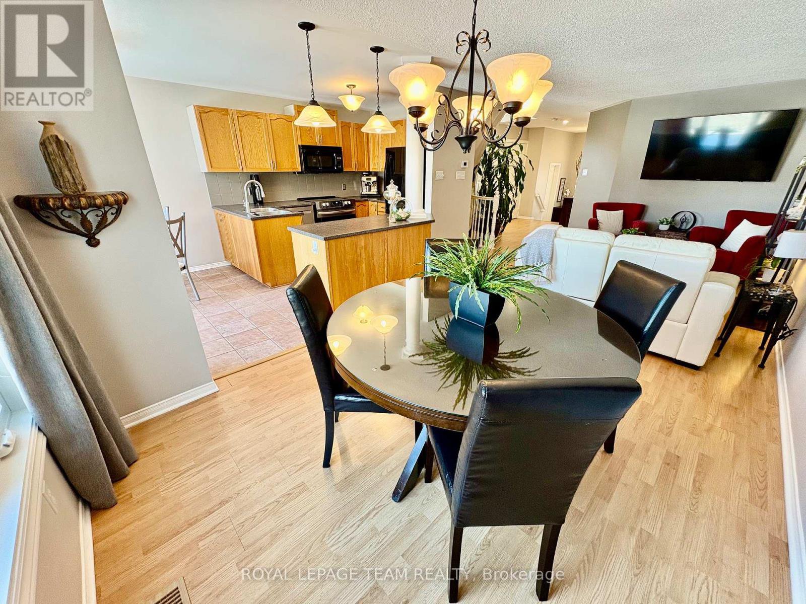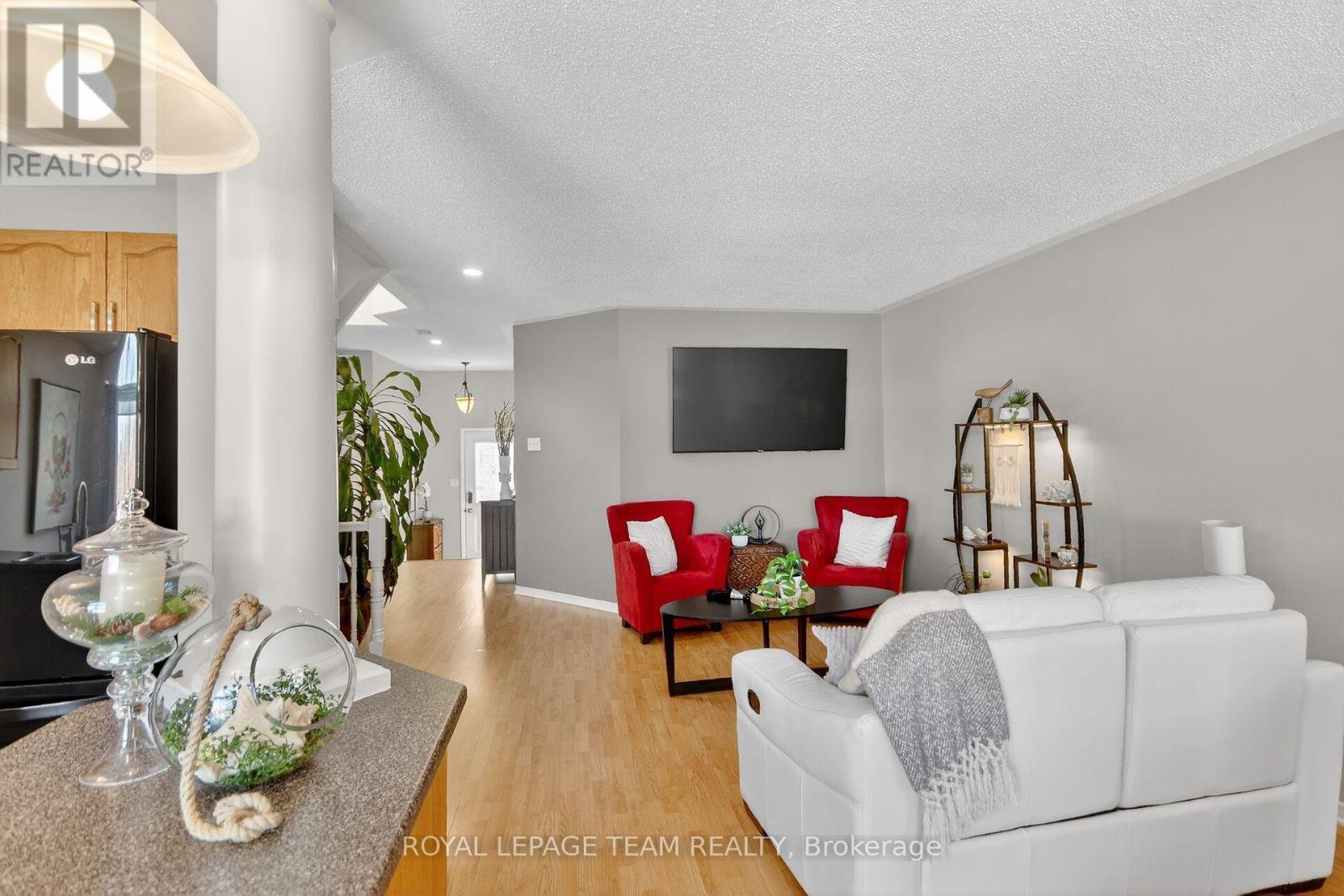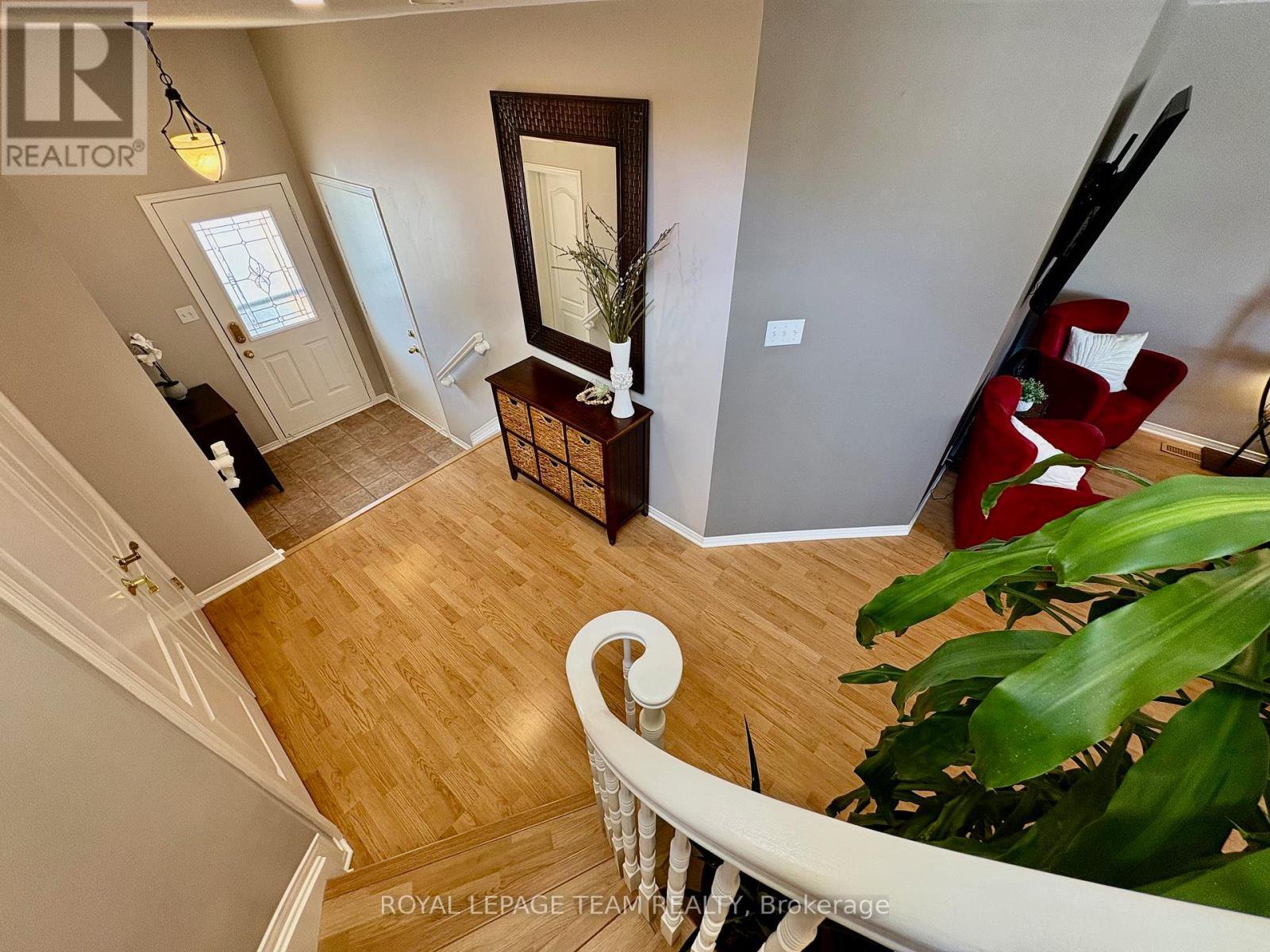 Open house 2-4 March 8th. Welcome to this beautiful semi detached home situated on a desirable pie shaped style lot in the lovely community of Chapel Hill North. You will be introduced by a sizable front foyer overlooking a stunning circular staircase with a lovely large window. This wonderful well maintained home showcases a lot of natural light. The open concept main level features a generous size lining/dining room, a breakfast area with partial vaulted ceiling and a functional kitchen with peninsula counter space in addition to a spacious island, double sink, and built-in microwave oven hood fan combo, all of which provide views of the backyard. Leading to the upper level you will be delighted by the spacious primary bedroom providing a walkin closet, electric fireplace and a convenient ensuite bathroom with separate shower and soaker tub. There are two sizable secondary bedrooms with double closets, a functional shared bathroom and a linen closet to complete the second level. Have fun and host your guests in the finished basement family room featuring a gas fireplace and good size window. There is plenty of storage space for all your personal needs, a practical laundry tub and no carpet to allow for easy maintenance. The backyard has a cedar deck & fence, perfect to entertain your family and friends including a hot tub. The Minto home plan indicates a total size of 1867 SQFT. Central air conditioning, practical interior garage access from the front foyer, garage door opener and 2 exterior parking spots for a total of 3 parking. You will appreciate that this home is surrounded by so many amenities such as shopping, transit, schools, parks, sport facilities and so much more. Take a moment to review the link for the panorama videos and additional pictures. As well as reading the multiple upgrades & special features list attached. Enjoy this nicely presented and move in ready home for your family to create new memories.