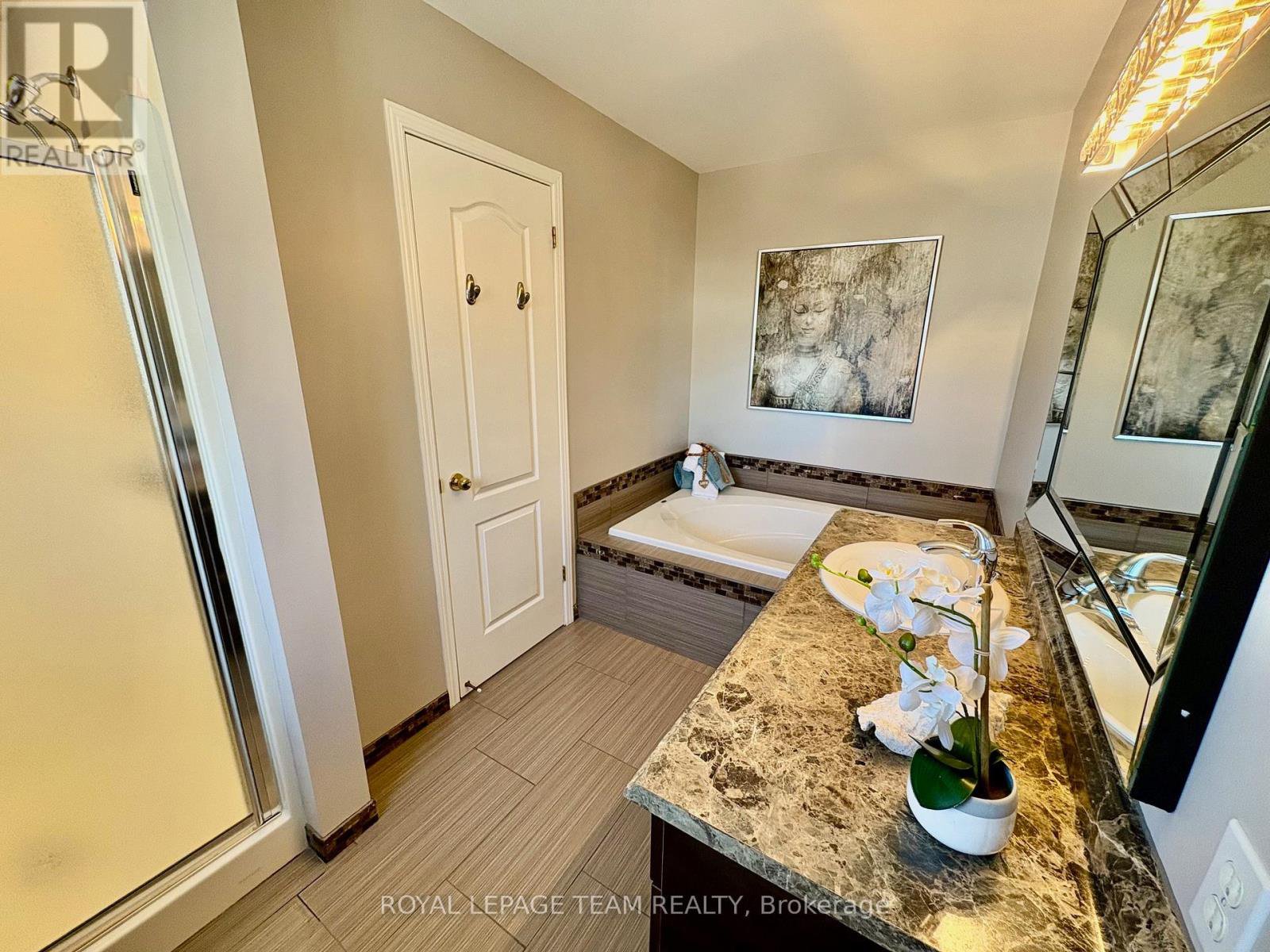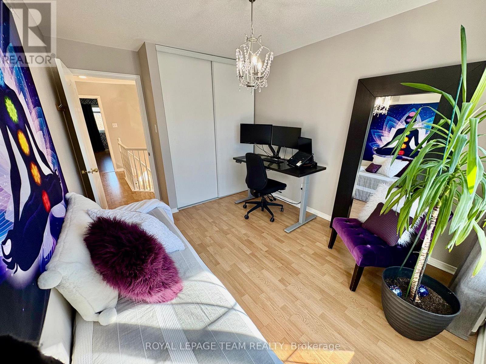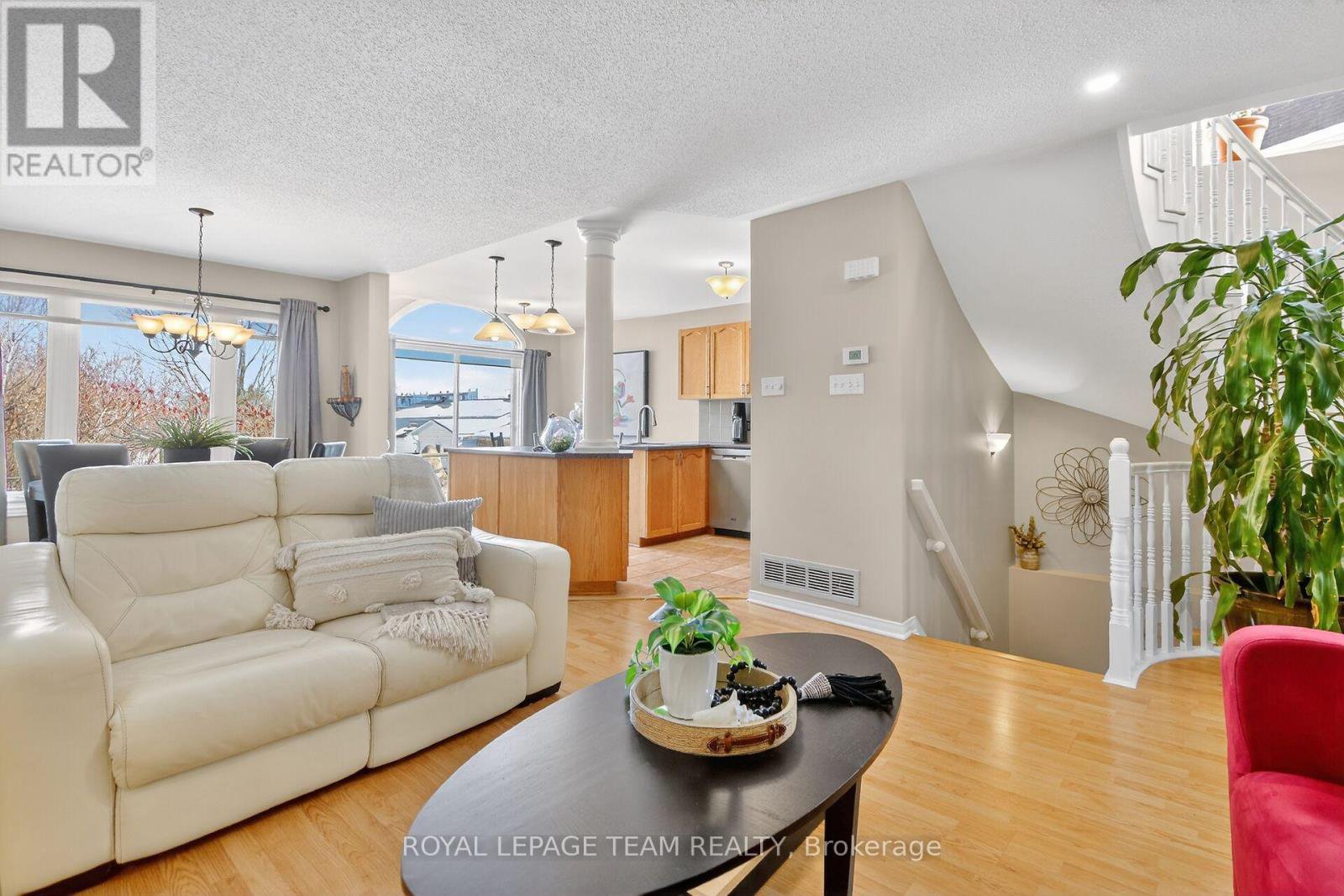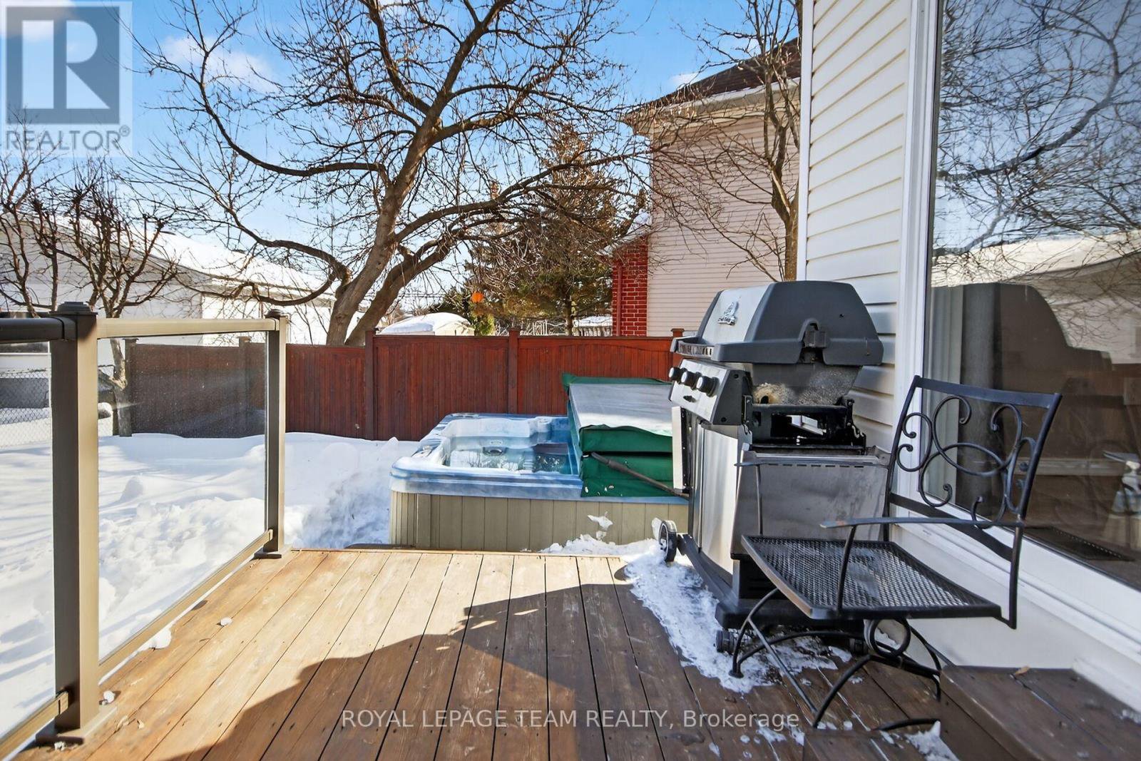 Open house 2-4 March 8th. Welcome to this beautiful semi detached home situated on a desirable pie shaped style lot in the lovely community of Chapel Hill North. You will be introduced by a sizable front foyer overlooking a stunning circular staircase with a lovely large window. This wonderful well maintained home showcases a lot of natural light. The open concept main level features a generous size lining/dining room, a breakfast area with partial vaulted ceiling and a functional kitchen with peninsula counter space in addition to a spacious island, double sink, and built-in microwave oven hood fan combo, all of which provide views of the backyard. Leading to the upper level you will be delighted by the spacious primary bedroom providing a walkin closet, electric fireplace and a convenient ensuite bathroom with separate shower and soaker tub. There are two sizable secondary bedrooms with double closets, a functional shared bathroom and a linen closet to complete the second level. Have fun and host your guests in the finished basement family room featuring a gas fireplace and good size window. There is plenty of storage space for all your personal needs, a practical laundry tub and no carpet to allow for easy maintenance. The backyard has a cedar deck & fence, perfect to entertain your family and friends including a hot tub. The Minto home plan indicates a total size of 1867 SQFT. Central air conditioning, practical interior garage access from the front foyer, garage door opener and 2 exterior parking spots for a total of 3 parking. You will appreciate that this home is surrounded by so many amenities such as shopping, transit, schools, parks, sport facilities and so much more. Take a moment to review the link for the panorama videos and additional pictures. As well as reading the multiple upgrades & special features list attached. Enjoy this nicely presented and move in ready home for your family to create new memories.