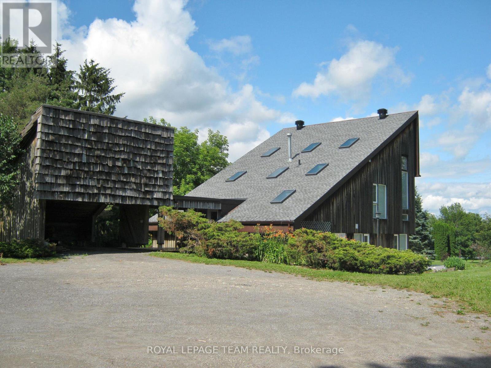 Set along the main channel of the Rideau River just south of Manotick is where you will find this incredible 4.28 acre waterfront estate offering an amazing opportunity to own your own private slice of paradise. This unique, custom designed 3 bedroom, 2.5 bath multi level home boasts huge windows offering spectacular views of the river and stunning sunsets. The home boasts a bright, open kitchen with loads of storage and counter space with access to a side patio area. A great sized dining/eating area with a sunken living room with cozy gas stove with another door to the yard taking you to the waterfront, a powder room and laundry/storage room complete the main level. The primary bedroom is an oasis with an unobstructed view of the water, a fabulous balcony area and a huge ensuite with separate soaker tub and shower. Two additional great sized bedrooms and a full bath are found on the upper levels. Partial basement area for additional storage. One vehicle carport with an open breezeway to the front door. The premium waterfront location, generous acreage and proximity to Ottawa make this a fabulous opportunity for investors, builders or those looking to explore development possibilities. Whether you chose to work with the existing home or investigate redevelopment, the opportunities could be endless.