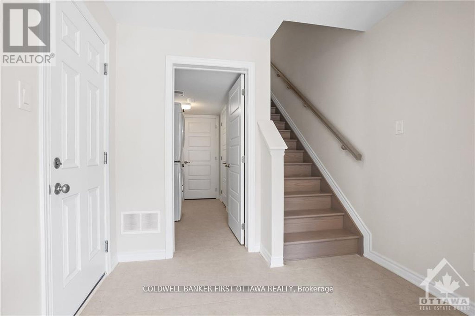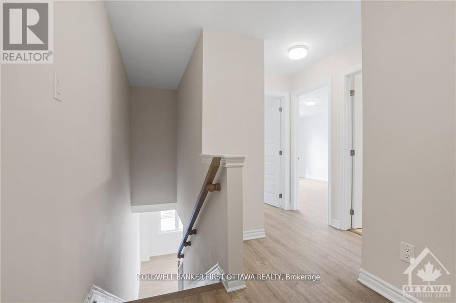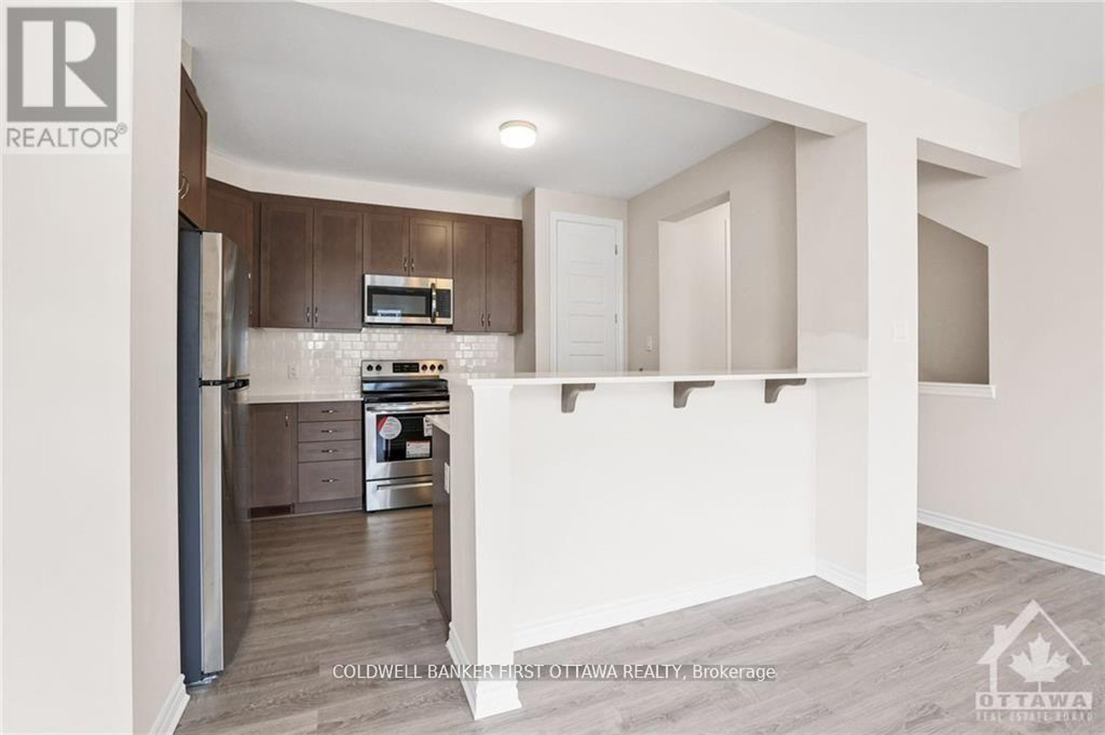 Impeccably upgraded and turn-key, this exceptional townhome offers sophisticated living in a prime location. Situated with convenient access to Tanger Outlets, Highway 417, public transit, and planned community amenities, it is a model of modern efficiency. The interior showcases an airy, open-concept design with nine-foot ceilings, leading to a stunning kitchen appointed with quartz countertops, premium stainless steel appliances, and a breakfast bar. A private walkout balcony extends the living space outdoors, perfect for relaxing or entertaining. Upstairs, the thoughtfully designed floor plan features generously sized bedrooms, highlighted by a serene primary retreat with a walk-in closet and a three-piece ensuite. A flawless residence, ready for its next discerning owner