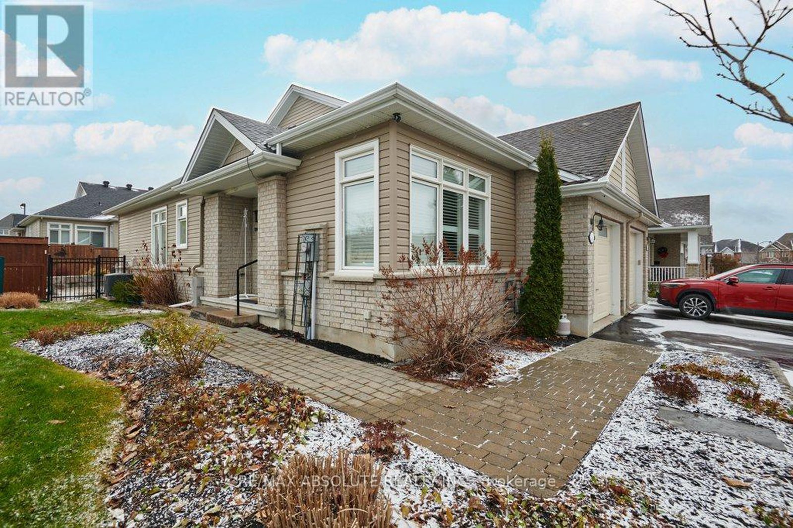 Welcome to effortless living in the heart of Cardinal Creek Village, Orleans. This beautifully maintained semi-detached bungalow sits on a premium corner lot and offers the perfect blend of comfort and low-maintenance living - ideal for downsizers, retirees, or multigenerational families seeking flexible space. An elegant interlock walkway and extended driveway create immediate curb appeal. The fully fenced backyard features raised rock garden beds, river-rock detailing, a stone patio with pergola, and a built-in irrigation system to keep everything lush with ease. Enjoy direct access from the living room - perfect for quiet mornings or hosting family gatherings. Inside, the bright open-concept main level showcases 9' ceilings, hardwood floors, pot lights, crown moulding, and custom shutters. The inviting living and dining area is anchored by a cozy gas fireplace and large windows that flood the space with natural light. The timeless white kitchen offers granite countertops, stainless steel appliances, subway tile backsplash, under-cabinet lighting, and a generous island with breakfast bar. The main-floor primary suite includes a walk-in closet and 3-piece ensuite with glass shower. A versatile den makes an ideal office or reading room, and with existing hookups already in place, there is also the option for main-floor laundry to allow for full single-level living. The professionally finished lower level adds exceptional versatility with a spacious family room and second fireplace, large bedroom, full bath, dedicated laundry room, workshop, and ample storage - ideal for guests, hobbies, or extended family. Complete with central air, interior garage access, and a Generac generator (negotiable), this home offers comfort and peace of mind - all within walking distance to transit and amenities. A rare opportunity to enjoy refined bungalow living in one of Orleans' most desirable communities.