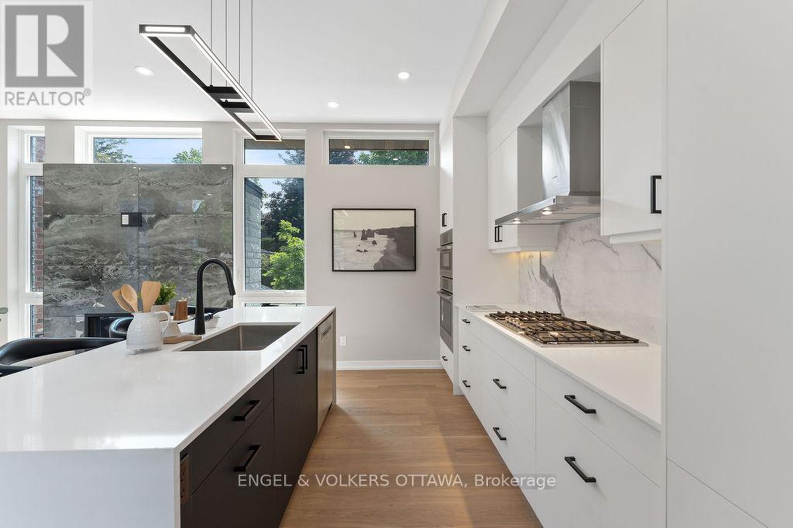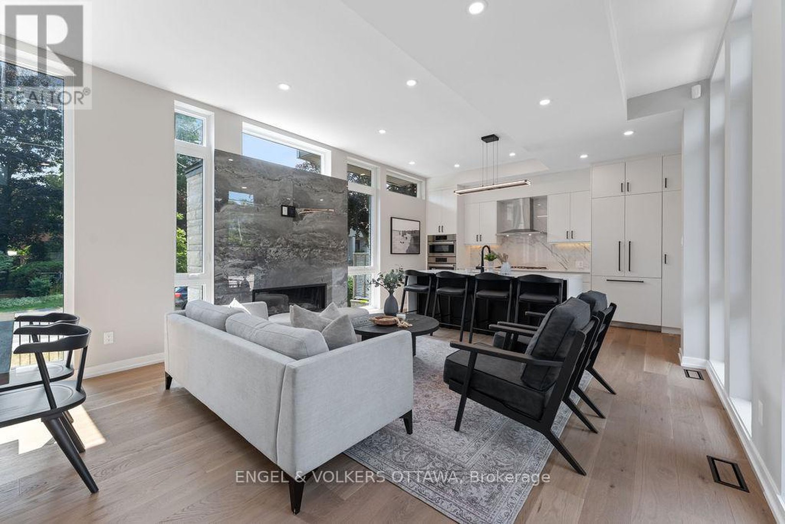 Set in the heart of Westboro, 261 Dovercourt presents a rare opportunity to own a custom-built luxury residence offering over 2,450 sq. ft. of thoughtfully designed living space from top to bottom. From the moment you arrive, the striking modern façade sets the tone for what awaits inside. The main level features soaring ceilings, oversized windows, and rich hardwood flooring throughout, filling the home with natural light. The open-concept layout is ideal for both everyday living and entertaining, anchored by a gas fireplace with a stunning stone surround. The chef-inspired kitchen is equipped with built-in Bosch appliances, quartz countertops, and a large island with ample seating. The second level offers three well-proportioned bedrooms along with spa-inspired bathrooms finished with quality materials throughout. The top-floor loft-referred to as the Serenity Suite-adds exceptional versatility and can serve as a primary retreat, home office, or additional living space. Step out onto the private rooftop terrace and enjoy unobstructed views along with an elevated outdoor experience. This property features three distinct outdoor spaces, including a balcony and rooftop terrace, providing multiple options for relaxation and entertaining. The lower level includes a private entrance, kitchenette, and full bathroom-ideal for a secondary suite, guest accommodations, or recreational use. Constructed with a durable steel frame and metal roof, and backed by a transferable Tarion warranty, this home offers both long-term reliability and peace of mind. An exceptional opportunity for buyers seeking modern design, functional living, and a prime Westboro location just steps to shops, restaurants, and everyday amenities.