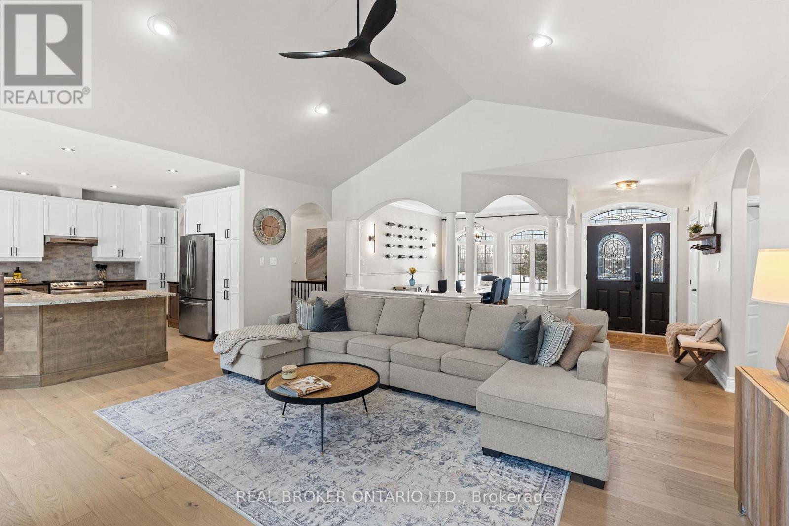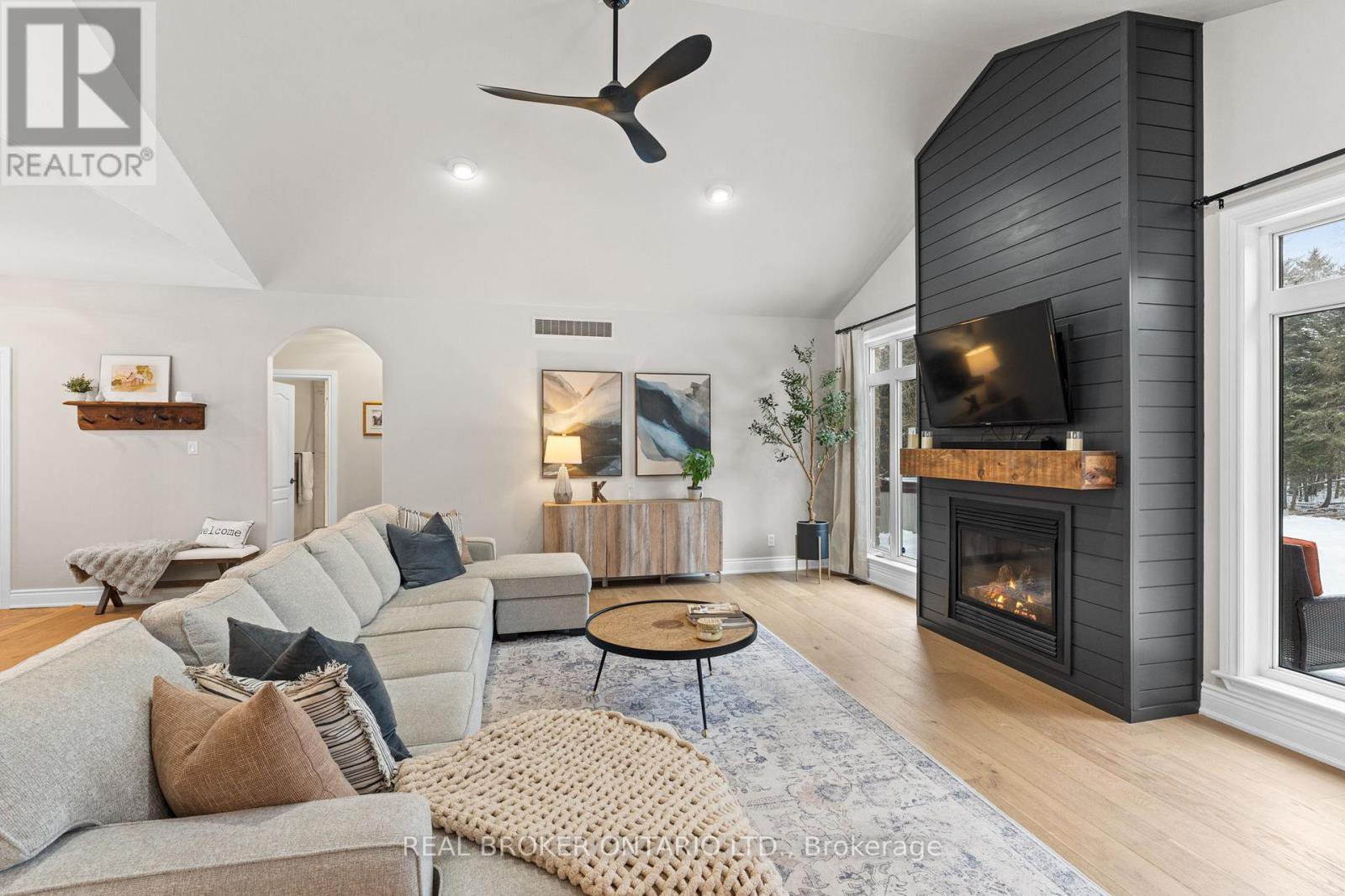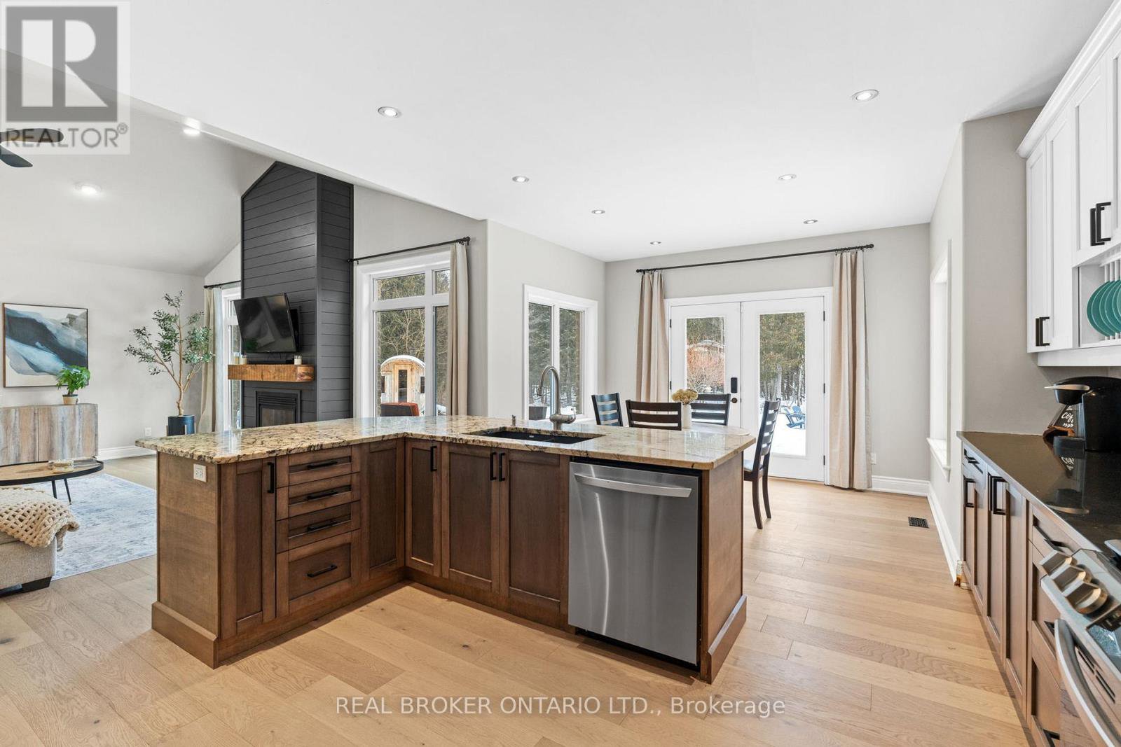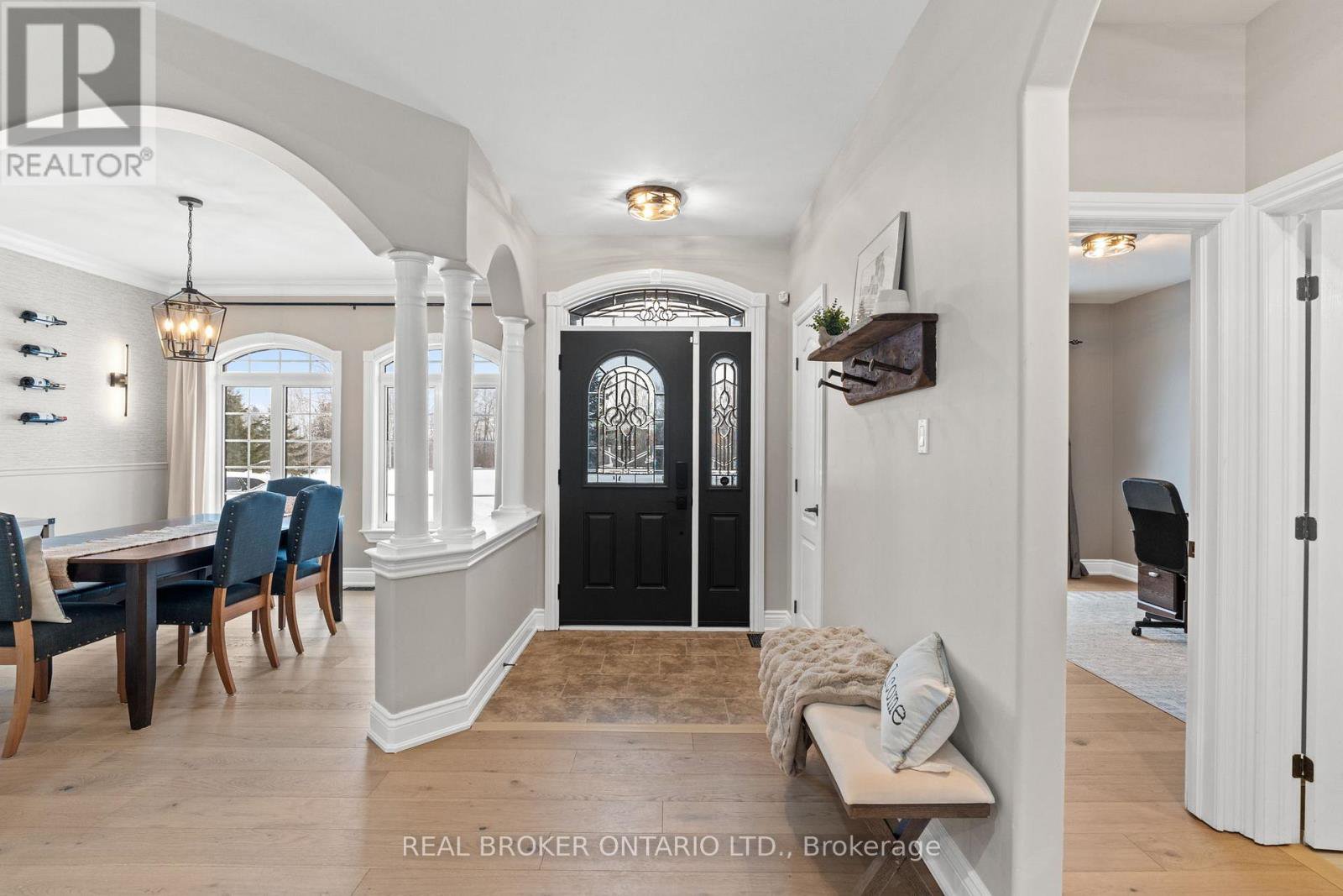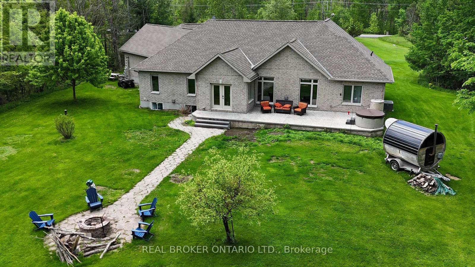 Escape to your own Private Oasis in this Luxurious Country Estate Property. Discover serenity and sophistication in this stunning 3+1 Bedroom Bungalow nestled on a breathtaking 6.855-acre property in the highly sought-after community of Dunrobin. This beautiful estate offers the perfect blend of natural beauty & modern luxury, steps away from the prestigious Eagle Creek Golf Course. As you approach the home via the350-foot paved driveway, you'll be greeted by a spacious home, wrapped in stone, w/3-car garage, providing ample space for vehicles & storage. A new 50A plug located inside the garage provides ample power for your RV alongside the garage. The lush landscape is maintained by a 21-Zone Irrigation System. Step inside to find a meticulously renovated interior featuring new luxury Hardwood Flooring throughout the main level. The heart of the home boasts a recently upgraded Kitchen, complete w/stylish finishes and stainless appliances. The Living Room showcases vaulted ceilings and a striking Gas Fireplace that extends to the ceiling, creating a dramatic focal point and a touch of elegance. Retreat to the Primary Bedroom, where you'll find a built-in Electric Fireplace, a stunning ensuite bath w/glass shower, and a large walk-in closet. The fully finished basement is an entertainer's dream, featuring a brick surround gas fireplace, movie theatre, fourth bedroom, full bath, workout space, and access to both the garage & huge recreation area. French doors in the kitchen lead to a raised, stamped concrete patio, perfect for outdooring & relaxation. Follow the concrete pathway to the firepit, where you can unwind and enjoy the peaceful sounds of nature. Surrounded by rich forest, this property offers unparalleled privacy and tranquility. Experience the best of both worlds with the convenience of nearby amenities(15 mins to Kanata) and the serenity of your own private woodland retreat. Don't miss this rare opportunity to own a piece of paradise in Dunrobin.
