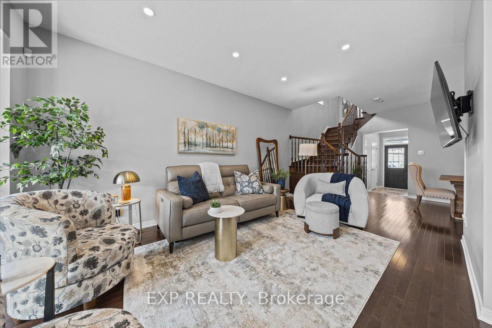 END UNIT EXECUTIVE TOWNHOME!!! This stunning Monarch-built 3-bedroom, 3-bathroom home features beautiful, rich hardwood flooring throughout the main floor and upper-level wowing you the moment you walk in. A large, walk-in coat closet and powder room are conveniently located just inside the front door. The open floor plan dining and living spaces are designed to impress with expansive windows flooding the space with natural light. The beautiful, updated kitchen (2021) is equipped with under-mount lighting, a gas stove, French door refrigerator, quartz countertops and backsplash and a full wall of pantry cabinets. Ascend the stunning wooden staircase to the upper level, where you'll find a generously sized primary bedroom with TWO walk-in closets, one with a recently added beautiful Pax wardrobe system and a spacious ensuite bathroom. Two additional bedrooms provide ample accommodation, while a large family bathroom and second-story laundry room enhance practicality. The fully finished basement offers a rec room with a gas fireplace and a newly added cedar wine cellar. The stunning backyard deck, complete with a gazebo and raised garden beds, provides an inviting outdoor space. This beautiful family home, only a short 10-minute walk to SmartCentres Kanata is an absolute must-see property!!