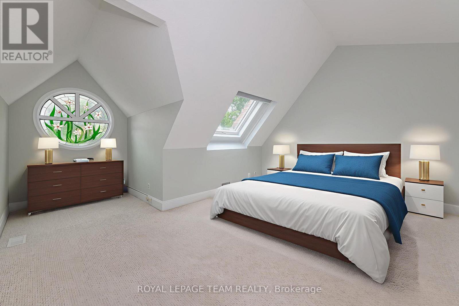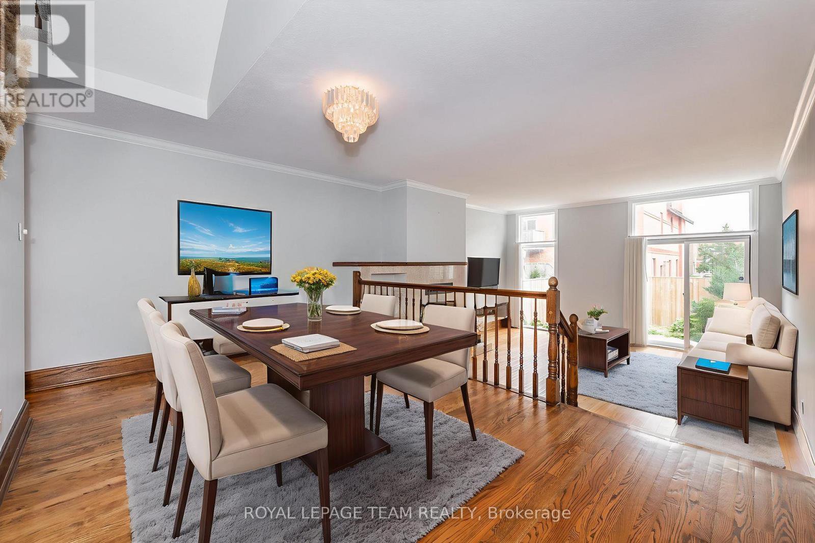 Welcome to 595C Besserer Street, a stunning three-storey, brick end unit that perfectly captures the charm of historic Sandy Hill. Tucked away on a quiet, tree-lined dead-end street, this home offers a serene escape with the pulse of the city just steps away. The interior is a masterclass in architectural elegance, featuring leaded glass windows, ornate crown moldings, soaring ceilings, and rich hardwood flooring. The main level is designed for both comfort and sophistication, boasting a newly renovated modern kitchen and a bright solarium that invites the outdoors in. Host elegant dinners in the formal dining room before retreating to the sunken living room, where a cozy wood fireplace serves as the focal point. On the second floor, you'll find a generous primary suite with a charming reading nook, an updated bathroom, and a second bedroom featuring private access to a large balcony. The third floor serves as a secluded sanctuary with a spacious bedroom under vaulted ceilings and a full bathroom illuminated by a bright skylight. A rare find for the area, this property includes a private garage with interior access to the lower-level family room and laundry room. Step outside to your own private garden and patio, an urban oasis perfect for quiet relaxation or summer entertaining. The location is second to none, within walking distance to the Rideau River, Rideau Sports Centre, and the lush greenery of Strathcona, MacDonald Gardens, and Riverain Parks. Families and students will appreciate the proximity to the University of Ottawa and top-tier schools like De La Salle and York Street Public. This is a unique opportunity to own a piece of Sandy Hill's history with every modern convenience.