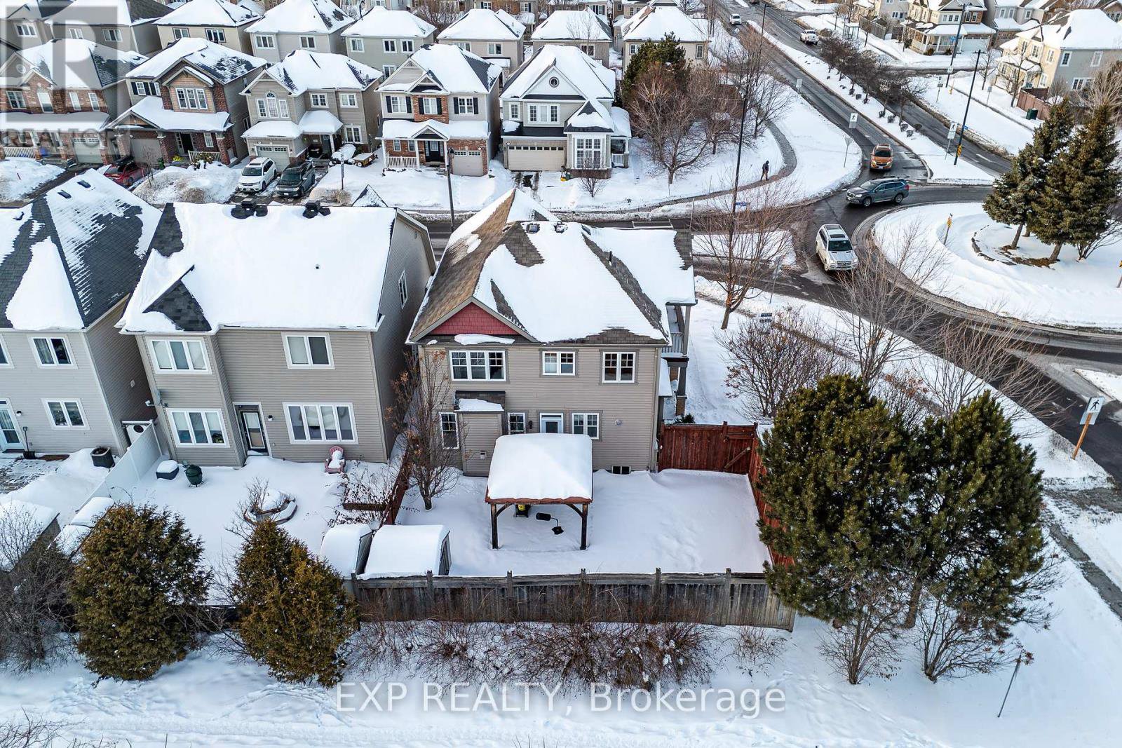 Situated on a premium corner lot in sought-after Fairwinds, this spacious 4-bedroom, 2.5-bath single-family home offers approximately 2,500 sq ft of finished living space (including the basement) and backs directly onto Poole Creek with no rear neighbours.Set on wide, family-friendly streets in one of Stittsville's most desirable communities, this location delivers the perfect blend of space, privacy, and convenience. You're just minutes to the Canadian Tire Centre, walking distance to The Shoppes at Fairwinds and Unity Square, and only two blocks from Tempest Park - with additional parks, schools, and everyday amenities all close by.Inside, 9-foot ceilings and gleaming floors define the bright and welcoming main level. The thoughtfully designed layout offers both a comfortable family room and a separate formal living/dining space - ideal for entertaining or hosting larger gatherings. A gas fireplace anchors the living area, creating a warm focal point for everyday living.Upstairs, you'll find four generously sized bedrooms, including an impressive primary retreat featuring two walk-in closets and a private ensuite bath. The second-floor laundry room adds practical convenience, and a charming balcony off the hallway provides a unique outdoor escape rarely found in homes of this style.The fully finished basement expands your options with a large recreation space and a rough-in for a future bathroom. Whether you envision a home gym, dance studio, media room, or kids' play area, the flexibility is already here.Step outside to enjoy a beautifully designed backyard complete with a gazebo - an inviting space for relaxing evenings or summer entertaining - all while enjoying the privacy of no rear neighbours and the natural backdrop of Poole Creek.A rare opportunity to secure a corner-lot home with space, functionality, and an unbeatable Stittsville location. Move-in ready and designed for modern family living.