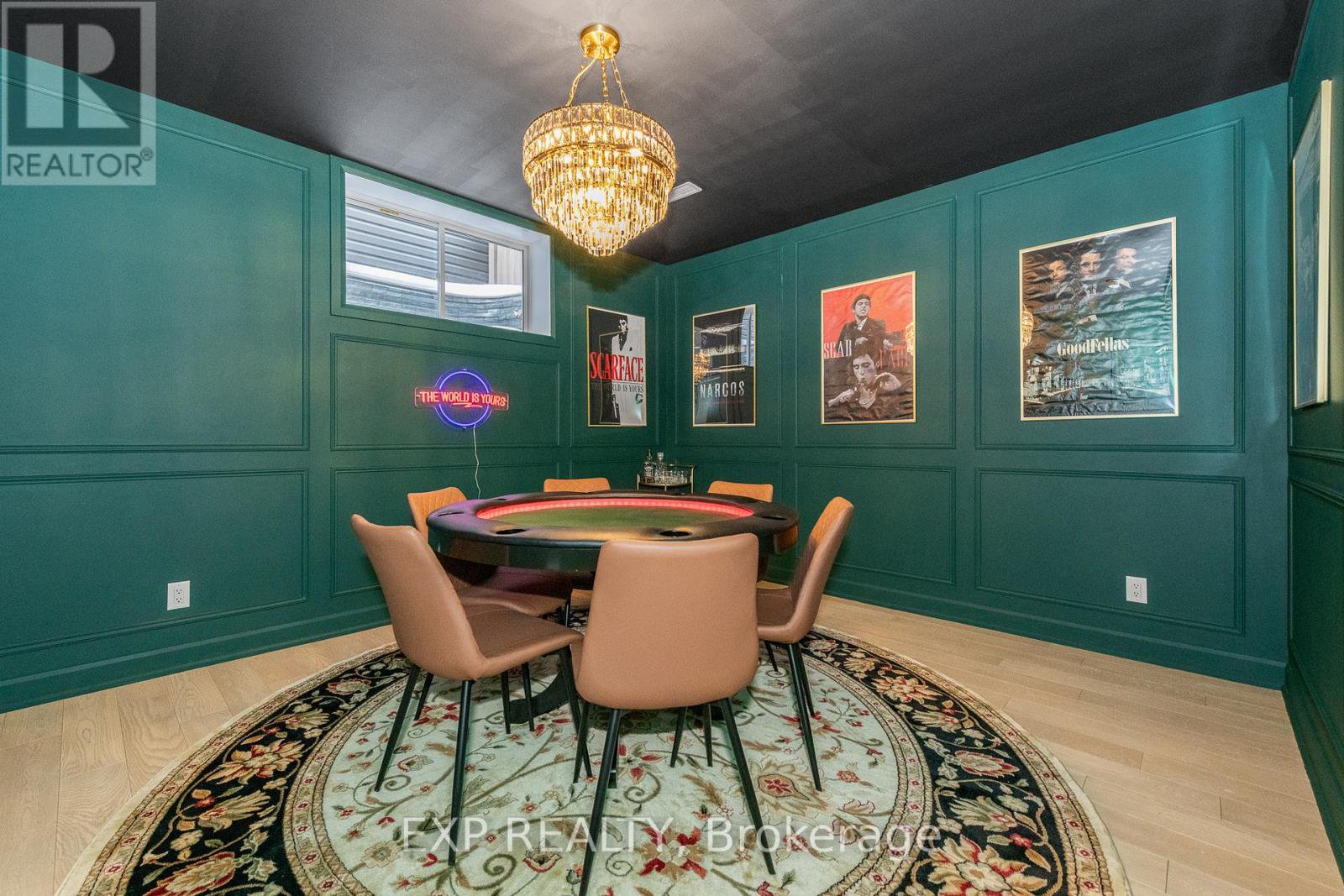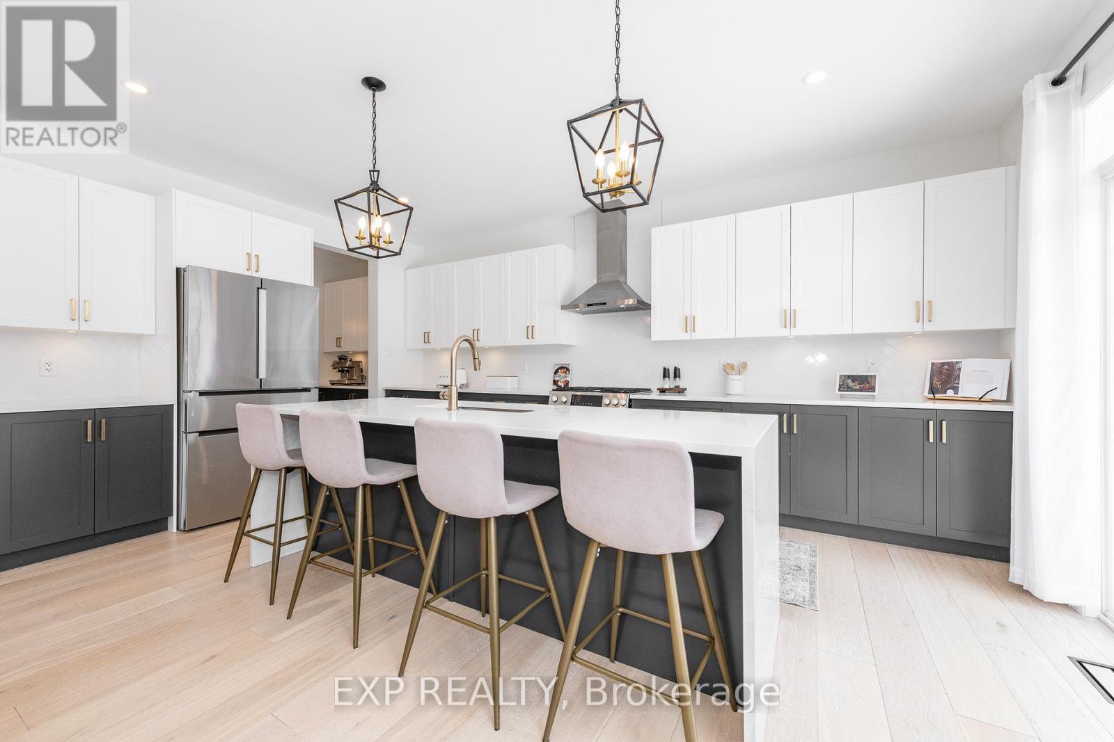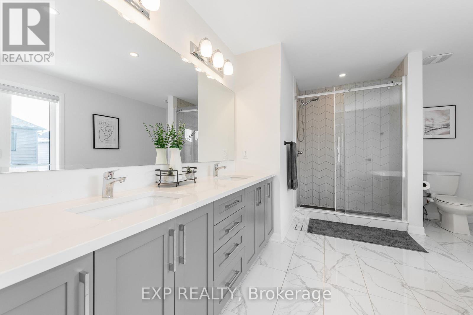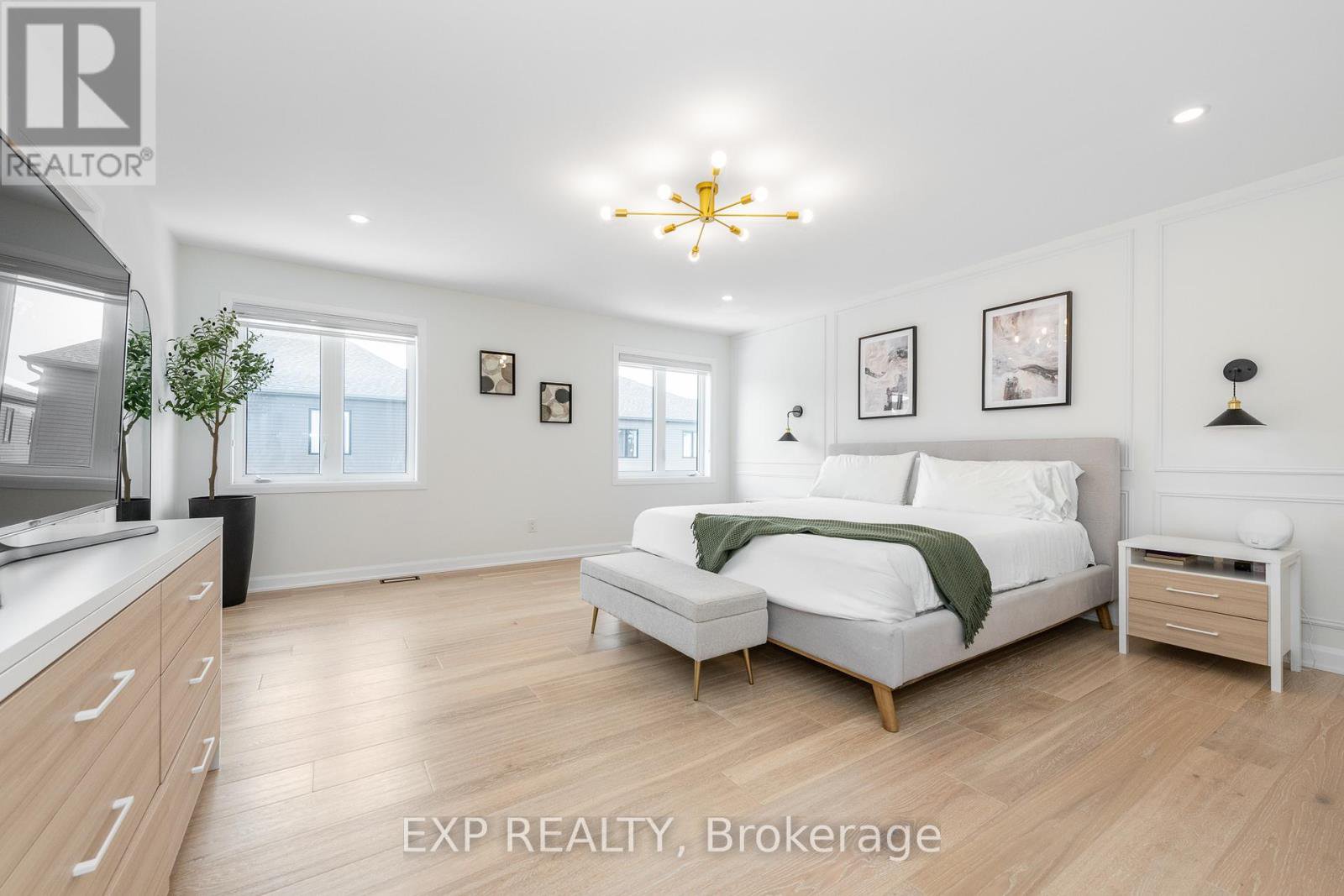 Welcome to this stunning 2022-built Minto Nobel model, offering modern luxury, thoughtful upgrades, and exceptional living space. This beautifully finished home features 4+1 bedrooms and 5 bathrooms, ideal for growing families or those who love to entertain. The open-concept main level showcases hardwood flooring throughout, a stylish kitchen equipped with high-end Bosch appliances, a bright breakfast area, formal dining room, private den, and a welcoming family room anchored by a gas fireplace. Upstairs, a spacious loft with a second fireplace and balcony access provides an additional living area, while four generously sized bedrooms include three ensuites, one of which is a convenient Jack-and-Jill design. The fully finished basement expands the home's versatility with an additional bedroom, and ample space for recreation, guests, or a home office. Outside, the interlock front yard extends the driveway for extra parking, while the interlock backyard offers a stylish, low-maintenance outdoor retreat. Completing the home is a double-car garage with sleek epoxy floors, adding both durability and a polished touch. With upgrades throughout, this home blends comfort, elegance, and functionality in a beautifully designed modern space.
