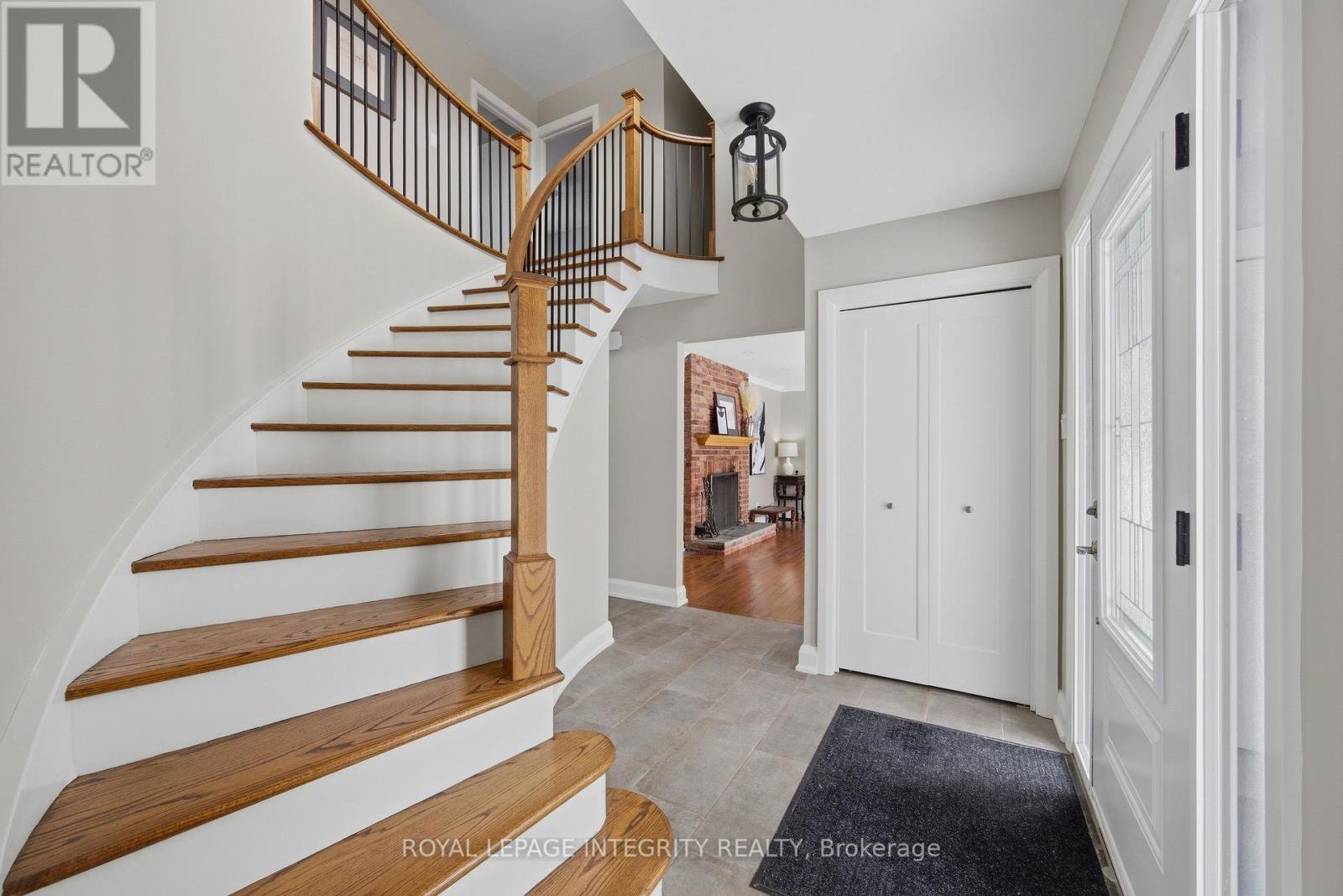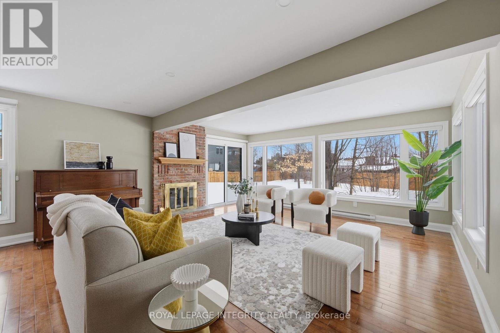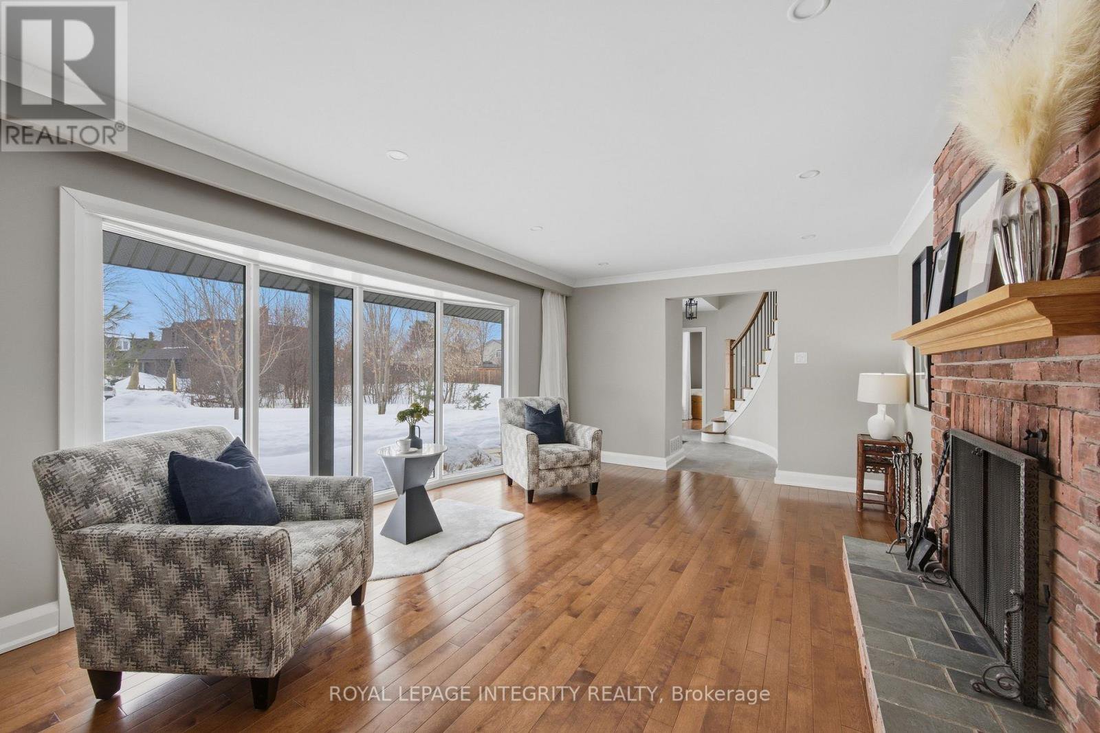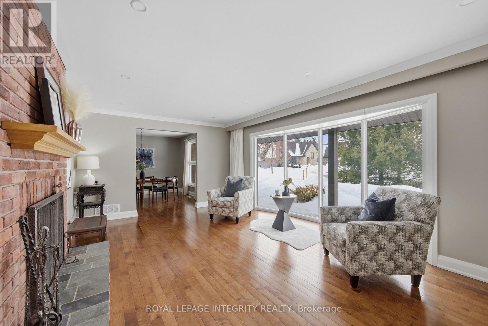 Welcome to 8 Smugglers Court, a Private Estate Setting in the heart of Arlington Woods, one of Ottawa's top neighbourhoods! Tucked away on a quiet court, this exceptional custom home sits on a magnificent, private lot just shy of half an acre. Built by one of the original builders of Arlington Woods, the home reflects quality construction and thoughtful design throughout. Fully renovated in 2019, this 4-bed, 4-bath custom home is move-in ready and yours to enjoy for years to come. Inside, you'll find rich hickory hardwood flooring throughout the main floor and strip oak flooring on the second floor. The bright living room features a stunning floor-to-ceiling bay window and a cozy wood-burning fireplace, creating an inviting space to unwind. The large dining room offers another oversized window, filling the entire space with an abundance of natural light. The kitchen features a large breakfast bar and an even bigger island, quartz countertops and an exposed brick feature wall. Just off the kitchen, your expansive family room is wrapped in oversized windows, offering plenty of natural light plus a second wood-burning fireplace for added comfort. You also have a main floor office and laundry, just off the mud room. Upstairs, you'll find an oak staircase with wrought iron spindles, leading to high quality strip oak hardwood floors. You have four generous-sized bedrooms, including a true guest suite, complete with its own sink. The primary suite features his and hers walk-in closets and a beautifully updated ensuite with tile and quartz finishes and an oversized shower with glass door. The main bath is fully renovated with a new tub, tile, and quartz vanity. Downstairs, you'll find a huge basement, perfect for storage and play time, plus a newly finished area, complete with powder room. With its private setting, oversized lot, and thoughtful updates and renovations throughout, 8 Smugglers Court offers exceptional value in a highly desirable and private location!
