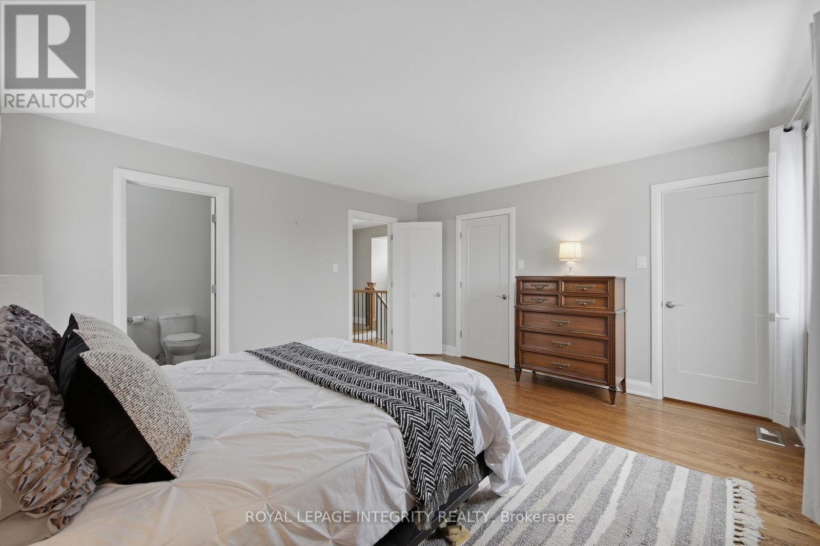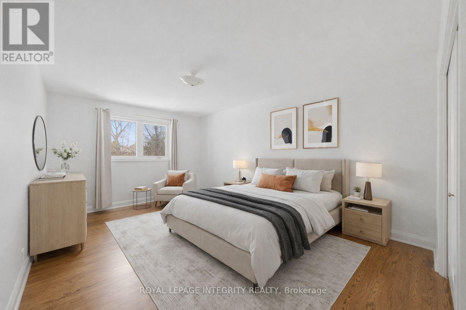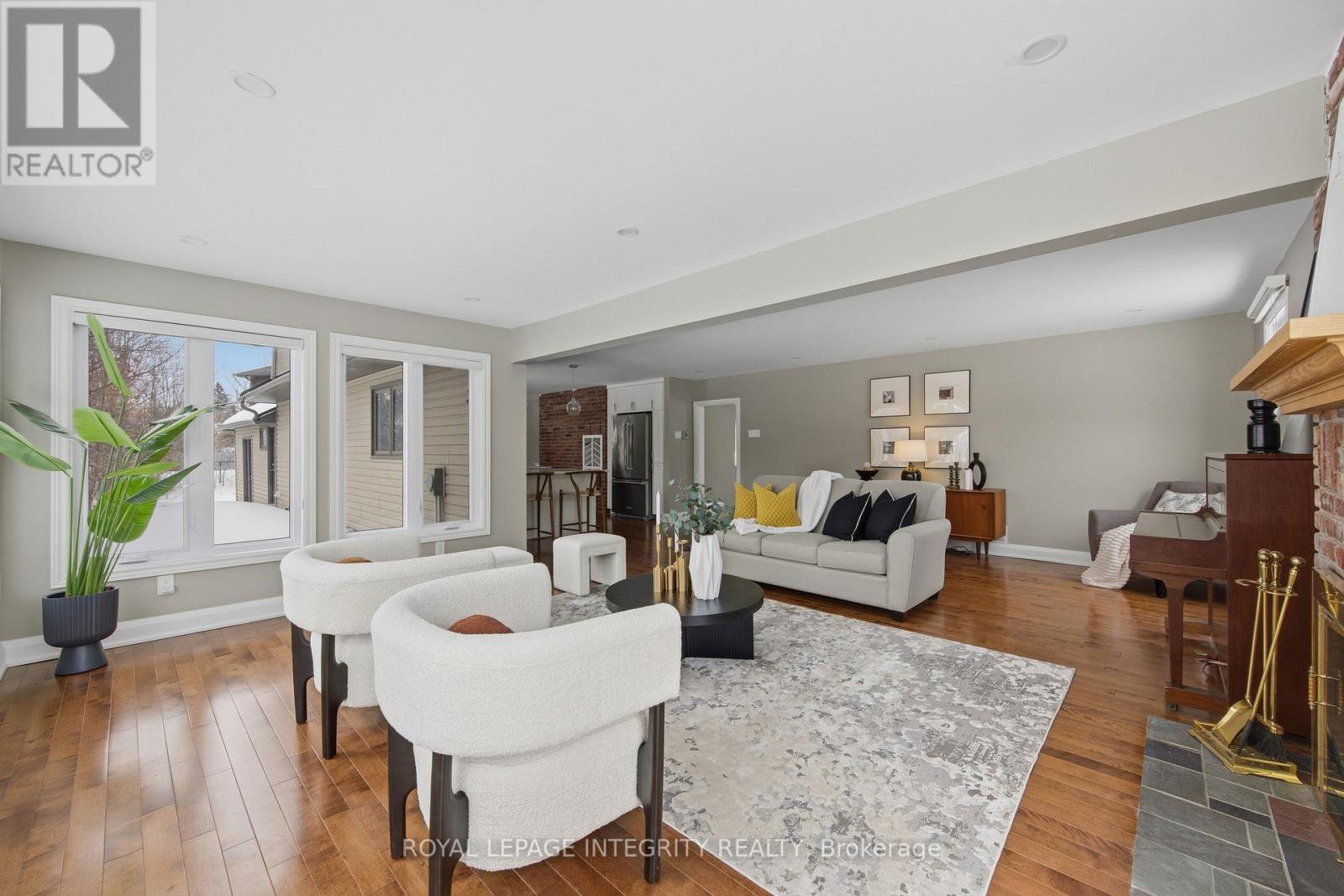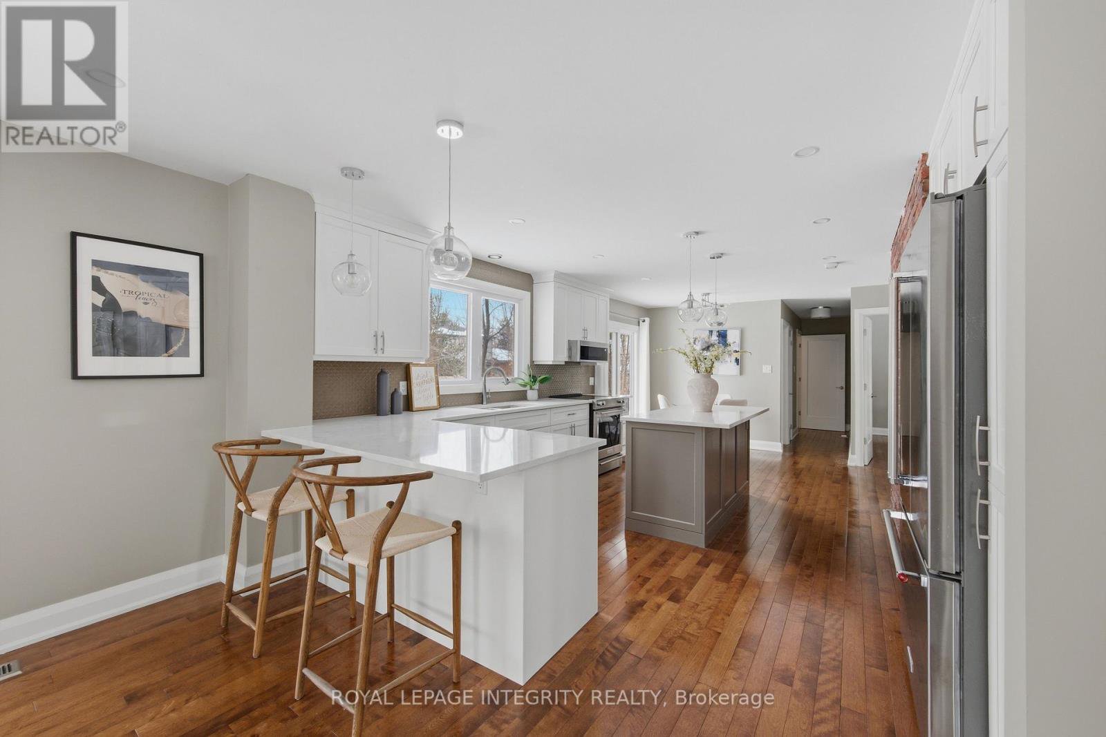 Welcome to 8 Smugglers Court, a Private Estate Setting in the heart of Arlington Woods, one of Ottawa's top neighbourhoods! Tucked away on a quiet court, this exceptional custom home sits on a magnificent, private lot just shy of half an acre. Built by one of the original builders of Arlington Woods, the home reflects quality construction and thoughtful design throughout. Fully renovated in 2019, this 4-bed, 4-bath custom home is move-in ready and yours to enjoy for years to come. Inside, you'll find rich hickory hardwood flooring throughout the main floor and strip oak flooring on the second floor. The bright living room features a stunning floor-to-ceiling bay window and a cozy wood-burning fireplace, creating an inviting space to unwind. The large dining room offers another oversized window, filling the entire space with an abundance of natural light. The kitchen features a large breakfast bar and an even bigger island, quartz countertops and an exposed brick feature wall. Just off the kitchen, your expansive family room is wrapped in oversized windows, offering plenty of natural light plus a second wood-burning fireplace for added comfort. You also have a main floor office and laundry, just off the mud room. Upstairs, you'll find an oak staircase with wrought iron spindles, leading to high quality strip oak hardwood floors. You have four generous-sized bedrooms, including a true guest suite, complete with its own sink. The primary suite features his and hers walk-in closets and a beautifully updated ensuite with tile and quartz finishes and an oversized shower with glass door. The main bath is fully renovated with a new tub, tile, and quartz vanity. Downstairs, you'll find a huge basement, perfect for storage and play time, plus a newly finished area, complete with powder room. With its private setting, oversized lot, and thoughtful updates and renovations throughout, 8 Smugglers Court offers exceptional value in a highly desirable and private location!