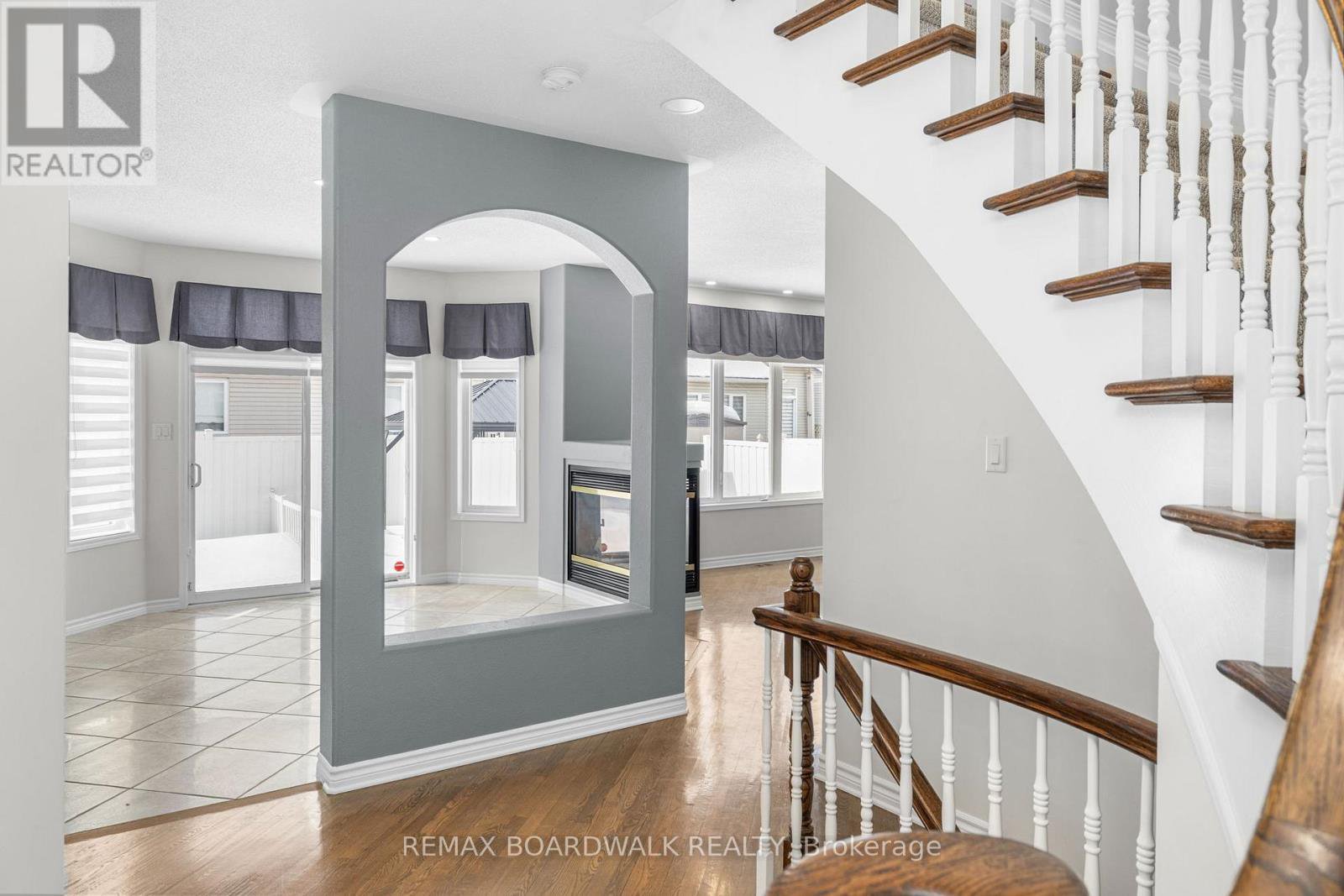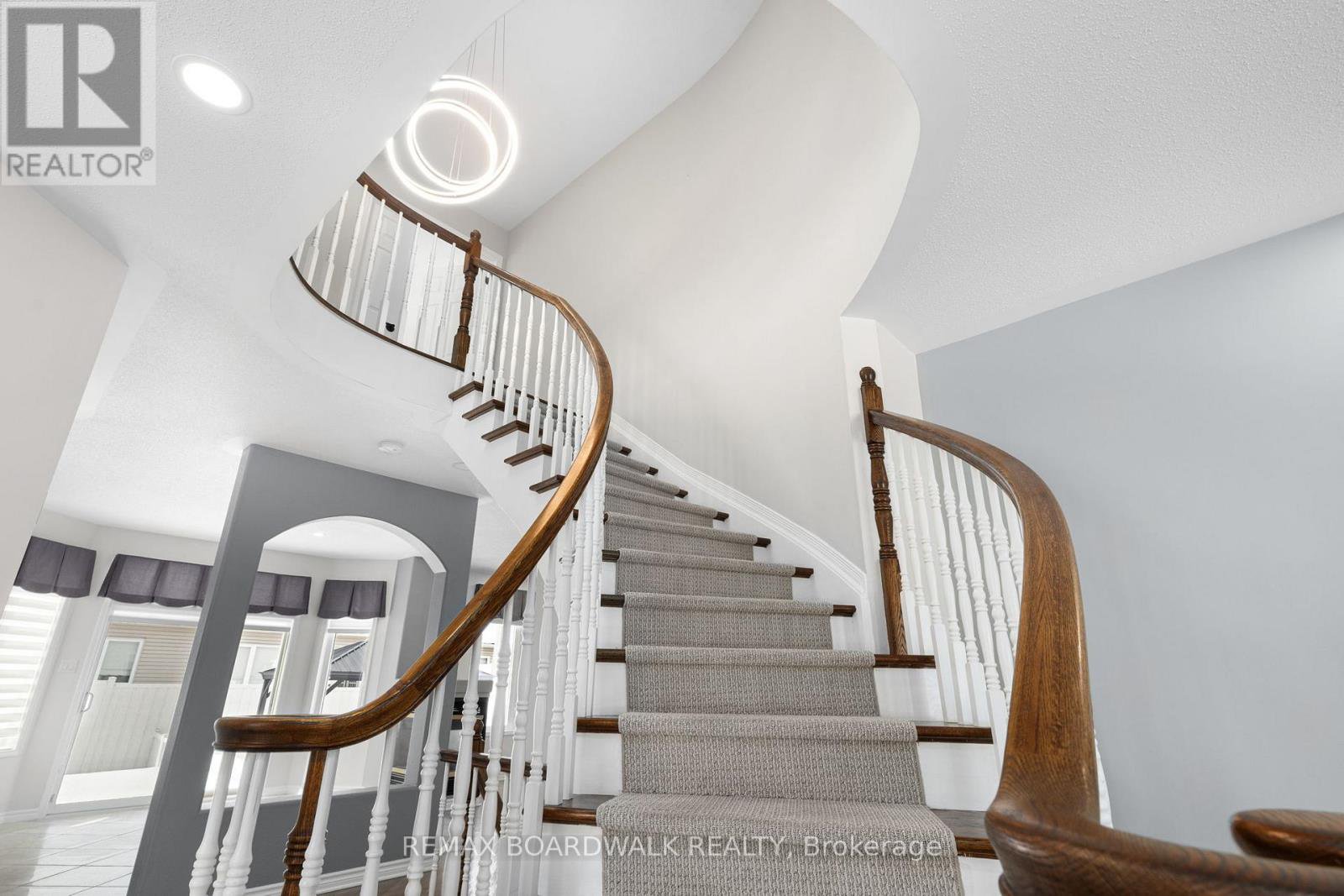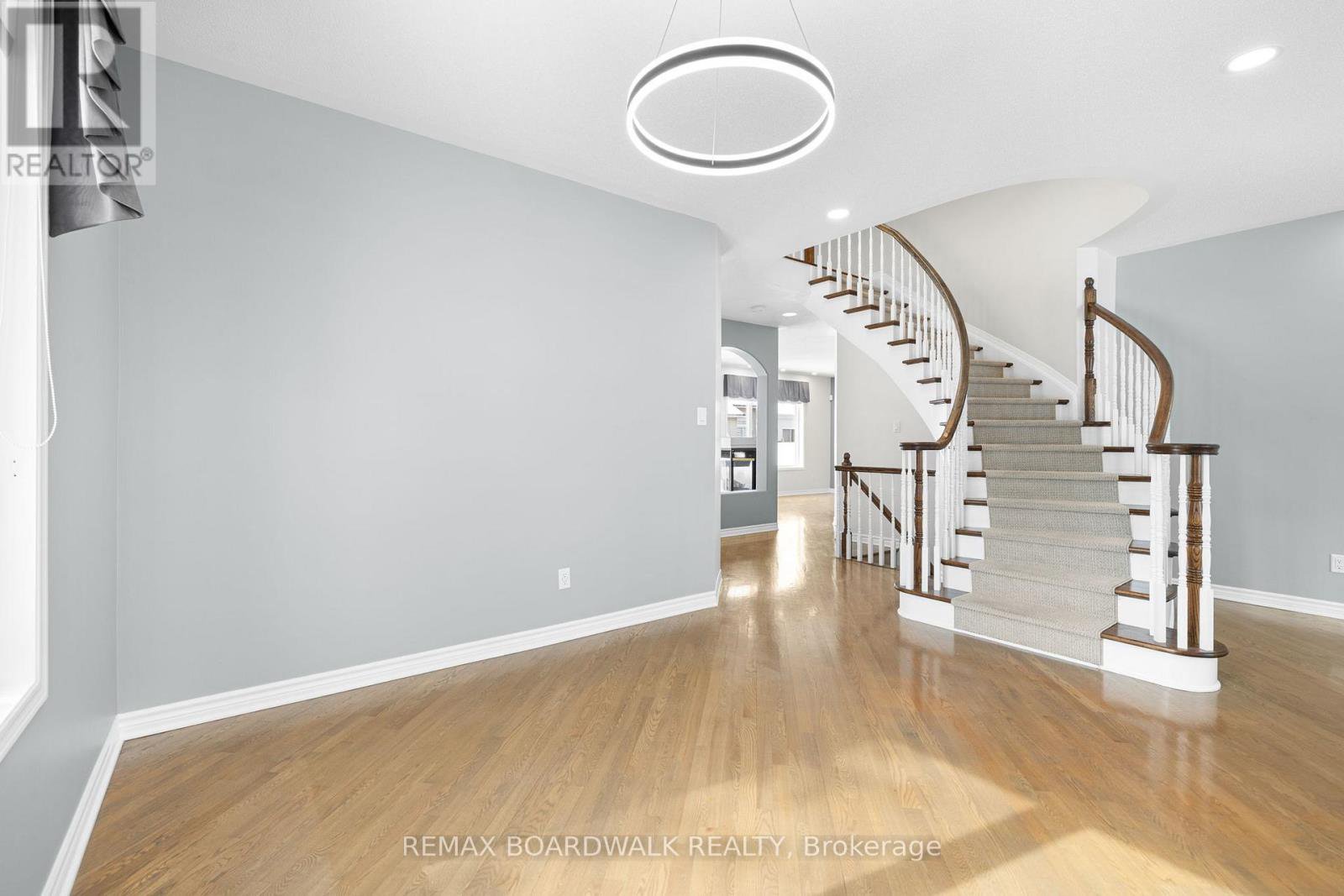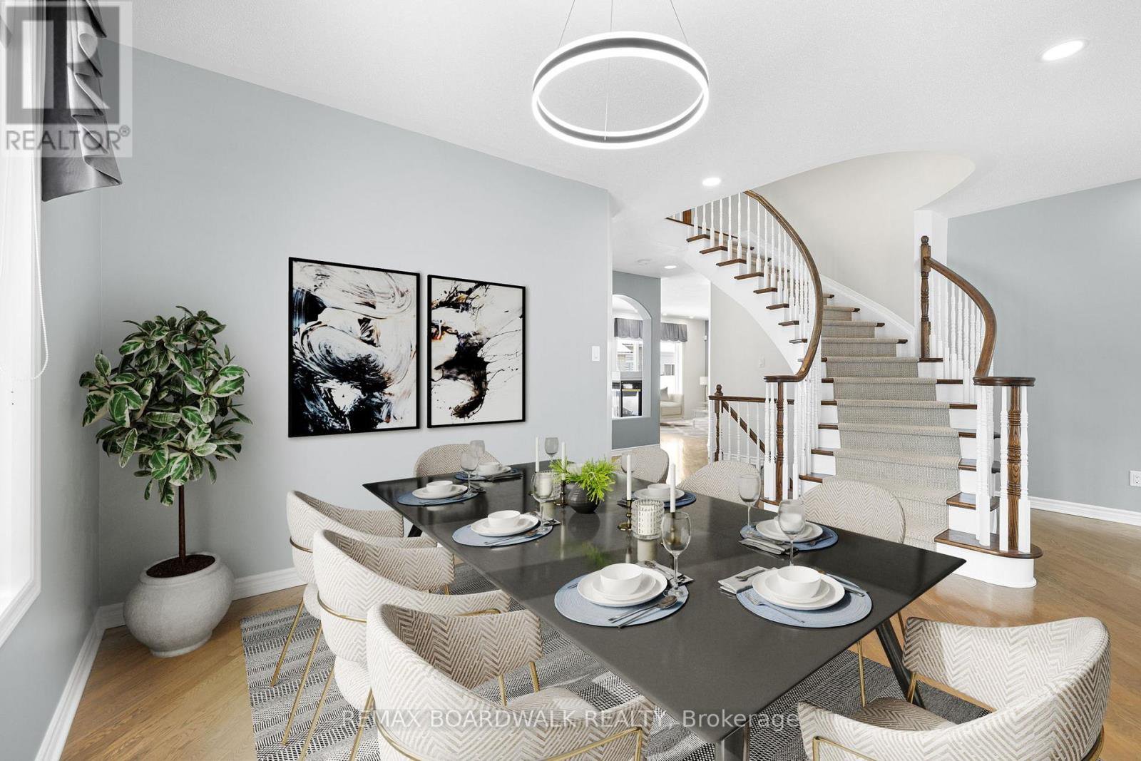 Welcome to 2128 Rexton Street, an exceptional Minto Valencia model offering 2,774 sq ft above grade plus a fully finished basement, ideally situated on a premium corner lot. Thoughtfully updated and beautifully maintained, this home offers the perfect balance of space, comfort, and timeless design for modern family living. Step inside to a bright and welcoming foyer highlighted by an elegant central curved staircase that creates a striking first impression. The home features upgraded hardwood flooring throughout and a well-designed layout with both open living spaces and functional separation for everyday life. The updated eat-in kitchen offers beautiful custom cabinetry, a walk-in pantry, generous counter space, and a central island with waterfall stone counters. The main level also features a formal dining area, a welcoming sitting room just off the foyer, and a spacious living room that flows into the eat-in kitchen, creating multiple comfortable gathering spaces. The second level offers four generously sized bedrooms, including a spacious primary suite with a beautifully renovated ensuite bathroom complete with in-floor heating. The fully finished basement adds valuable additional living space for a recreation room, home gym, media room, or play area. Outside, the premium corner lot enhances both privacy and curb appeal and is complemented by a professionally finished interlock driveway, beautiful landscaping, and a fully fenced backyard with low-maintenance vinyl fencing. Updates include furnace and roof (approx. 10 years), central air conditioning (approx. 10 years), owned water heater (approx. 5 years), updated kitchen, hardwood flooring, renovated ensuite, and more. A fantastic opportunity to own a move-in ready home close to parks, schools, and everyday amenities in Avalon.