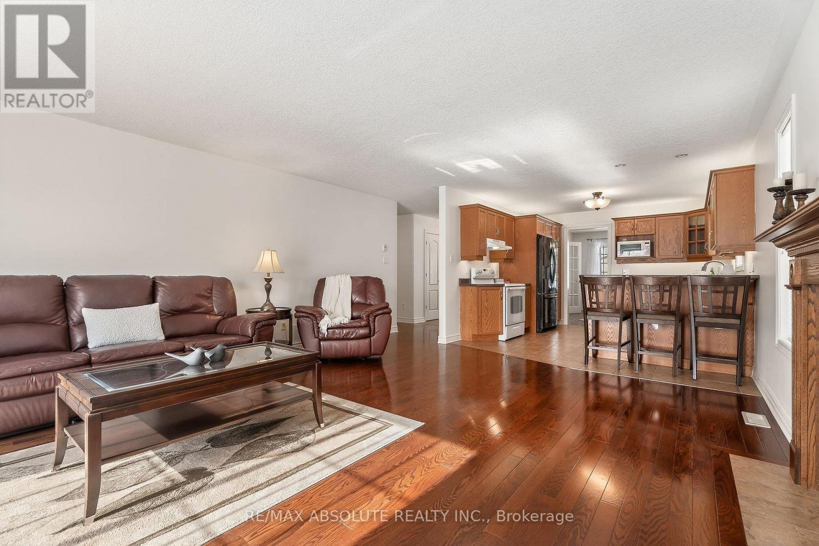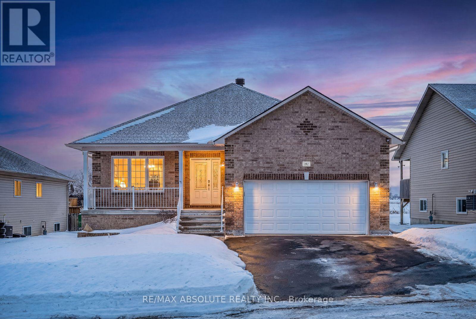 OPEN HOUSE FRI 5-7PM//SPOTLESS living in Almonte! This bungalow has NO rear neighbours & is walking distance to the amazing Historical Almonte Main Street!! GREAT curb appeal, FULL brick front! The grass is PERFECT as it's been incredibly maintained by the original owner, pride of ownership prevails inside & out! The lot is over 60 feet wide x 129 feet deep! The driveway can accommodate 4 cars & the 2 car garage can actually fit 2 cars! There is a covered front porch that will allow for good size comfortable chairs. Square footage is APPROXIMATELY 2500 that includes main & lower level! Spacious entry, there is PLENTY of room for a bench! Open concept living! ! The kitchen offers shaker style cabinets, the interiors are in brand new condition so you could paint the cabinets if the wood grain is not to your liking! There are 2 fireplaces in this home, one in the living room & one in the lower level family room! Good size primary, oversized walk in closet for the scale of the home. ALL 3 bathrooms have shower / tub inserts allowing for easy maintenance, 2 of the 3 are STEP in showers & the main bath offers a tub! Laundry on the main floor. FULLY finished lower level with 3 EGRESS windows, allowing for ample natural light, HEATED floors throughout (rare feature), a 3rd LEGAL bedroom & a FULL bath! TONS of storage including a workbench. The backyard is SOUTH facing, the lot has a pretty tree line at the back & offers a large deck! ROOF 2025