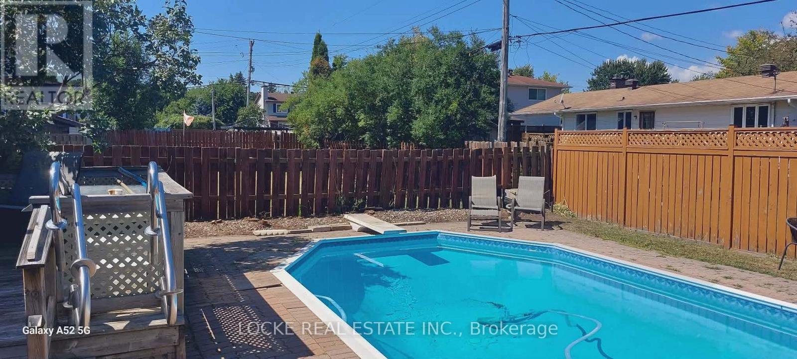Open House Sunday March 8th from 2 to 4 pm. Looking for charm and an INGROUND SALT WATER POOL on a quiet street? This beautiful home with 2 gas fireplaces and double car garage has been lovingly cared for by original owners for over 50 years. Steps from entrance to the RAVINE w/ miles of walking/snow shoeing/biking/dog walking trails. Originally a four bedroom, converted into 3, but one wall could turn it back into a 4 bedroom if desired. Alternatively, there is great potential to add a spacious ensuite. Bright main level with gleaming hardwood features a lovely livingroom with gas fireplace open the the dining room, a functional kitchen with window overlooking the large backyard and a powder room. Hardwood on staircase leading up to, and throughout the 2nd level that features 3 bedrooms and one full bathroom. Relax in the basement recroom with fireplace. Huge functional laundry room, cedar chest and storage area on lower level as well. Other wonderful features: Fully interlocked driveway, huge deck and patio, front and back garage doors permitting easy access to backyard. FRIDGE 2023, (FURNACE 2020 $73.79 per mth, HOT WATER HEATER 2023 $25.87 per mth are rented but seller is open to buying them out before closing)