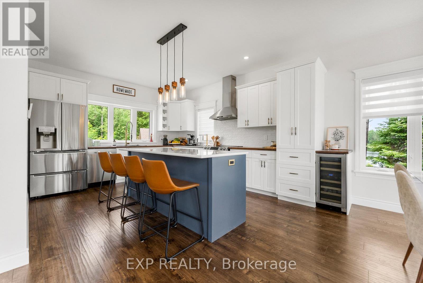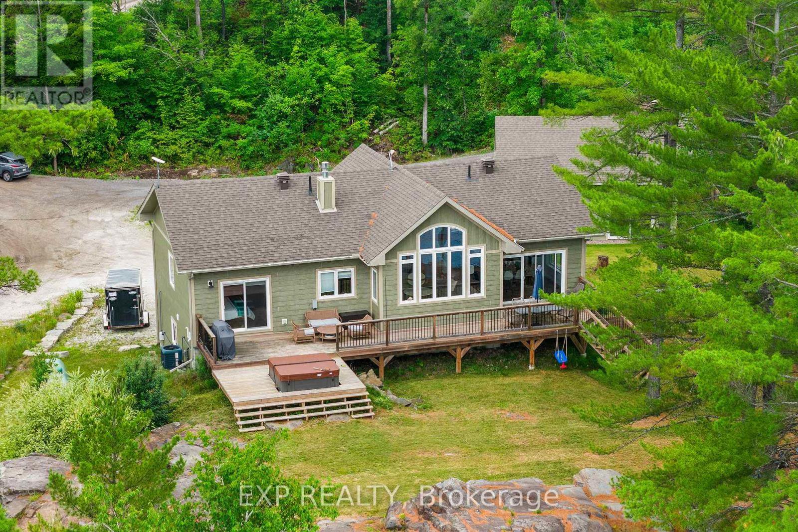 Waterfront living at its finest - welcome to 103 B Carriage Landing on the Ottawa River. Surrounded by mature trees and miles of navigable water to explore, this year-round retreat offers a peaceful, private setting with exceptional fishing, boating, and outdoor recreation right outside your door. Step inside to an impressive two-storey foyer with soaring 20' ceilings and an upper balcony overlooking the grand entrance. The main level features a bright, open-concept kitchen and living area highlighted by vaulted ceilings with exposed beams and expansive windows that fill the space with natural light and showcase the surrounding landscape. The primary suite offers patio doors leading directly to the deck and hot tub - your own private outdoor escape. A walkout basement at ground level enhances the seamless connection between indoor and outdoor living, while the main floor balcony provides the perfect vantage point to relax and take in the tranquil river views. Car enthusiasts and hobbyists will appreciate the attached double garage plus an additional detached double garage, offering exceptional storage and workspace flexibility. Ideally located just minutes from Renfrew and under an hour to Ottawa, this property delivers the perfect balance of waterfront serenity and everyday convenience. Whether you're seeking a weekend getaway or a full-time waterfront residence, this Ottawa River gem truly has it all.