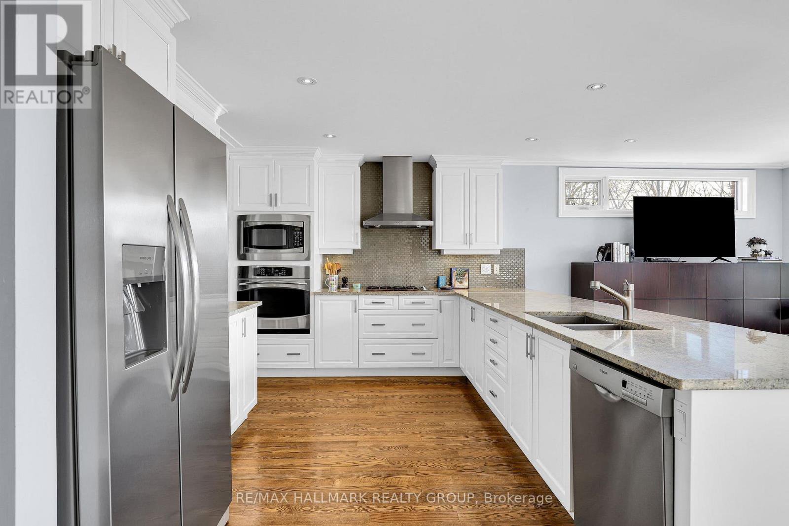 Welcome to 556 Edison Avenue - a refined, light-filled home designed for comfortable family living and effortless entertaining. A grand entrance with soaring 9-foot ceilings creates an impressive welcome a few steps up, rich dark hardwood floors lead to the expansive living room featuring elegant stair detailing, extensive crown mouldings, built-ins, and a gas fireplace. A sun-filled bay window with ledge seating adds charm and additional lounging space, while the front balcony offers a perfect spot for morning coffee or evening unwinding. The kitchen is designed for connection, anchored by a massive granite island with breakfast bar, walk-in pantry, and seamless flow to the eating area and family room - ideal for everyday living and entertaining. Step out to the deck with natural gas BBQ hookup for year-round grilling. Below, a covered sitting area with lighting provides a cozy outdoor retreat with views of the hot tub and the entire zero-maintenance west-facing yard. Upstairs offers four generous bedrooms including a serene primary retreat with sitting area and morning sun. The primary ensuite features quartz counters, double sinks, an oversized soaker tub, walk-in shower, and private toilet closet. A 4-piece main bath and convenient upper-level laundry complete the floor. The lower level features soaring ceilings, engineered flooring, marble counters, and a stylish wet bar complete with freezer drawers, dishwasher drawer, and wine fridge - perfect for entertaining. Excellent storage and a convenient partial bath add functionality. The oversized two-car garage with additional storage and interior access completes this polished home. Ideally located near Westboro Village, Altea Active, excellent schools, parks, transit, grocery stores, restaurants, coffee shops and the Ottawa River pathways, this home offers an exceptional blend of lifestyle, convenience, and community.