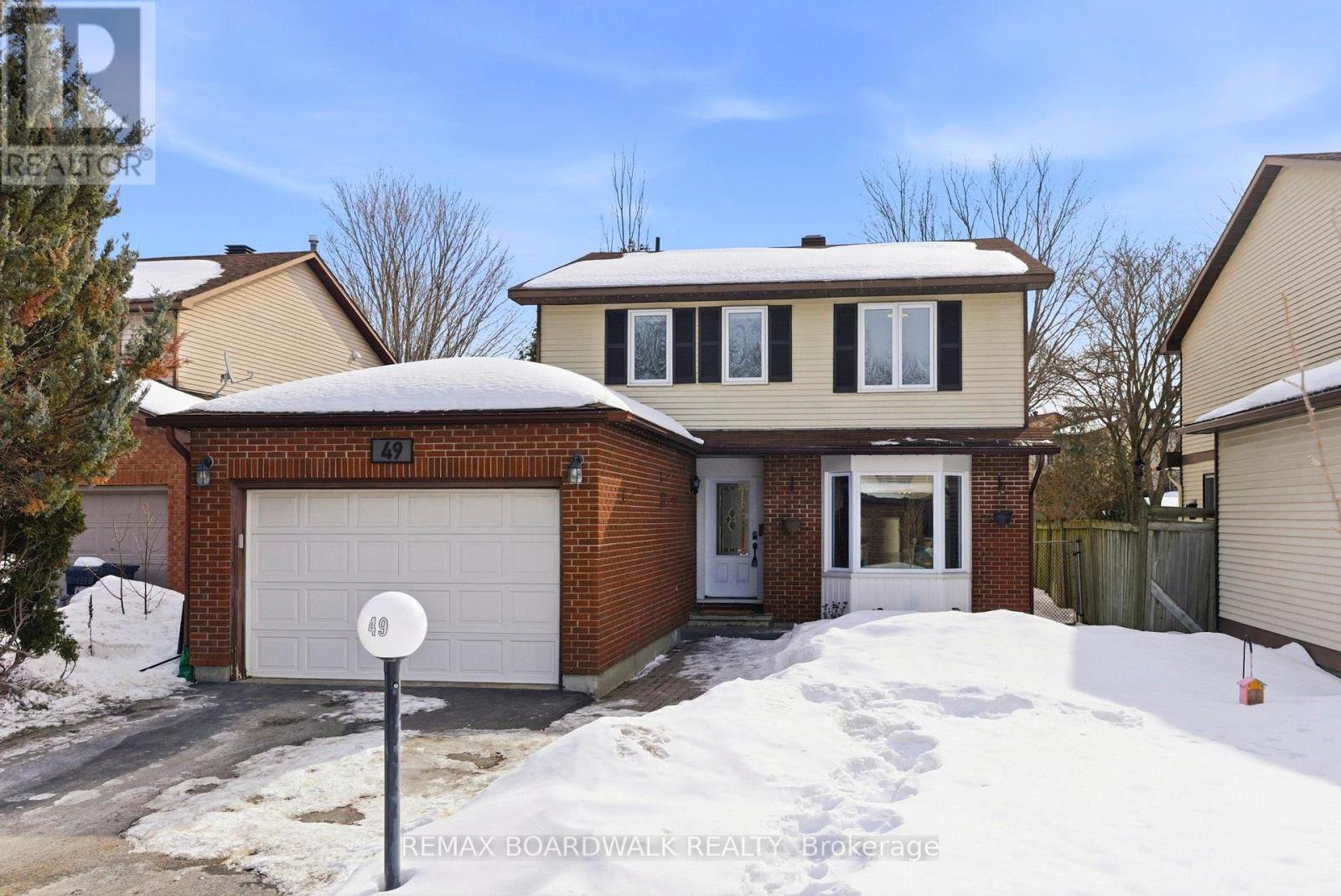 Welcome to 49 Liston Crescent! Set on a rare oversized lot in the heart of Katimavik, this beautifully maintained 4 bedroom, 2.5 bath home offers the perfect balance of space, comfort, and modern convenience! Impressive curb appeal features an expanded driveway, attached garage, perennial gardens, and permanent roofline lighting, along with smart upgrades including a Nest ring camera and keyless entry. Inside, a bright foyer welcomes you to refinished hardwood floors that flow throughout the main. The sun-filled living & dining room create an inviting setting for entertaining guests or enjoying quiet evenings. At the heart of the home, the spacious eat-in kitchen features stainless steel appliances, abundant cabinetry, generous counter space, a large island and a charming bay window overlooking the private fenced backyard surrounded by mature trees. The adjacent family room with patio doors leading to the expansive deck makes indoor-outdoor living effortless, ideal for summer BBQs, family gatherings, or peaceful mornings with coffee. Designed with daily living in mind, the main floor also offers a renovated powder room with integrated laundry, inside access to the garage, and a convenient side yard entrance. Adding to the home's efficiency, a Google Nest Thermostat provides modern climate control for year round comfort. Upstairs, you'll find 4 generously sized bedrooms, including a large primary retreat with a walk-in closet & 3-piece ensuite. A well appointed family bath completes the upper level. The freshly painted lower level features new laminate flooring, a spacious utility room with excellent storage, and a rough-in for a future bathroom offering flexible space for a rec room, home gym, or multigenerational living. Located steps from top rate schools; Katimavik Elementary, Holy Trinity Catholic HS, Holy Redeemer School, parks, shopping, transit, and quick access to HWY 417, this exceptional home combines location, lifestyle, and lasting value!