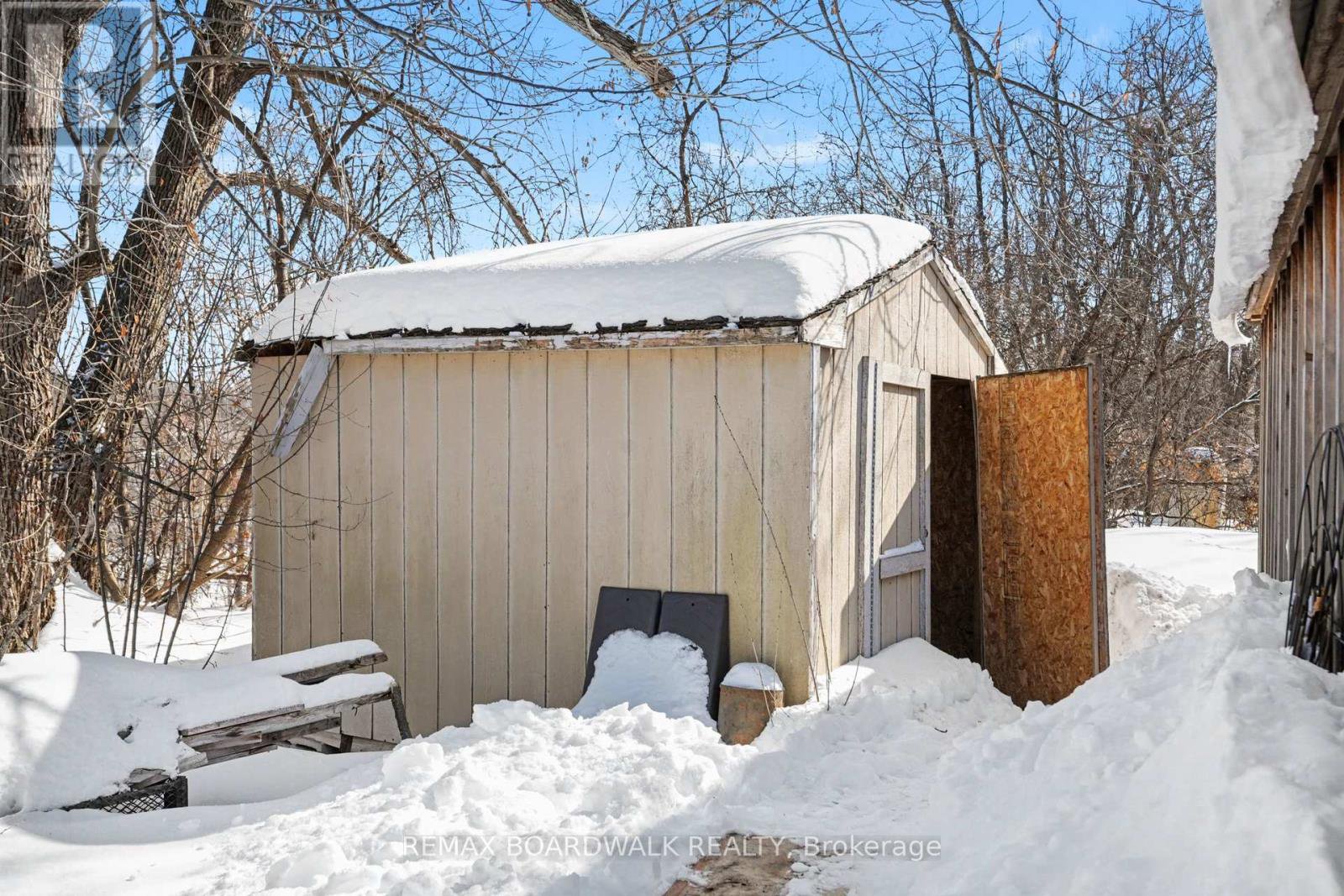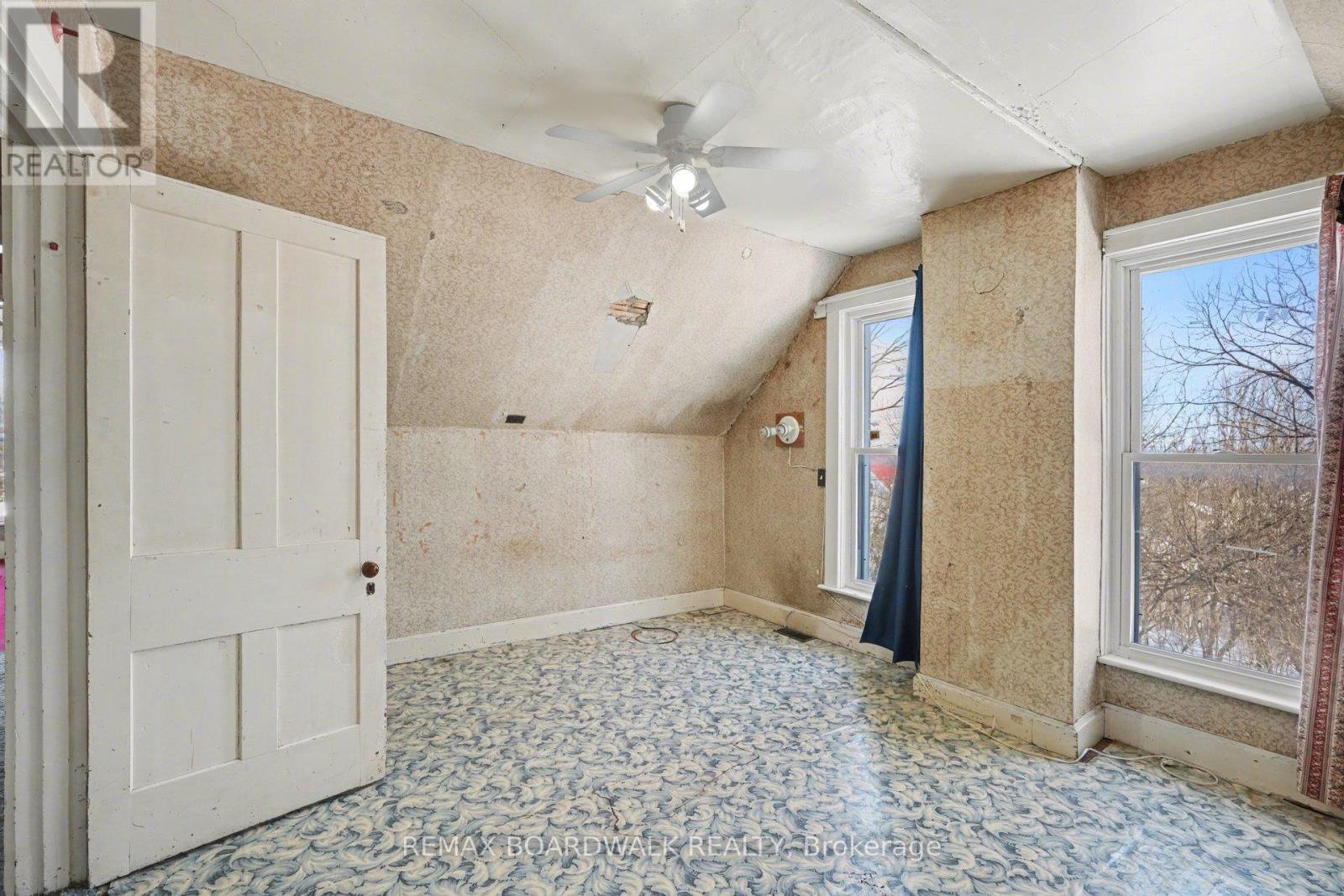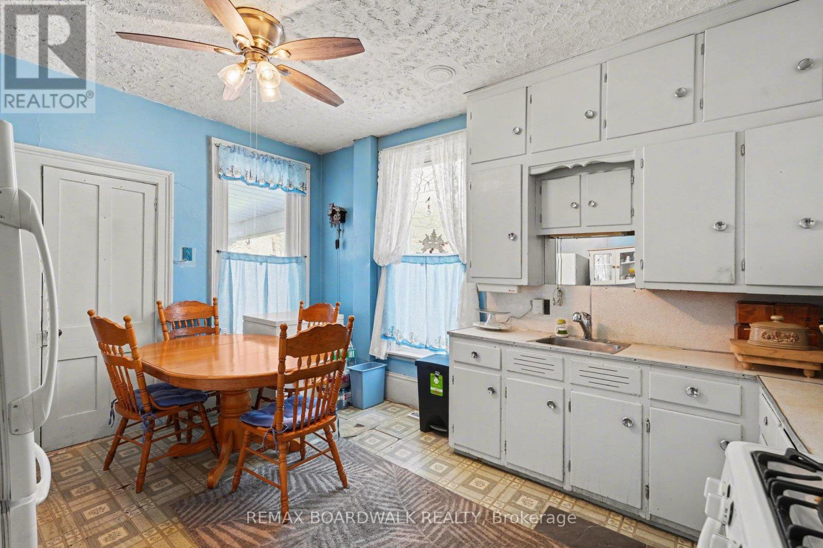 Set on a generous in-town lot along Church Street, this classic Almonte century home offers space, character, and an opportunity to make it your own. With approximately 1,400 sq ft of living space, this 3 bedroom, 2 bathroom home has been cared for over the years and is ready for its next chapter.The main floor features a spacious living room filled with natural light, along with a separate family room with a gas fireplace that creates a warm and comfortable gathering space. The large eat-in kitchen offers plenty of cabinetry and room for family meals, with a layout that connects easily to the main living areas. Additional main floor space provides flexibility for a home office or hobby area, along with a convenient powder room and laundry.Upstairs you will find three good-sized bedrooms with charming rooflines and bright windows overlooking the neighbourhood. A second bathroom serves the upper level.Outside, the deep in-town lot provides ample space for gardens, outdoor enjoyment, or future landscaping ideas. Several outbuildings offer practical storage for tools, seasonal equipment, or workshop space, and the private driveway provides convenient off-street parking. A wrap-around porch adds to the home's classic curb appeal and provides a welcoming place to relax outdoors.Located within walking distance to schools, parks, shops, cafés, and the Mississippi River, this property offers the chance to enjoy small-town living in one of Almonte's established neighbourhoods. Classic proportions and historic charm provide a wonderful foundation for the next owner to add their own touches over time.