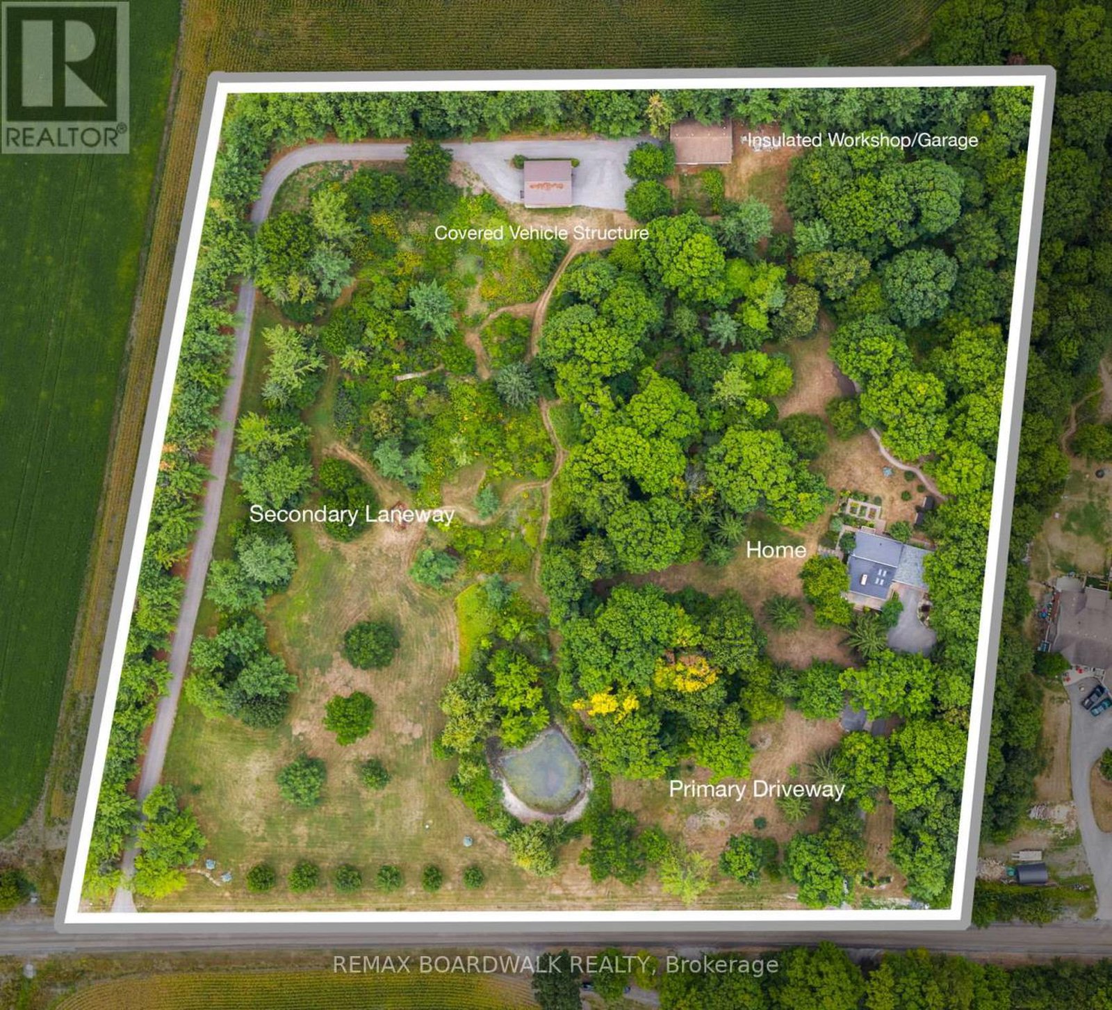 Introducing 5984 Third Line Road N, a spectacular private property nestled on an expansive 8-acre lot within the city limits of Ottawa, with 2 separate driveways on the North and South of the property. Located 7 mins to both 416 exits Bankfield and Roger Stevens. This serene oasis offers a blend of natural beauty and modern comforts. As you approach the residence via a picturesque driveway flanked by verdant greenery and majestic trees, you will be captivated by the tranquil surroundings a haven for nature enthusiasts.The residence, with 3 bedrooms plus a den, and 2 full bathrooms, has been meticulously updated and maintained to offer a blend of elegance and functionality. The spacious living room features cathedral ceilings, a cozy wood fireplace, and doors that open up to a partially wrap-around deck perfect for relaxation or entertaining. The dining room offers picturesque views of the property, while the renovated kitchen by Urban Effects provides a stylish and practical space for culinary endeavors.Upstairs, two bedrooms, and a renovated bathroom await, with one of the bedrooms featuring access to a balcony overlooking the backyard. Mid level offers a 3rd Bedroom, Den, and full Bath plus an additional walkout to the back yard, providing ample living space. The basement offers a recreation room with a second fireplace laundry room, utility room and crawlspace, for plentiful storage options plus a separate access to the oversized double-car garage. Enjoy daily strolls anytime of the year, through the meandering pathways within this property. At the end of the 2nd laneway you will find a large insulated workshop and covered structure which can offer ample space for hobbies, vehicle storage and your toys, making it an excellent addition to the property. Don't miss the opportunity to own this exceptional property that combines natural splendor with modern amenities, while living in the City of Ottawa.