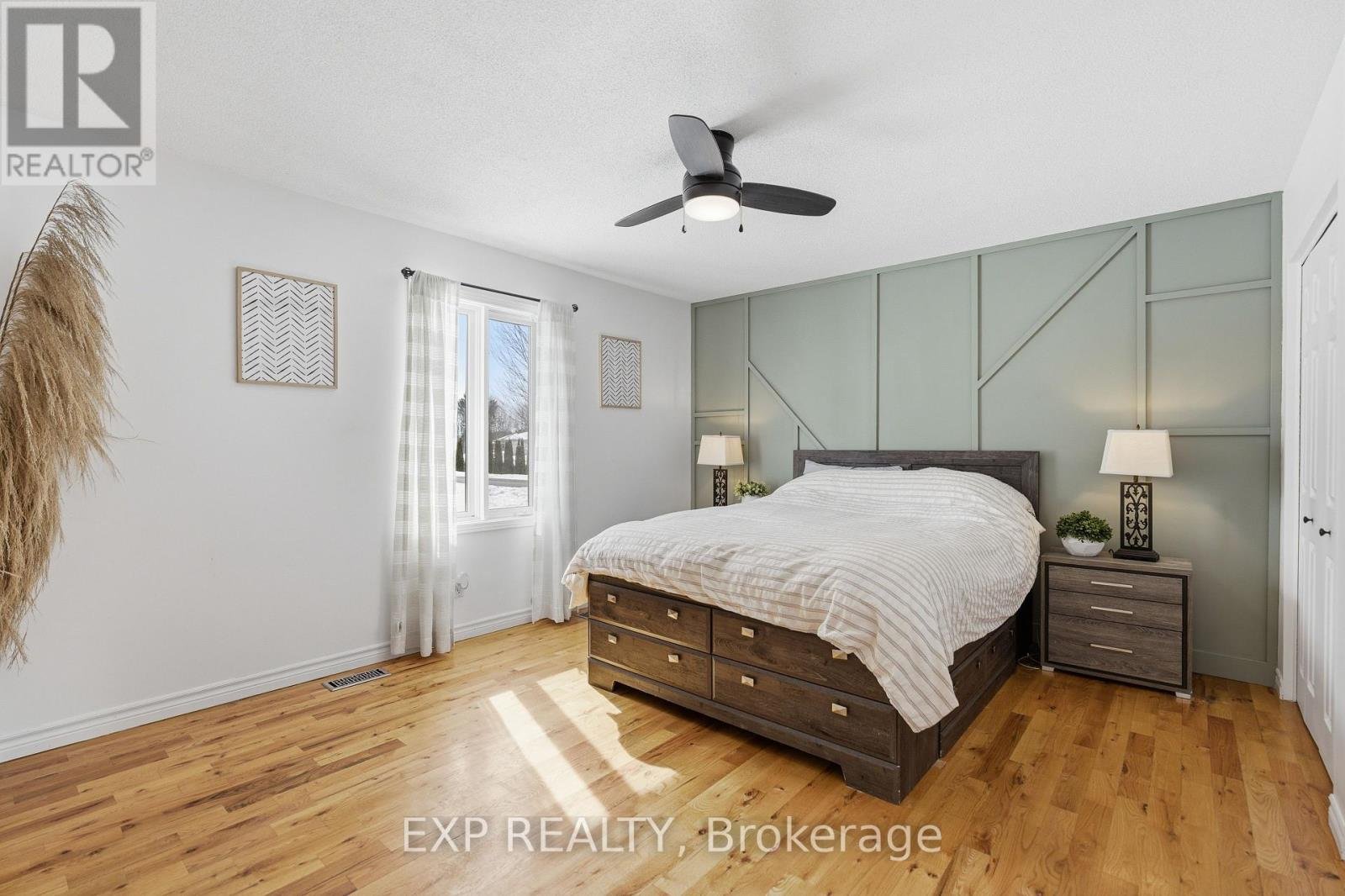 Situated on a beautifully landscaped 1.051-acre corner lot in Bourget, this renovated 3+1 bedroom, 2 bathroom bungalow offers space, comfort, and modern updates in a peaceful setting. A welcoming Trex front porch sets the tone, inviting you into the home. The bright main level features hardwood flooring throughout and a functional layout with a spacious living area and dining space with walk-out access to the rear yard, conveniently located beside the kitchen complete with stainless steel appliances. The living and dining areas are enhanced by stylish accent walls added in 2022. The main floor also includes a primary bedroom with an accent wall added in 2022, two additional bedrooms, and a full bathroom. The finished basement adds valuable living space with laminate flooring throughout, a large recreation area, an additional bedroom, living room and a stylish 3-piece bathroom renovated in 2022. Outside, enjoy the expansive backyard featuring a deck added in 2022 - perfect for relaxing or entertaining. Additional highlights include an oversized insulated garage and a GenerLink installed in 2025 for easy generator connection and peace of mind.