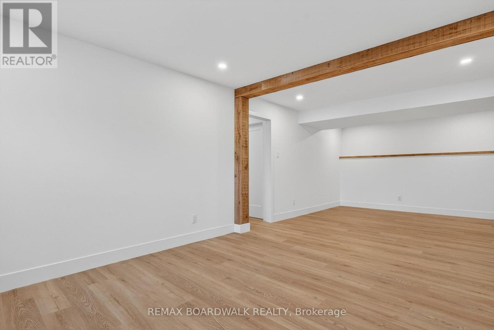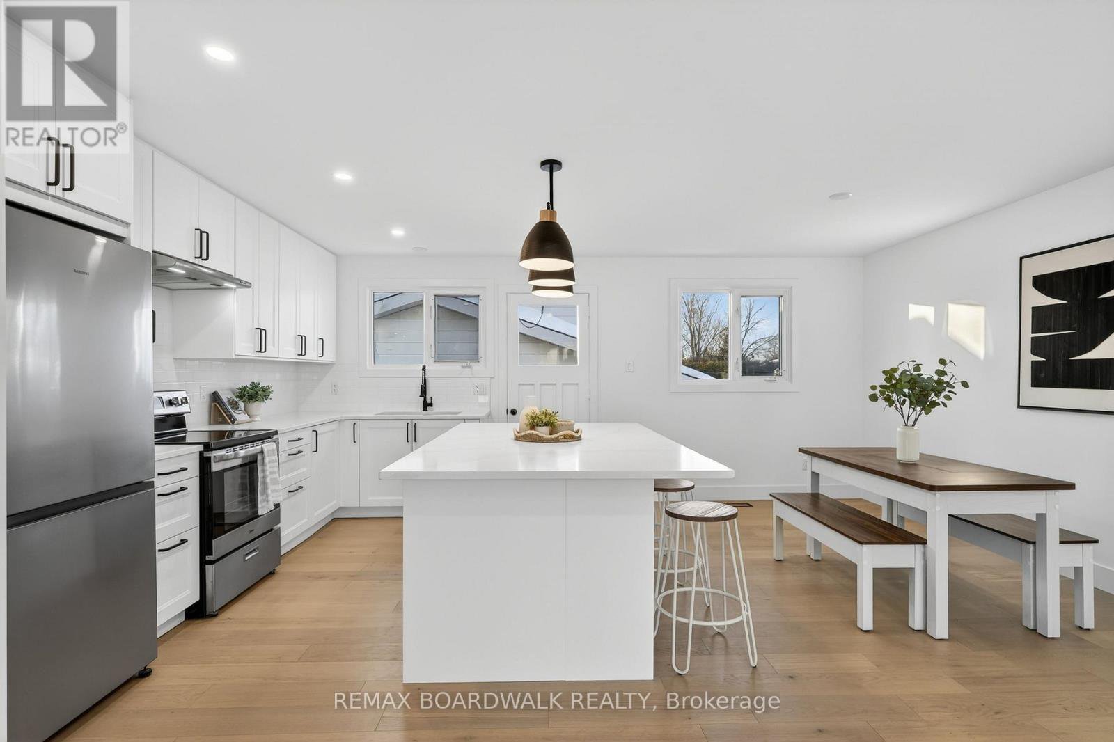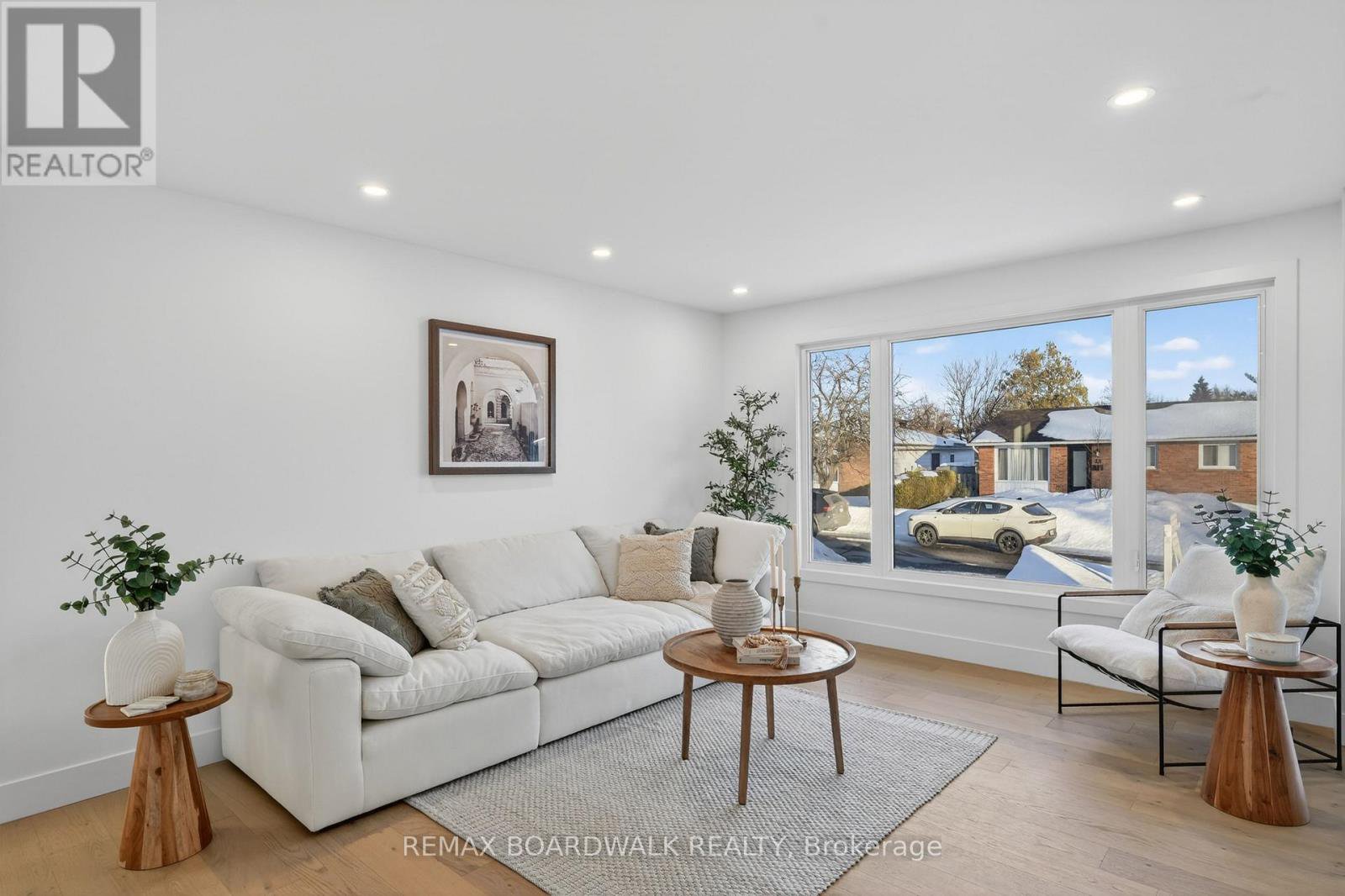 Welcome to 38 Courtney Rd! A warm and inviting fully renovated high ranch set on a quiet corner lot in the heart of Glen Cairn. This well-established, family-friendly community is loved for its parks, schools, and everyday conveniences. Offering a truly easy lifestyle with quick access to shopping, transit, highways, and all of Kanata's amenities. It's the kind of neighbourhood where you'll feel at home the moment you arrive. Step inside to find hardwood flooring throughout the main level and stairs, complemented by pot lights and upgraded light fixtures that create a bright, modern atmosphere. The beautifully renovated kitchen is the heart of the home, featuring new cabinetry and appliances, quartz countertops, a timeless subway tile backsplash, and an oversized island with additional storage, perfect for casual mornings, hosting friends, and everything in between. Bathrooms have been tastefully updated, and thoughtful details continue throughout, including a new front door, updated modern exterior, iron spindles, and a stylish barn door for the main closet. The finished lower level provides flexible additional living space with luxury vinyl flooring and the added comfort of improved basement insulation. Complete with a double-car garage and a large laundry room, this home offers the perfect blend of comfort, style, and practicality-ready to welcome its next owners.