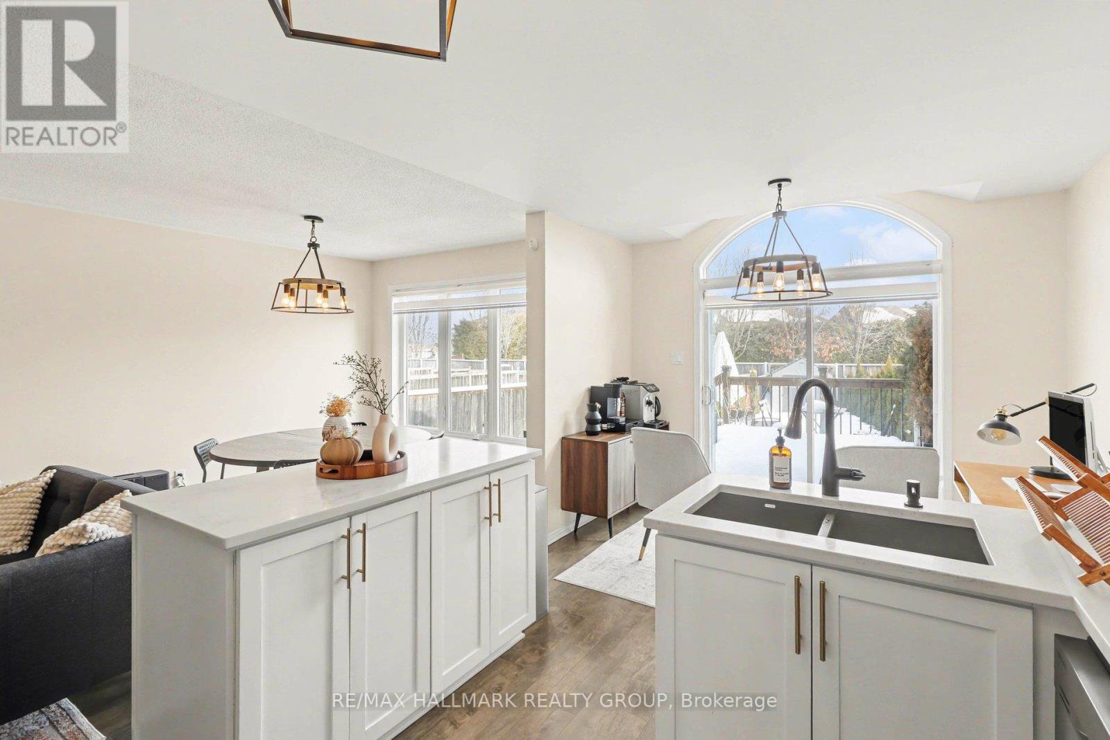FANTASTIC END UNIT ON AN OVERSIZED LOT WITH NO REAR NEIGHBOURS!Welcome to 2229 Brockstone Crescent - a rare opportunity to own a beautifully maintained Manhattan model end-unit townhome on one of the largest lots in the area, offering exceptional outdoor space and added privacy.Situated on a premium pie-shaped lot with approximately 39.3 ft of frontage and nearly 142 ft of depth, this property provides a backyard rarely found with townhomes. The fully fenced yard offers outstanding privacy and space for entertaining, relaxing, or family activities. Enjoy summer evenings on the spacious deck, with plenty of additional green space and a convenient storage shed.Inside, the home features a bright and functional open-concept layout. The main floor offers a welcoming eat-in kitchen with abundant cabinetry and counter space, now beautifully updated in 2026 with refinished cabinetry and new quartz countertops, along with stainless steel appliances. The kitchen flows seamlessly into the large living and dining area, easily accommodating a full dining set and perfect for hosting.The newly refinished hardwood floors on the main level add warmth and elegance, while quality laminate flooring throughout the bedrooms and lower level provides durability and a modern look. The only carpet is on the stairs, upper hallway and second-floor landing.Upstairs you'll find 3 generously sized bedrooms, including a spacious primary retreat featuring a large walk-in closet and a 4-piece ensuite with a relaxing soaker tub.The fully finished lower level adds valuable living space with a cozy gas fireplace, ideal for movie nights or a comfortable family room, along with ample storage.Located on a quiet, family-friendly crescent, this home offers the perfect balance of tranquility and convenience. Enjoy miles of nearby walking trails and close to shopping, restaurants, parks, and transit.