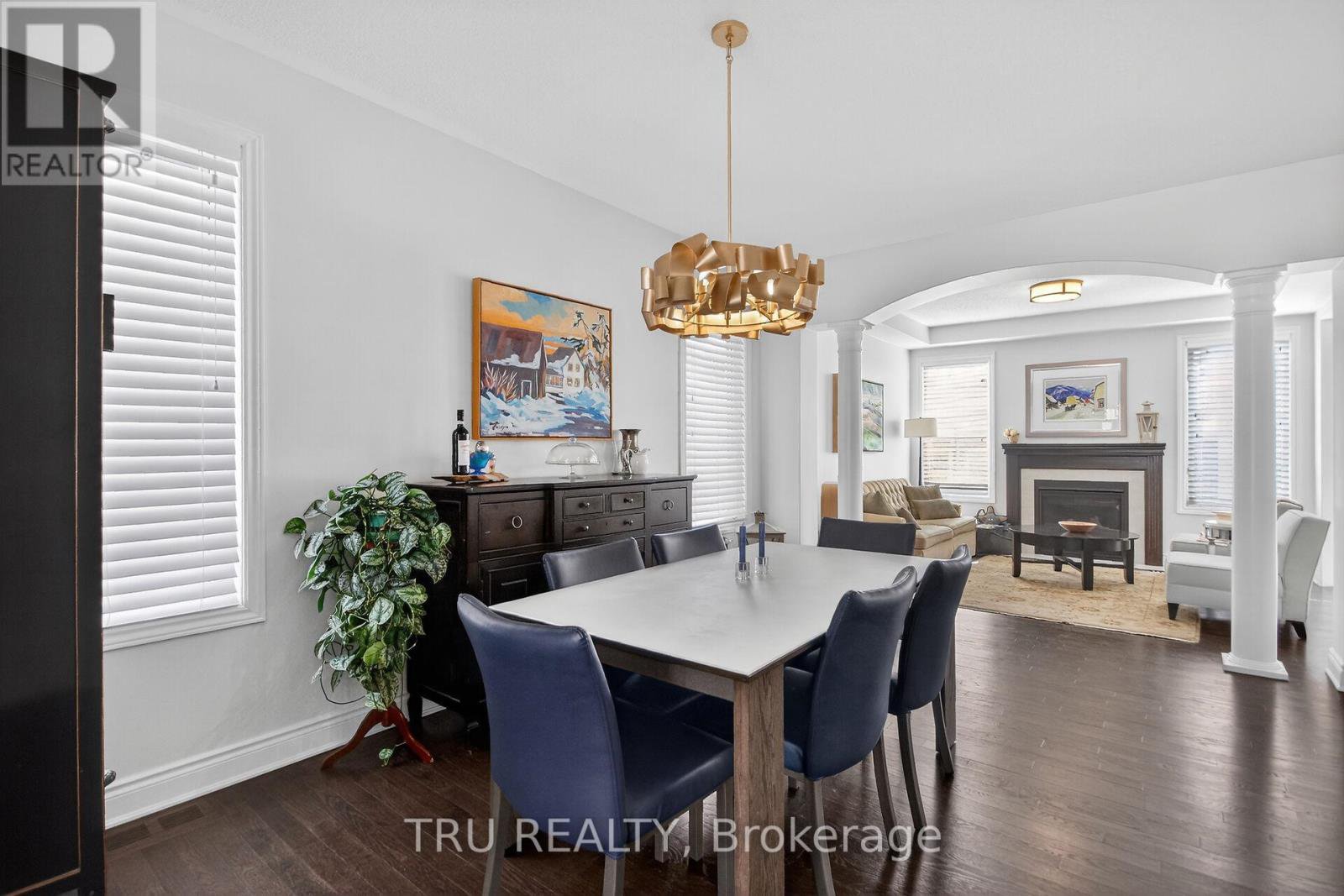 This beautifully appointed single-family home with a 2-car garage offers style, comfort, and thoughtful design throughout. The main floor features rich hardwood flooring and a warm, inviting living room centered around a cozy gas fireplace. Elegant pillars and a graceful archway create a refined separation between the living and dining rooms while maintaining an open, flowing layout. Designer lighting is showcased throughout the home, adding a sophisticated touch to every space.The chef's kitchen is sure to impress, featuring high-end appliances, a gas range, premium granite countertops, and ample workspace for cooking and entertaining. Upstairs, hardwood continues along the staircase and upper landing. The generous primary bedroom includes a large walk-in closet and a luxurious ensuite complete with granite counter, dual sinks, a separate shower, and a relaxing soaker tub. Bedrooms two and three are conveniently connected by a Jack-and-Jill bathroom. A large upstairs laundry room adds practicality and includes a newer Samsung washer and dryer. Above the garage, an extra-large great room filled with natural light provides the perfect space for a family room, office, or recreation area.The professionally finished basement offers even more living space, making this home ideal for families and entertaining alike. The fully landscaped front and back yards feature low-maintenance artificial grass, a beautiful flagstone patio, and thoughtfully designed garden spaces-perfect for relaxing or entertaining. With no lawn to mow, you'll have more time to enjoy peaceful strolls through the beautiful forest directly across the street. Welcome home!