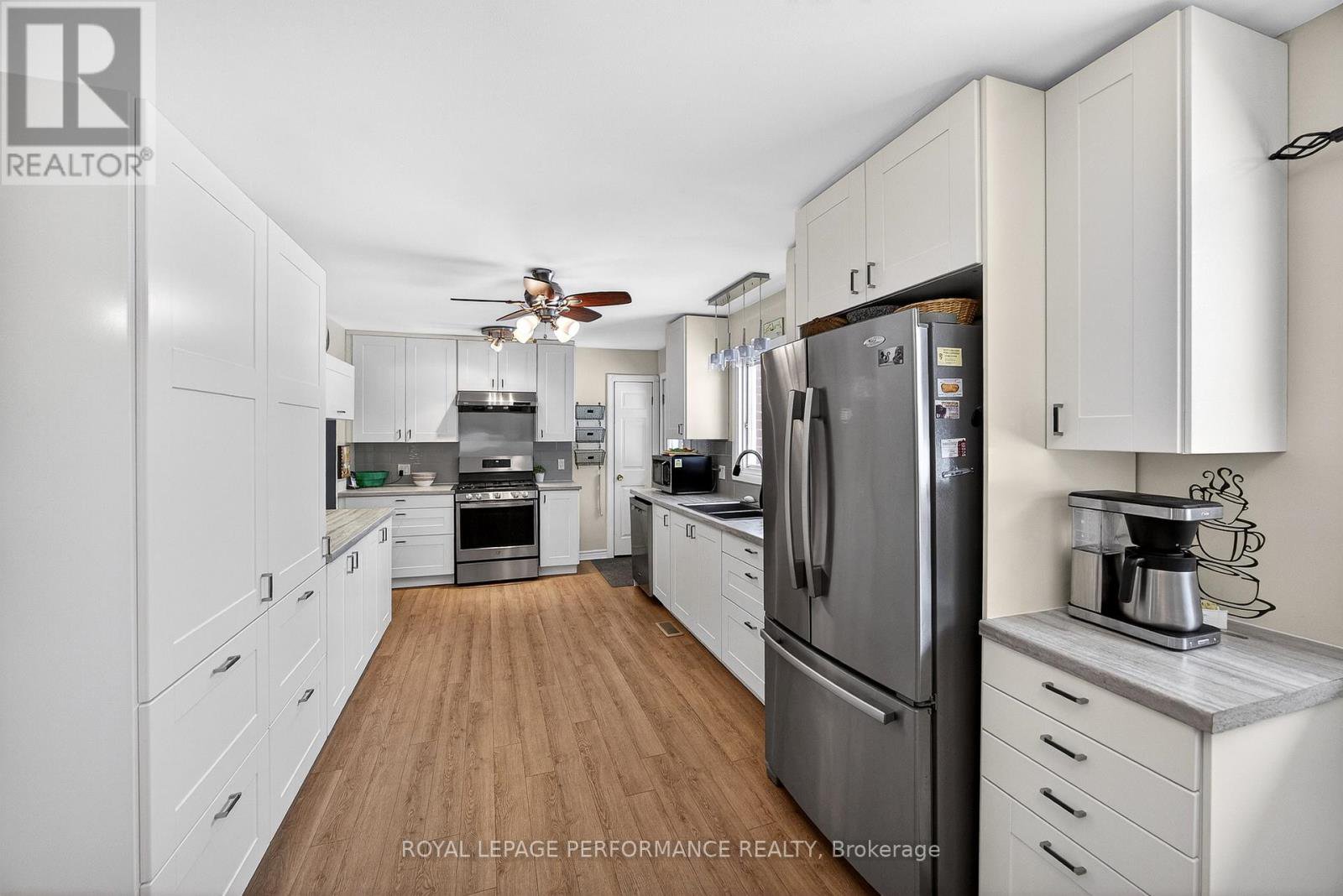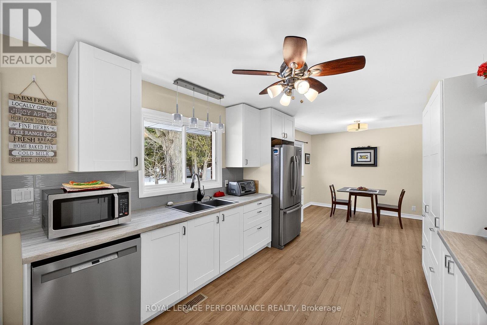 Situated in the village of Carp, boasting a spacious living rm w/cove ceilings & stunning moulding & trim, large gourmet kitchen w/energy saving dual fuel stove & ample storage space & work counters & integrated dining area. Hallway leads to full bathroom, 2 large bdrms and 1 medium sized bdrm, perfect for a child or use as an office. The full basement has a recently partially remodeled area awaiting your finishing touches, a lovely new 2-Pc powder rm, workshop & storage area, laundry area, gas furnace, new owned gas water heater & new water softener. Outside you will find maintenance free decking at the front entrance and 20' x 16' deck in the back. The deck includes a permanently installed 12' x 12' hard top gazebo w/premium grade mosquito netting for your summer outdoor relaxation & entertainment. The garden has 2 large perennial flower beds w/a mix of native and ornamental flowers that bring a plethora of birds & pollinators. There is also a vegetable garden w/12 raised beds of various sizes. There are 2 storage sheds & a 3 bin compost area. The property has a 4 car recently paved driveway, a two car garage with a new cement floor, new insulated garage door, new Chamberlain direct drive garage door opener w/battery back up to operate in a power outage. In the front yard there is a gorgeous crab apple tree that is a showstopper when in bloom in the spring, small shade flower bed & a full sun drenched bed that runs along the front of the house. The village has an outstanding medical clinic, that houses a lab, a physio facility and dental facility. There is another dentist in town as well as an excellent vet clinic for your pets. The town has several eateries, coffee shops, 2 bakeries, a nail salon, hair salons, a small Rona, a yard equipment store, two barbershops, an LCBO & other small businesses. It is a 10 minute drive to Kanata's high tech area as well as shopping & Stittsville for more amenities. Home to the Diefenbunker, elementary school, museum & library.