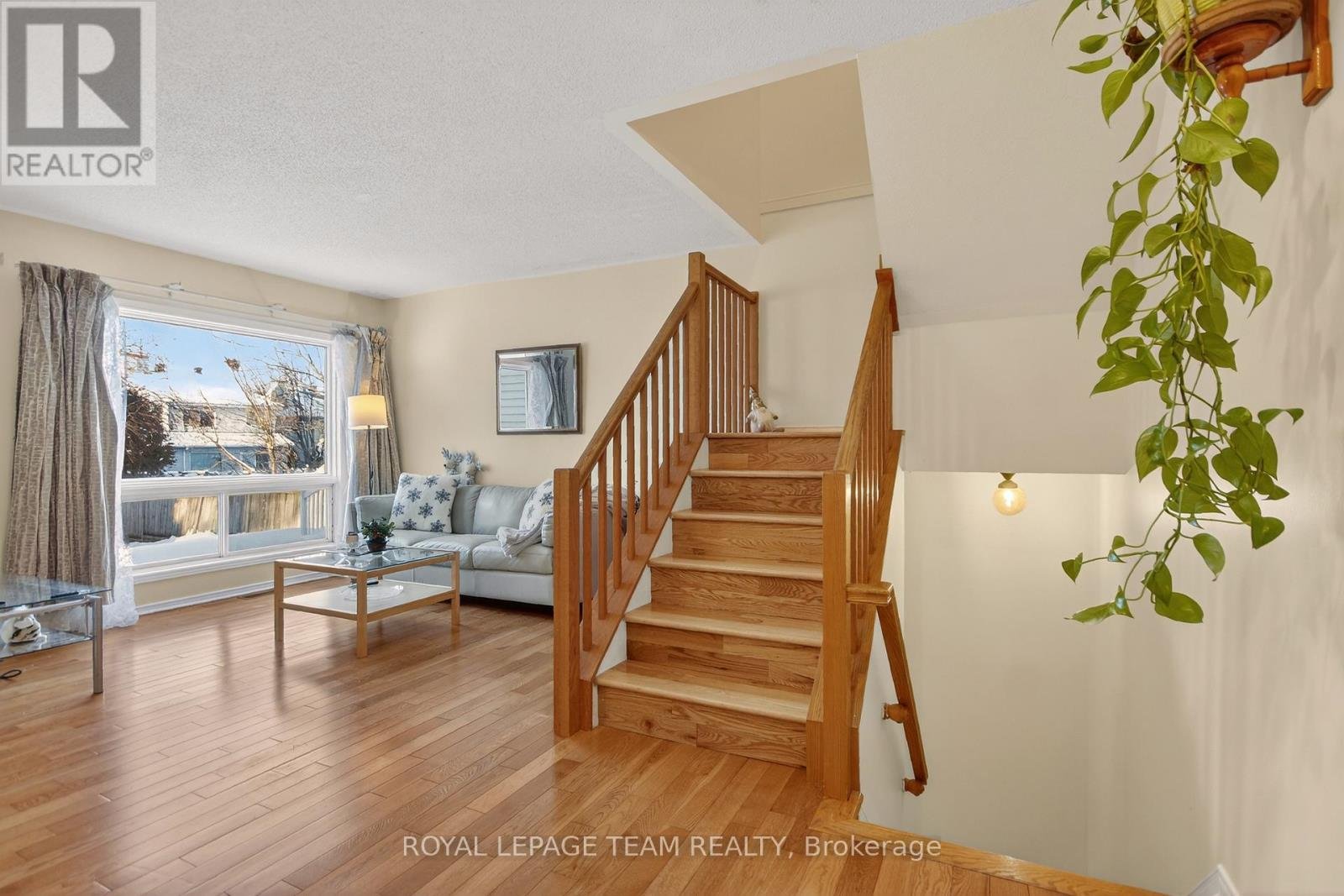 48 JACKMAN TERRACE. This bright and move-in ready 3 bed, 2 bath townhome is located in the desirable Katimavik community. Located on an extra deep lot perfect for outdoor enjoyment. The main floor features generous windows and a practical layout. Eat-in kitchen with stainless steel appliances, lots of counterspace, pantry and patio doors to rear yard. Sun filled living room with open concept to dining room. Beautiful oak hardwood flooring on main level, upper staircase, and all 3 bedrooms on the second level. Spacious primary bedroom with walk in closet, vanity area with sink, cheater door to main bath, plus two additional well sized bedrooms. A fully finished basement adds valuable living space for a rec room, home office, or guest area. The 2 tier deck features wood pergola overlooking a spacious backyard with a shed and mature trees. Great for entertaining, gardening, or family activities. Steps away from Centrum Shopping Center, parks, schools, The Wave Pool, and quick access to the 417 and future LRT.