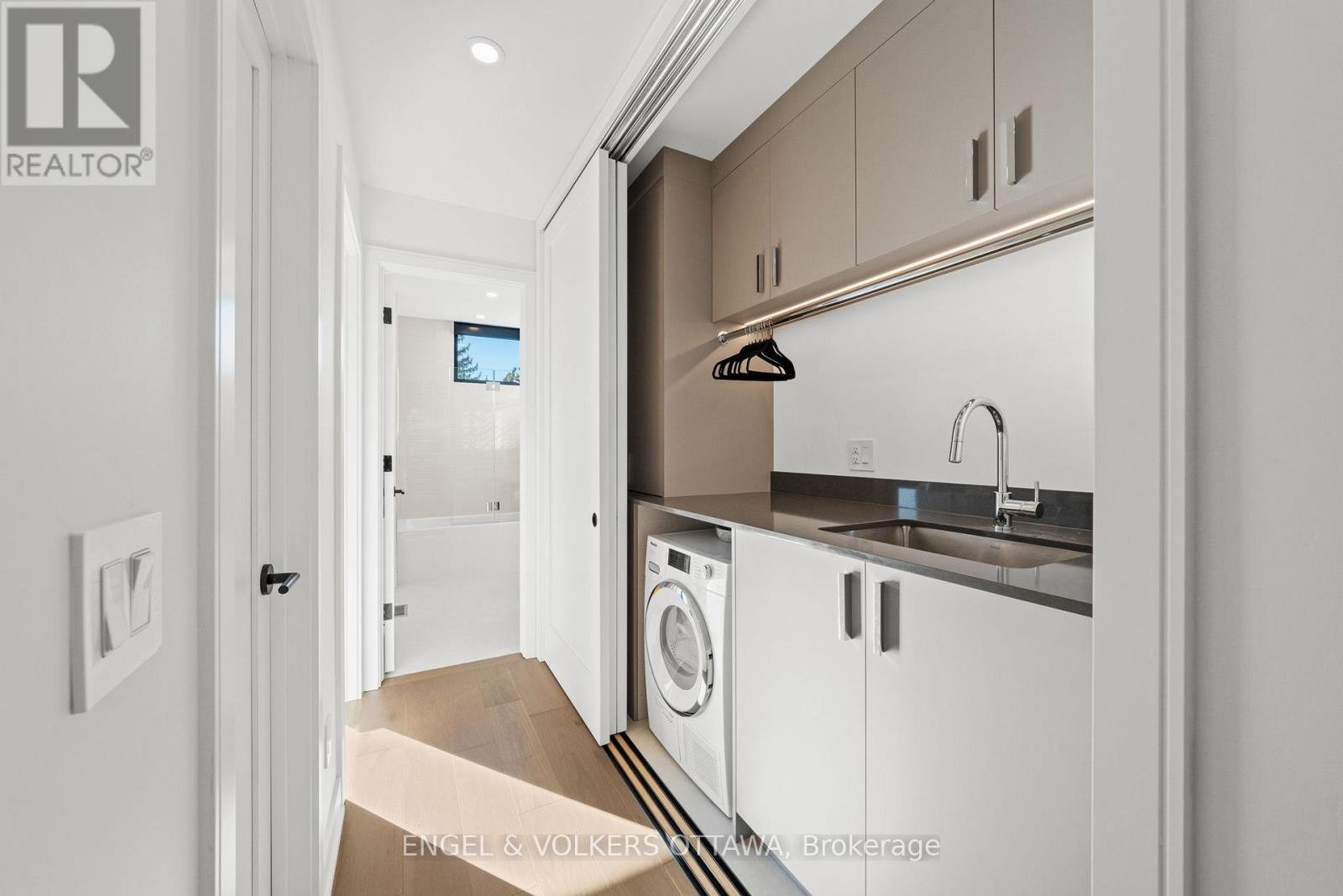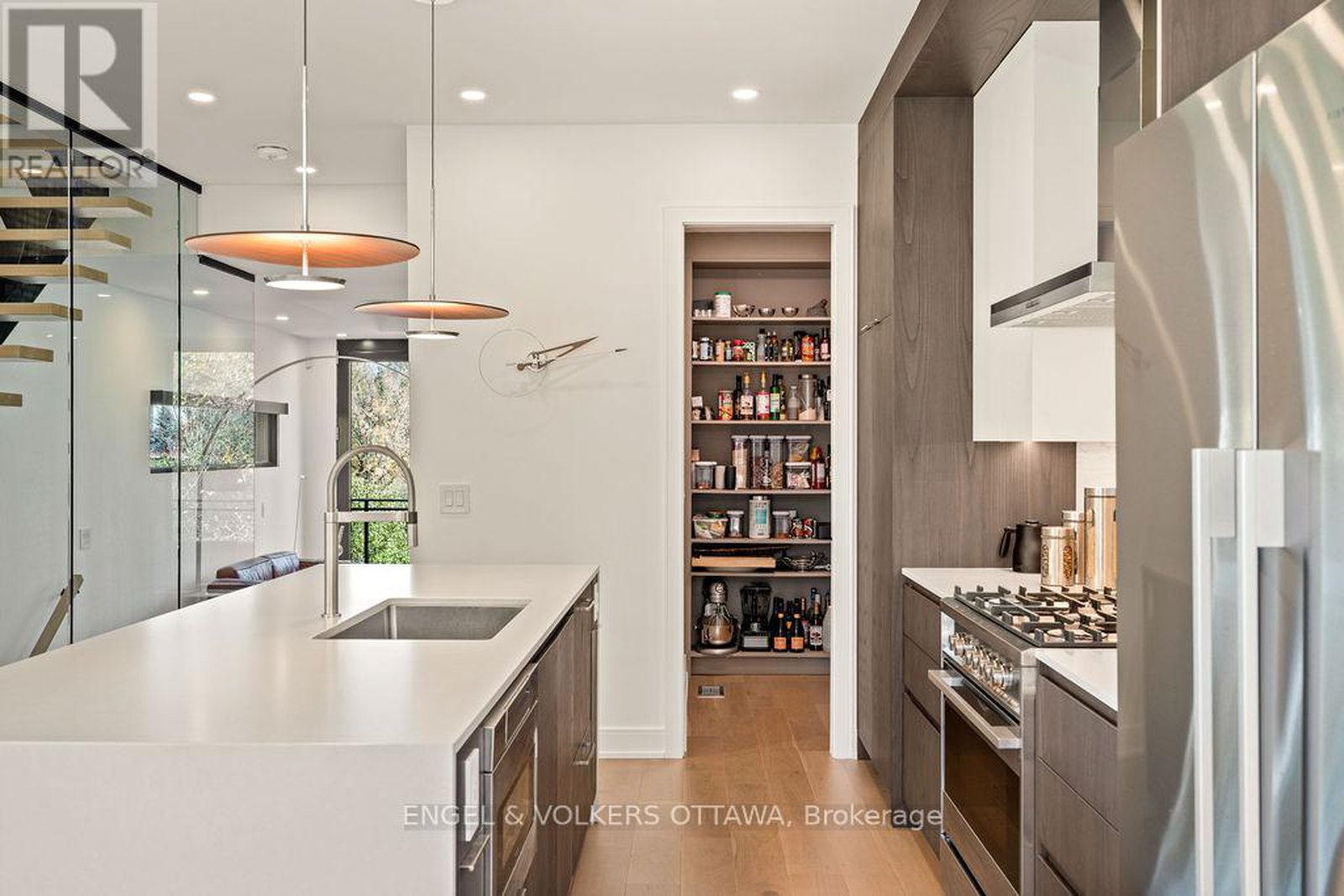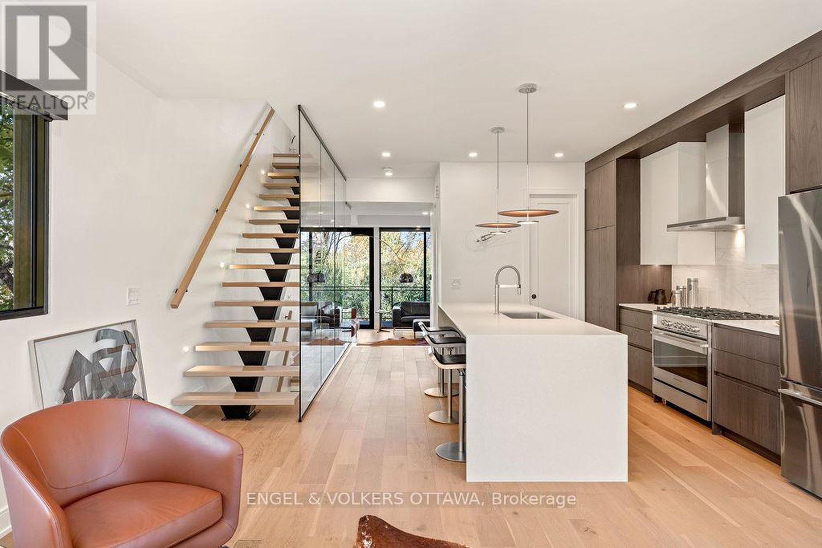 Welcome to 127 Peridot Private, an exceptional residence in an award-winning enclave of just seven luxury homes by Gemstone Developments. This exclusive community blends refined design, natural surroundings, and a prime central location. As the only home in the community featuring an extended private driveway and back deck, as well as incredible additional custom windows, this home offers rare, unobstructed views of the Experimental Farm and the Rideau Canal. Winner of a GOHBA award for interior design, this 3-bedroom, 4-bathroom home showcases over 2,400 sq. ft. of thoughtfully curated living space. The main level is perfect for stylish entertaining, featuring a chef's kitchen with a waterfall quartz island, custom cabinetry, gas range, walk-in pantry with sink, and designer finishes. Two elegant living areas with upgraded gas fireplaces and a sleek powder room complete the space. Amazing views from every room and private balcony off the back living room. Upstairs, the serene primary suite impresses with expansive windows and a spa-inspired ensuite with a soaker tub, expanded two-person glass shower, double vanity, and bidet. Two additional bedrooms, a full bath, and a laundry closet with a sink and custom cabinetry provide flexibility for guests or a home office. Ground level features a spacious foyer and a versatile area currently used as a stylish home gym, easily adaptable as a family room or office, along with a convenient powder room. Upgraded stringer staircase with open glass panels adds a striking architectural element while preserving the homes airy, contemporary feel. An extended lower back deck provides direct access to a beautifully landscaped backyard - offering a peaceful retreat surrounded by nature. Just moments from Little Italy, Dows Lake, and the Civic Hospital, with walking and bike paths at your doorstep. Visit the website for full list of upgrades.