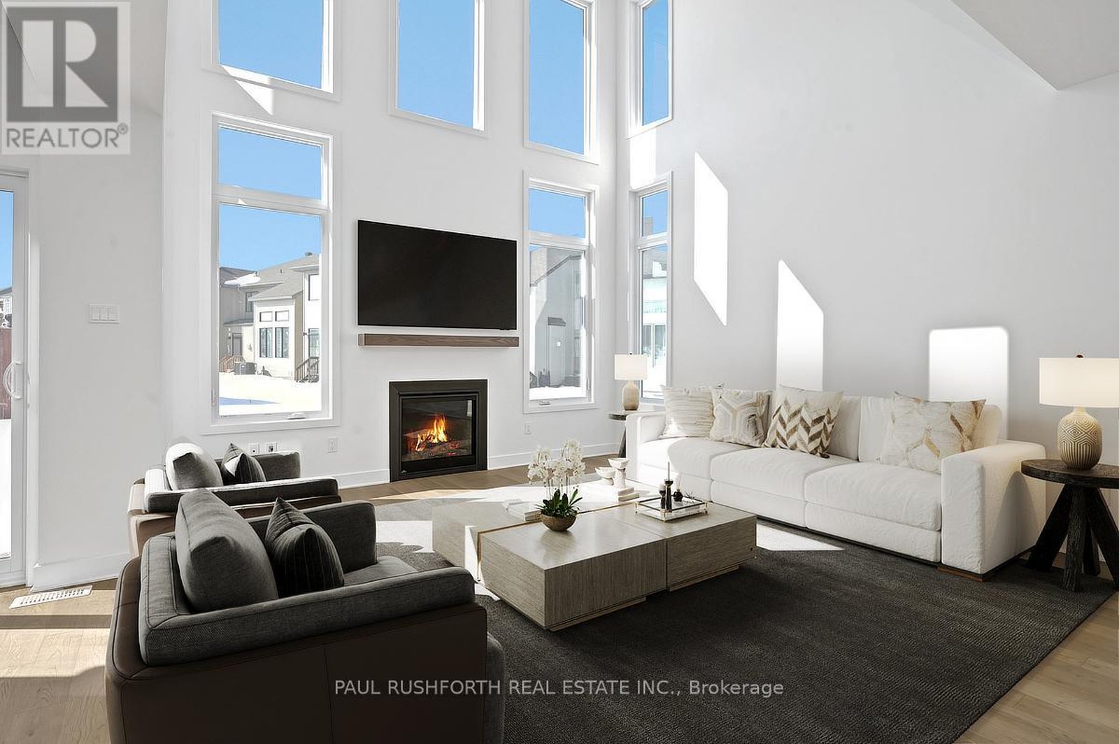 Skip the wait! This brand new 2,043 sq ft Strathmore model by Phoenix Homes is move-in ready, featuring over $38,000 in upgrades, a finished basement, and full Tarion warranty for peace of mind. The main floor impresses with 9-foot ceilings, 5" pre-engineered hardwood, and a dramatic family room with 17-foot ceilings and gas fireplace. The chef's kitchen is equipped with stainless steel appliances, an oversized island, walk-through pantry, soft-close cabinetry, and pot & pan drawers - a perfect place for entertaining. An oak staircase and Levven smart lighting package complete the refined feel. Upstairs offers 3 bedrooms with a loft overlooking the main living area, as well as primary retreat with 5-piece ensuite, and second-floor laundry. The lower level adds 438 sq ft of finished recreation space with an approx. 9' foundation pour and 3-piece rough-in. Whether you envision a home theatre, gym, playroom, or office, the space is ready to make it yours. Some photos have been virtually staged.