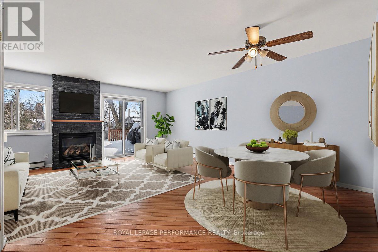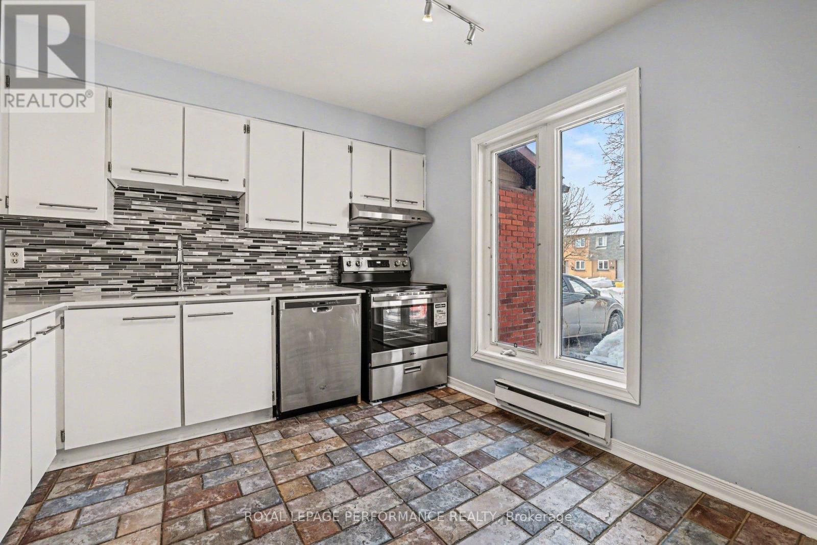 Rarely offered! Attached only by the garages on each side, this unique home offers a rare sense of privacy and separation compared to typical attached properties. Set on a deep 135 ft fully fenced lot, this beautifully refreshed, move-in ready home features HARDWOOD flooring on TWO LEVELS and is ideally located in a convenient neighbourhood close to every amenity. Freshly painted throughout in 2026, the main level offers a bright open-concept living and dining area with hardwood flooring, anchored by a cozy gas fireplace w/ blower for heating. Patio doors lead directly to the backyard, creating a welcoming space ideal for everyday living and entertaining. The beautifully updated kitchen is a standout feature, offering an excellent layout with abundant cabinetry and preparation space. Stylish updates completed in 2026 include QUARTZ countertops, a modern backsplash and newer appliances including fridge(26), stove(26) and hood fan (26), creating a space that is both elegant and functional. A fully updated powder room with Quartz counter (26) completes the main level. Upstairs, hardwood flooring continues throughout. The bright and spacious primary bedroom offers a generous closet, while two additional well-sized bedrooms provide flexibility for family, guests or a home office. A full 4-piece bathroom serves the upper level. The finished lower level adds valuable living space with a large recreation room, laundry area and ample storage. Step outside to enjoy the deep fully fenced backyard, perfect for relaxing, entertaining or family play. The attached garage provides convenient backyard access, and the extended driveway accommodates parking for up to three vehicles. Additional updates include PVC windows, roof shingles (11) & owned hot water tank (20). Ideally located just minutes to Pineview Golf Course, parks, Blair LRT, transit and the many shops and amenities along Ogilvie Road.