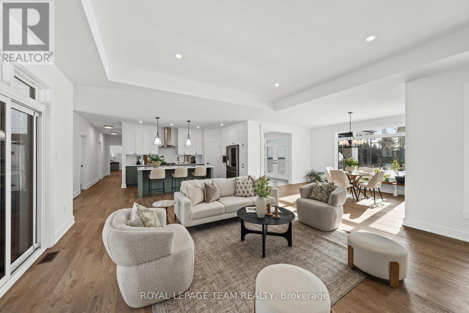 Located on a 1.1-acre lot in Glasgow Ridge, this beautifully appointed property offers a tranquil setting with an easy commute to conveniences. Step inside from the charming front porch to a sun-filled living space accented with transom windows, smooth ceilings, and hardwood flooring throughout. The kitchen features two-toned, floor-to-ceiling cabinetry, quartz countertops, tile backsplash, a pantry, and a centre island that extends the prep space - ideal for entertaining. This area opens to the dining room and great room with a natural gas fireplace, tray ceiling, recessed shelving niches, and access to the covered porch and backyard. A dedicated laundry room with interior access to the three-car garage adds convenience. The inviting primary bedroom includes a walk-in closet with custom maple built-ins and a 5-piece ensuite with a dual-sink vanity, a soaker tub, and a glass-enclosed shower, creating a private retreat. Two secondary bedrooms share a well-appointed bathroom. Outdoors, the covered porch opens to a backyard framed by mature trees, providing a serene and private space to relax throughout the seasons.