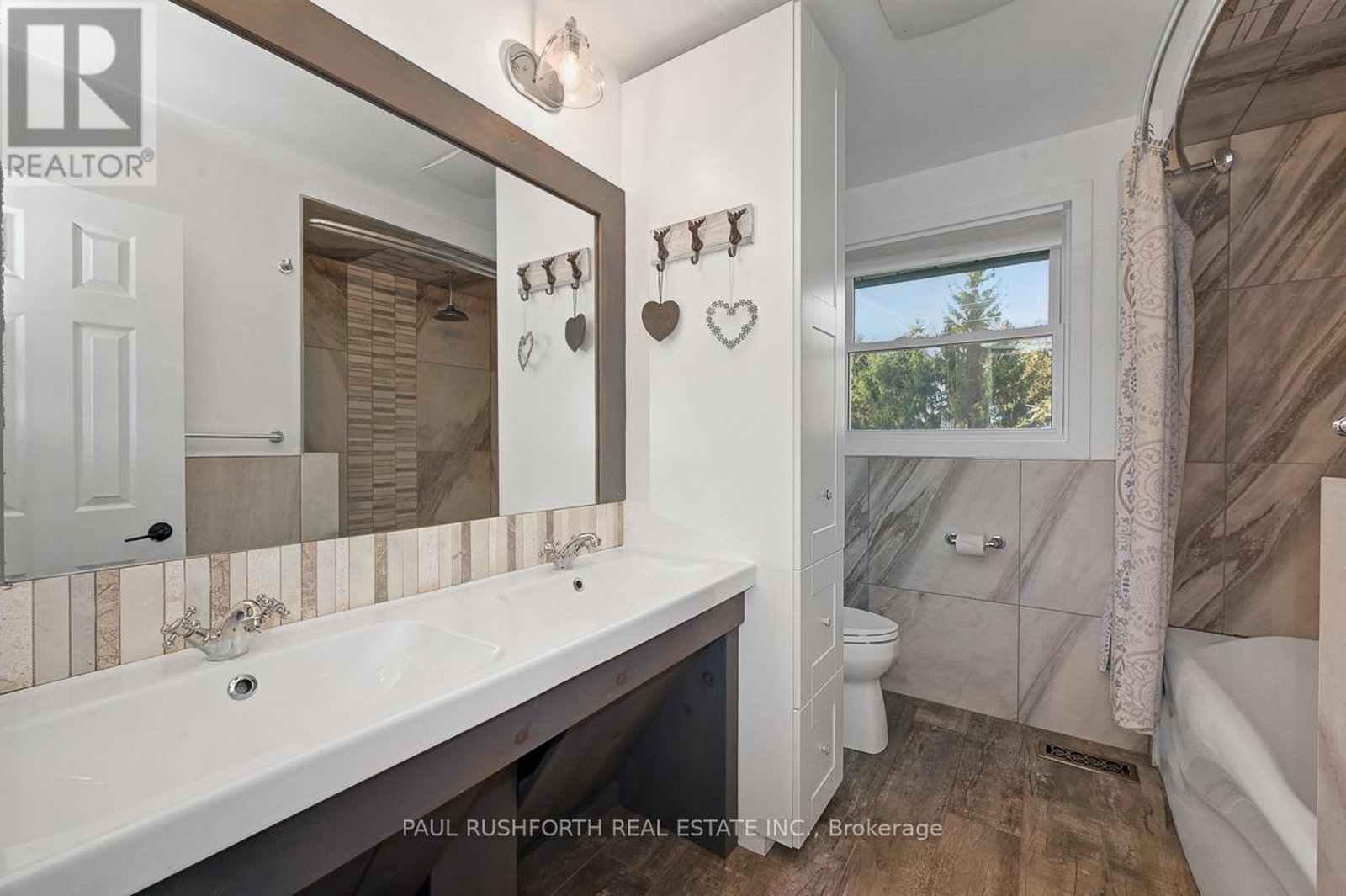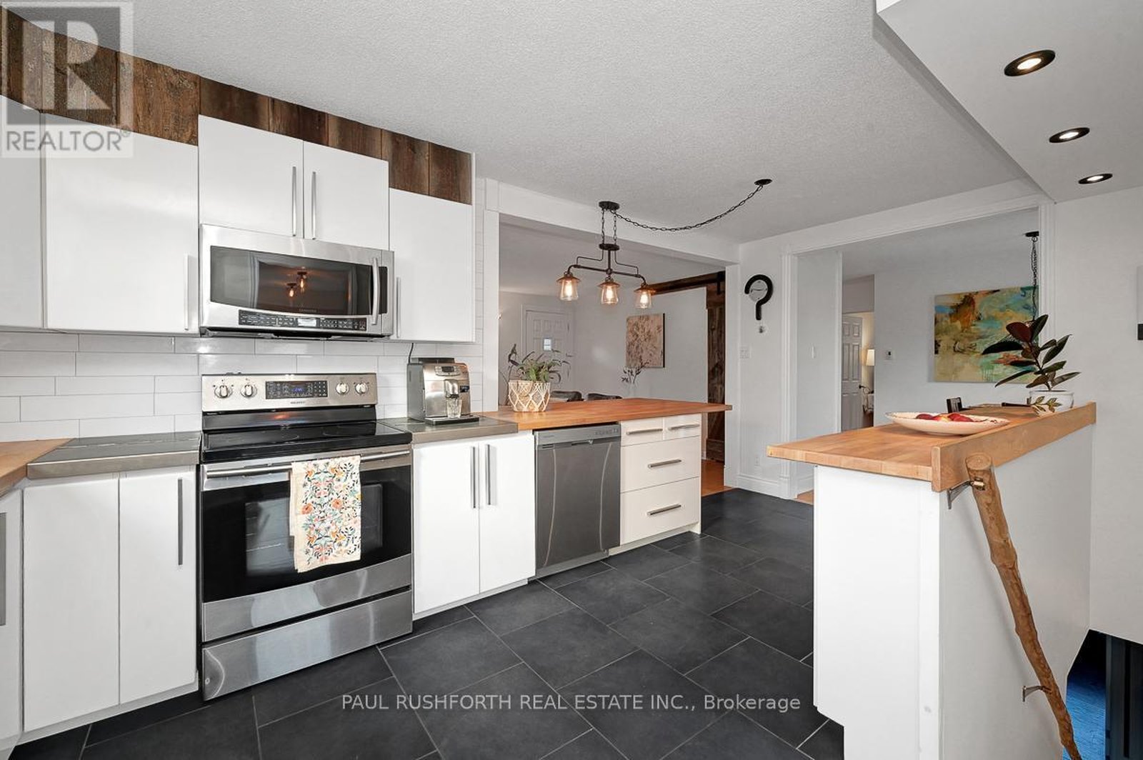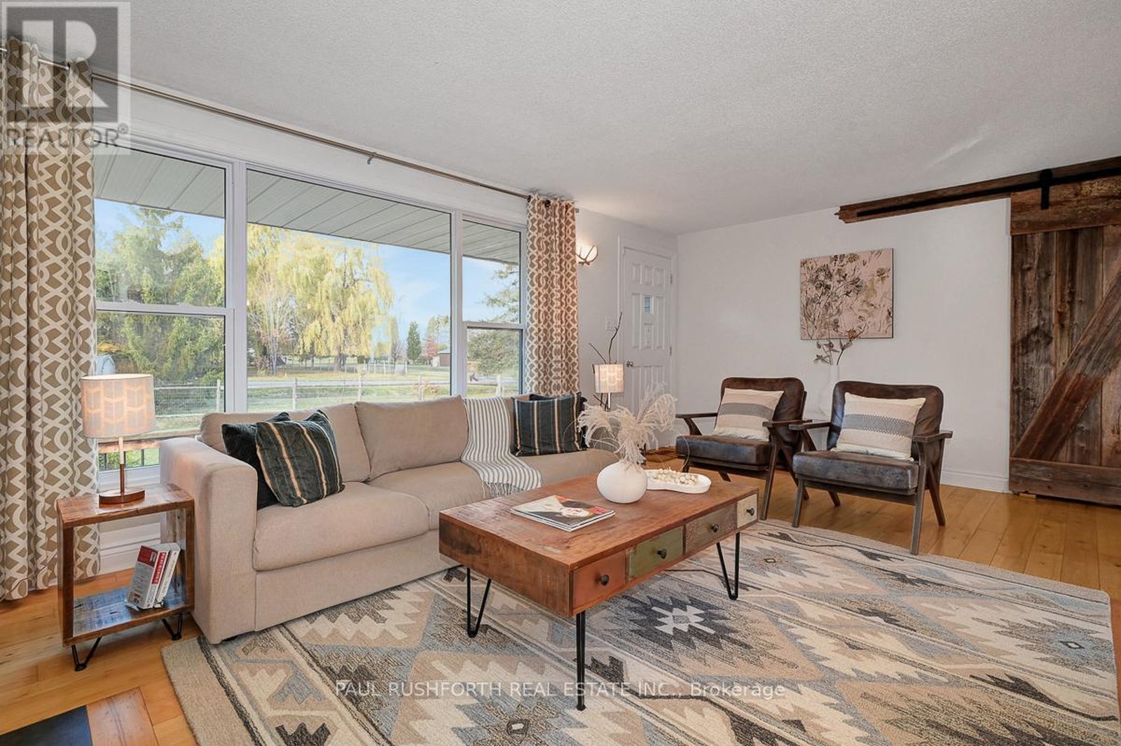 Your peaceful country retreat awaits. Discover the perfect blend of charm, comfort, and space in this meticulously maintained 2+1 bedroom, 2 full bath bungalow, set on over an acre picturesque lot surrounded by nature. Step inside to find rich hardwood floors and a bright, bistro style kitchen that radiates warmth and character. Flooded with natural light and freshly painted, the open concept layout flows seamlessly into a cozy living room with a wood burning fireplace, the perfect place to unwind on cool evenings. A separate dining area opens to a large deck overlooking the above ground saltwater pool, perfect for entertaining or relaxing in your private oasis. The main floor features two inviting bedrooms, including a primary suite, and an elegant full bath with his and her sinks. Downstairs, the fully finished lower level offers a third bedroom, a large entertainment or family room, a second full bath, and generous storage. Outside, enjoy your fully cedar fenced backyard, detached garage with two additional carports- 1 is covered, 1 is frame only, a durable steel roof, and ample parking for all your vehicles and toys. Whether you're entertaining friends, raising a family, or simply seeking tranquility, this property delivers it all. Come experience the serenity. This is home!