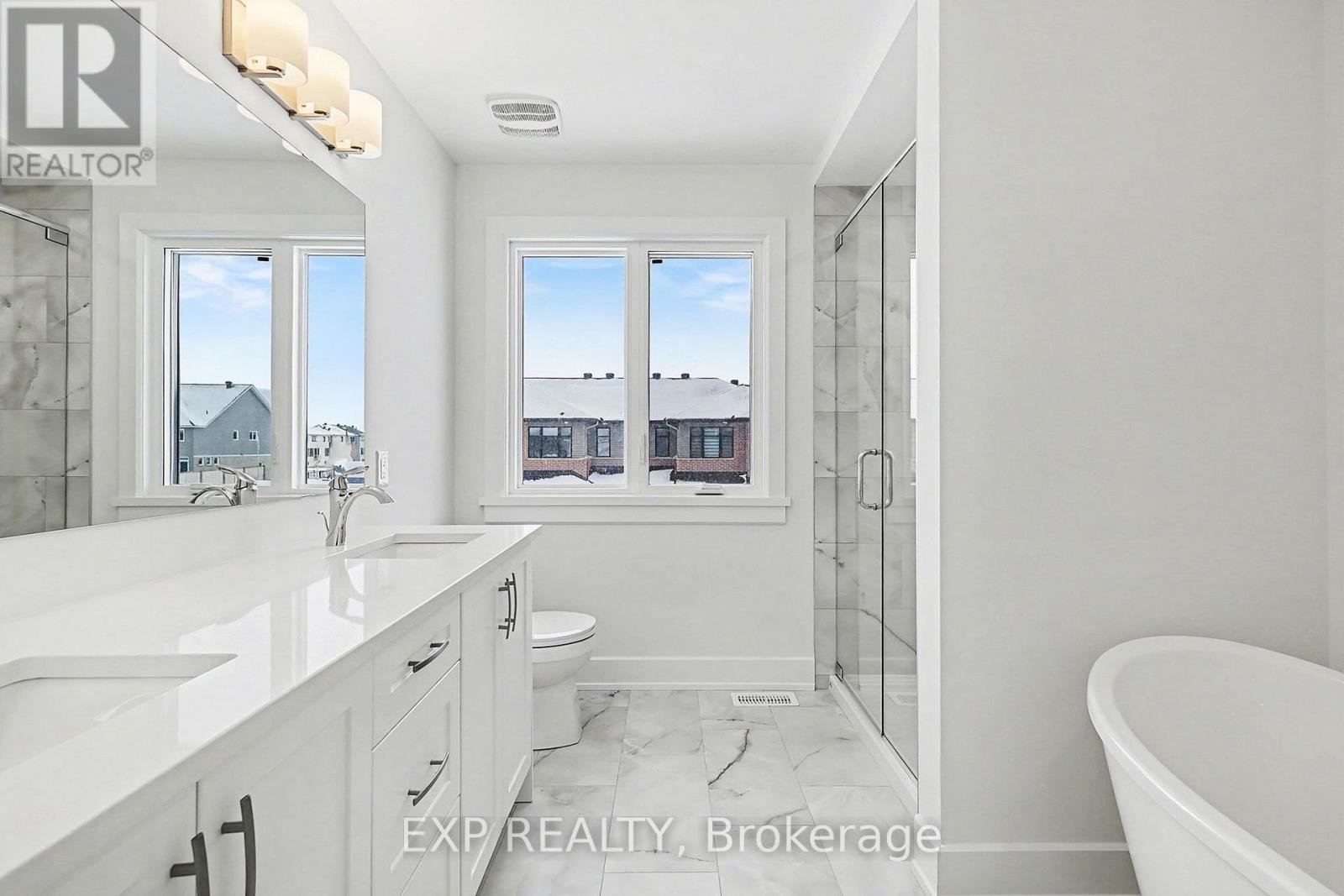 Be the first to call this brand-new Shea Village end unit townhome, home! Built by Patten Homes, this stylish Beckwith Model 2-bedroom, 2.5-bath residence offers the perfect blend of comfort and modern design. The open-concept main floor features 9-foot ceilings and a cozy gas fireplace, creating a warm and inviting space for everyday living and entertaining. Upstairs, you'll find a large primary suite complete with a luxurious 5-piece ensuite, along with the added convenience of second-floor laundry. The finished basement offers a spacious rec room-perfect for family time, a home office, or additional living space. Central air and a central vac rough-in add comfort and practicality. Located in sought-after Shea Village, just steps from the Cardel Recreation Complex and minutes to schools, shopping, and the charming shops and cafés of Stittsville. Don't miss your opportunity to own a brand-new home in one of Ottawa's fastest-growing and most desirable communities!