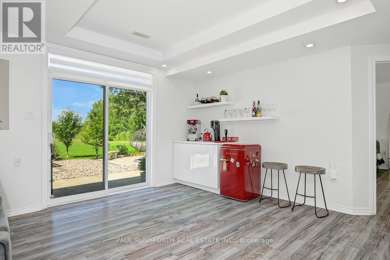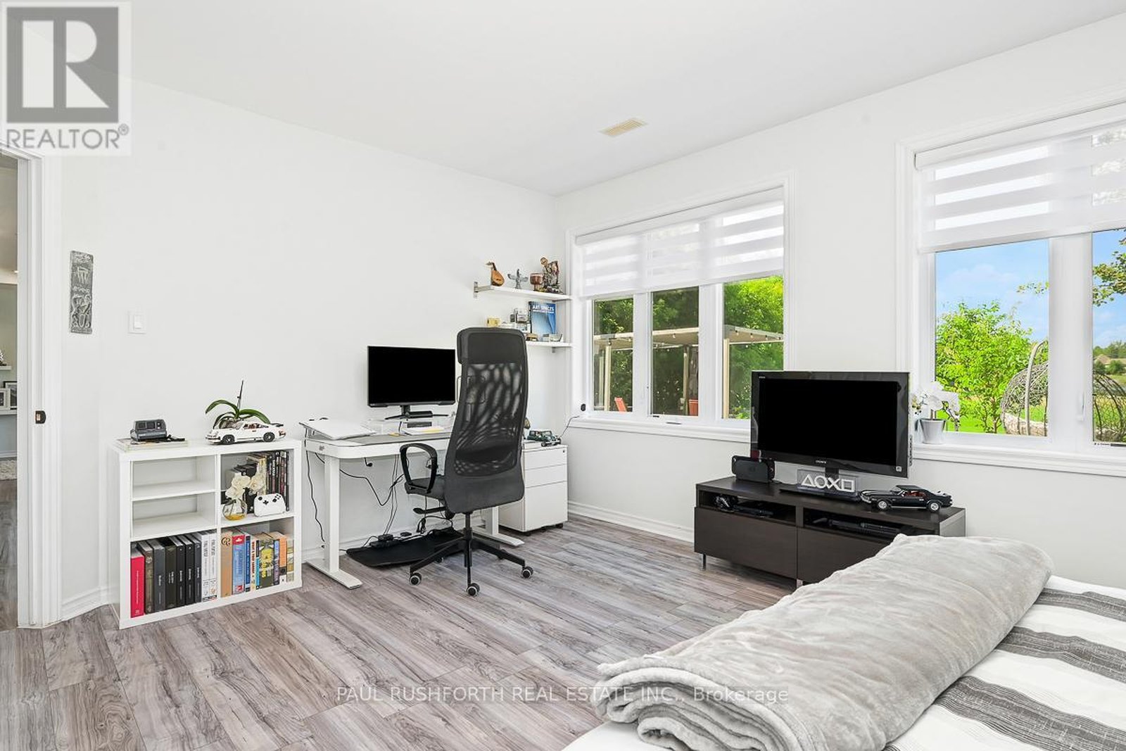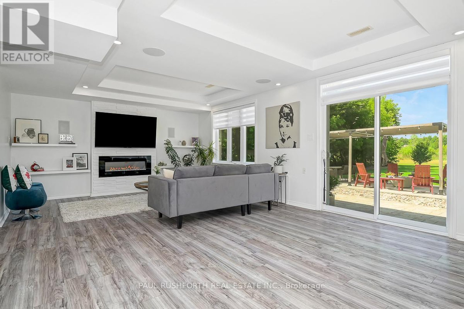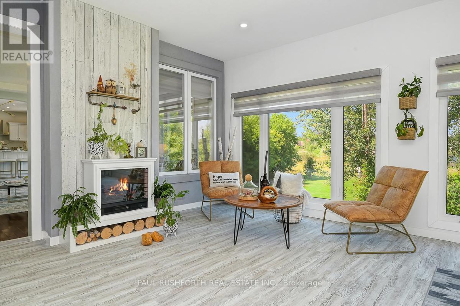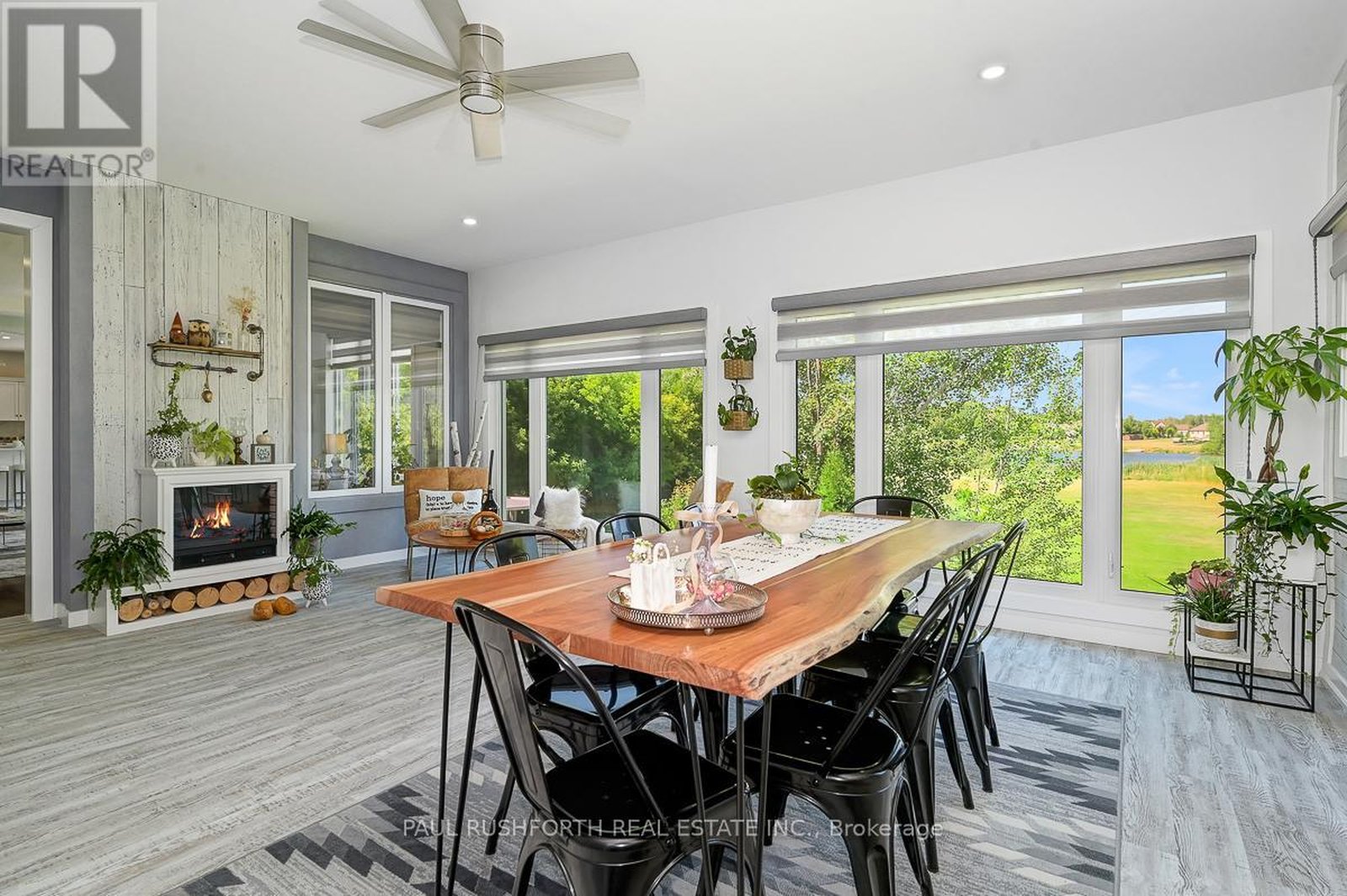 Experience the ultimate in waterfront living with this exceptional 5 bedroom, 5 bath residence set on a private 2.3 acre lot with over 120 feet of direct lake frontage in sought after West Lake Estates. Offering rare year round access to the water, this property delivers a lifestyle that is peaceful, private, and just minutes from the city. Perfectly located only 10 minutes from Kanata's tech hub, shopping, and dining, and just 5 minutes to Highway 417 for an easy downtown commute. Custom built in 2010 and offering approximately 5,000 sq ft of finished living space, this residence has been extensively upgraded with over $500,000 in renovations, blending timeless craftsman design with refined modern finishes. The main level showcases its waterfront setting with expansive living and dining areas, oversized windows, and stunning lake views. The chef's kitchen features Calcutta quartz counters and backsplash, white shaker cabinetry, oversized peninsula, and high end appliances. A bright breakfast area and inviting family room with gas fireplace flow into a sun-filled three season room with panoramic lake views. A dedicated office, oversized mudroom, and convenient laundry with garage access complete this level. Upstairs, three suite style bedrooms offer comfort and privacy, including a primary retreat with tranquil views and a spa inspired ensuite with freestanding tub, dual vanities, and glass walk in shower. The fully finished walkout lower level adds two bedrooms, a full bathroom, recreation space, and ample storage. Outdoors, enjoy landscaped grounds with mature trees, stone patio, pergola, fruit-bearing orchard, and direct lake access perfect for relaxing or entertaining. Additional features include a three car garage, 10 zone sprinkler system, GenerLink wiring, 40amp EV receptacle, new furnace, A/C, owned water heater, and epoxy-coated porch. Annual co-tenancy fee of $100 covers lake maintenance.