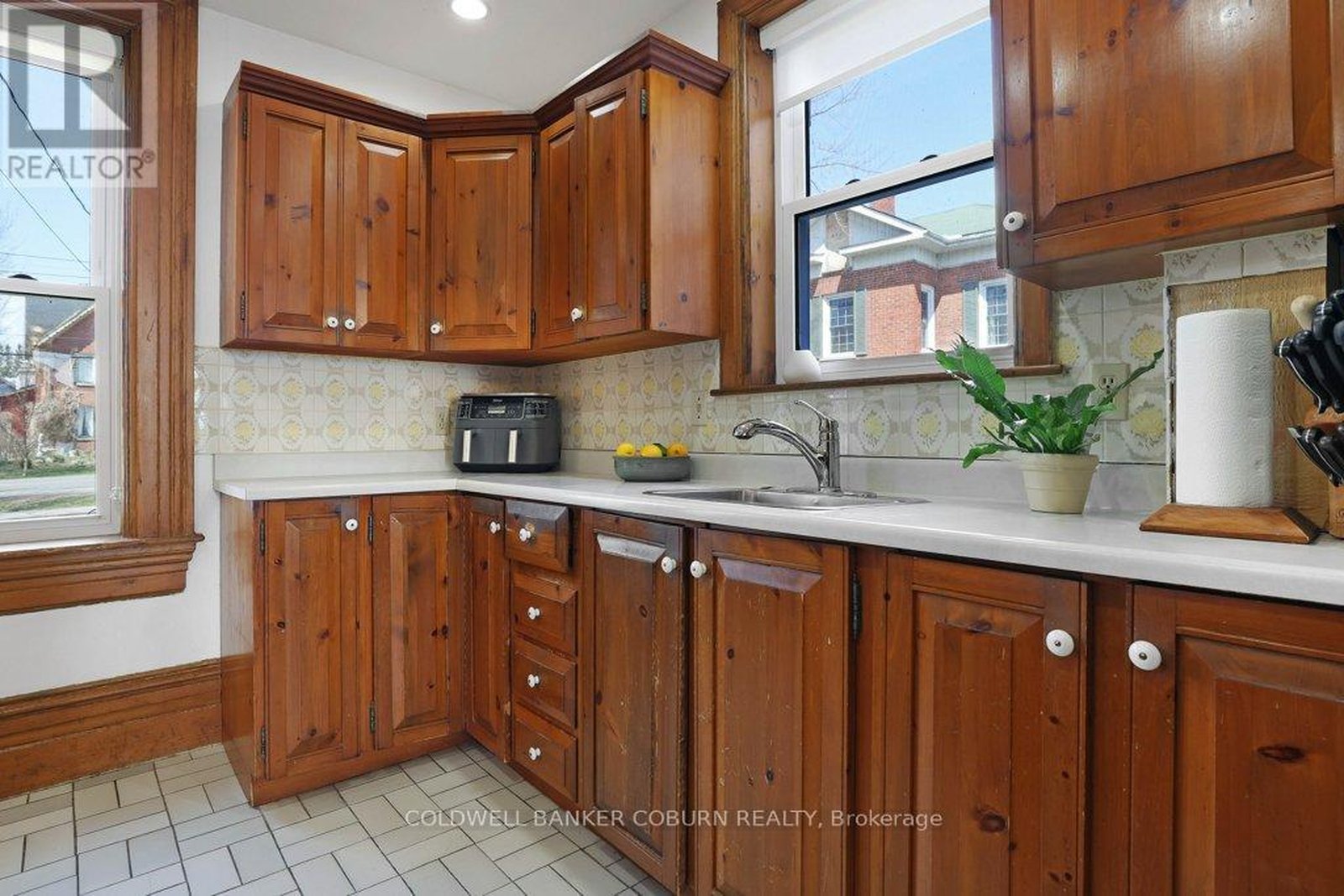 THE CENTENNIAL COTTAGE at 81 Lakeshore Drive, Morrisburg is a rare Victorian-era brick residence completed in 1875 and offered for sale for the first time in 4 decades. Upon entering, your eyes are immediately drawn through elegant sight lines to the majestic St. Lawrence River. The centre hall showcases a magnificent, curved staircase rising to the second floor. Strategically placed windows flood the home with natural light and allow captivating river views. Rich in Victorian character, the home features generously proportioned rooms, impressive baseboards, and soaring ceilings accented with distinctive crown mouldings. The primary room ceiling heights on the main floor measure approximately 10.6 feet and 9.25 feet on the second level. Above each exterior window is a decorous cast iron relief of a young Queen Victoria, adding architectural charm and historical significance. The former maid's quarters on the on the east side have been thoughtfully converted into an attached garage. Two staircases provide access to the basement, which offers excellent ceiling height and large windows overlooking the river. The property extends to the water's edge and is not subject to an OPG licence. Ideally located within walking or cycling distance to shopping, banks, restaurants, parks, swimming beach, boat launch & dock, medical & detail clinics, golf, curling, arena, library and the renowned Upper Canada Playhouse, this home combines heritage elegance with everyday convenience. A virtual tour, additional interior photographs, aerial drone imagery, and detailed floor plans are available. Upgrades include 37 windows replaced between 2016-2019, garage door replace in 2018, two man doors replaced in 2018-2019, retaining wall and shoreline restoration completed in 2019, new gas furnace installed in 2021, roof shingles & eavestroughs replaced in 2022, and sewer lateral replaced. Average monthly utility costs are approximately $254 for gas, $74 for hydro, and $97 for water and sewer.