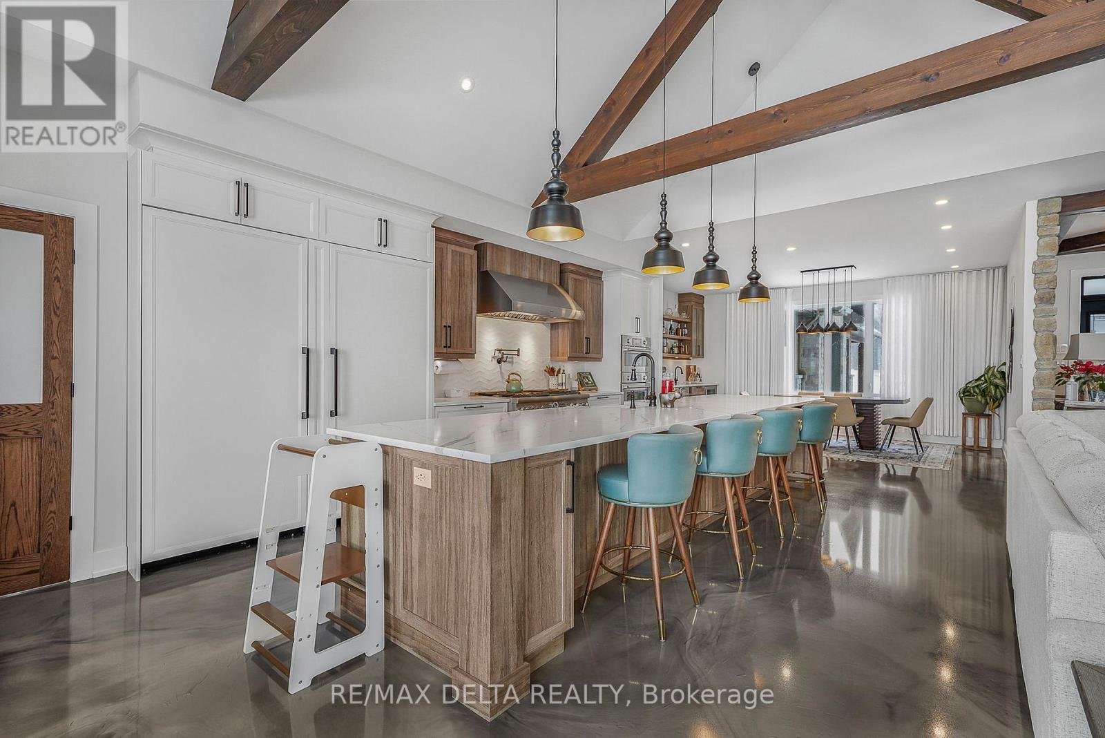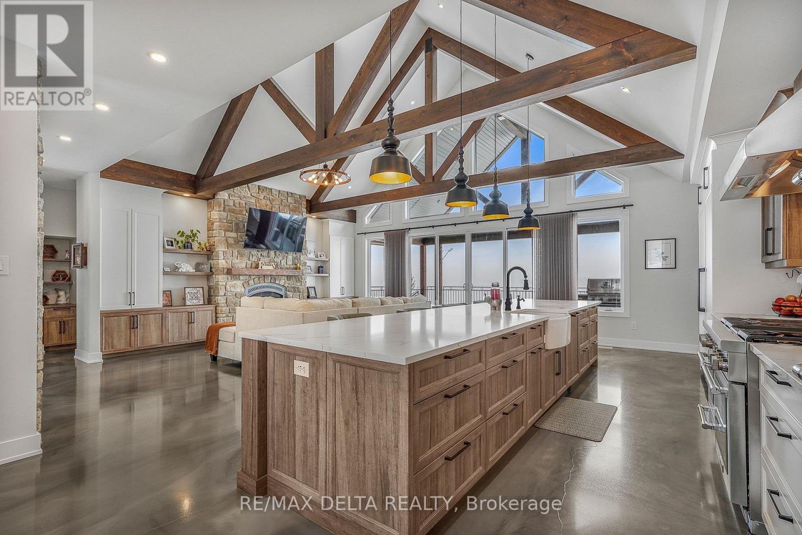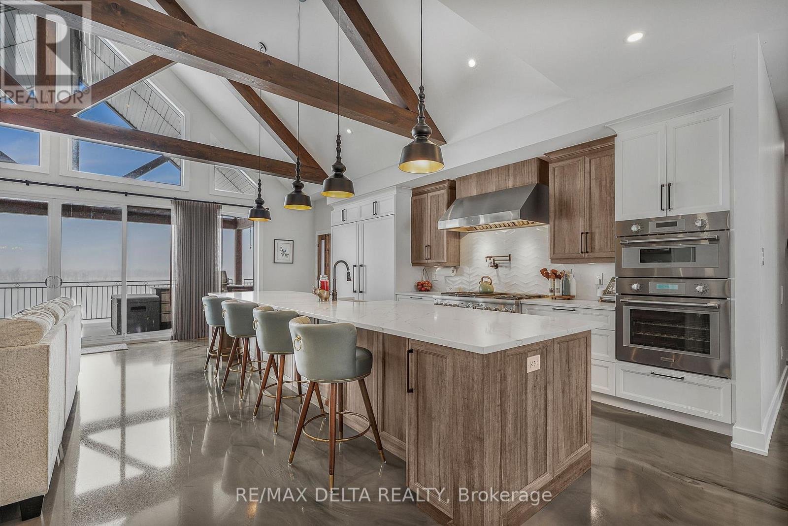 This stunning bungalow spans over 6,785 sqft of living space, complemented by a spacious 1,639 sqft triple car garage. Step inside to be captivated by the stunning vistas of the Ottawa River. The gourmet kitchen features Thermador appliances, a large island, a walk-in pantry, and ample storage.The primary bedroom is a private retreat, offering direct access to the deck, a generous walk-in closet, and a luxurious 5-piece en-suite bathroom. The main floor also includes a bedroom, a bathroom, and a laundry room, all exuding a sense of luxury and comfort. The walk-out basement is an entertainer's paradise, featuring an indoor in-ground pool and a spacious family room with a fully equipped bar. The basement offers two more bedrooms, a bathroom, and access to the basement of the garage, which includes an equipment elevator. Nestled right on the Ottawa River, this exquisite home is ready to welcome you. See link for more info, video + pictures. Paved (fall 2025)