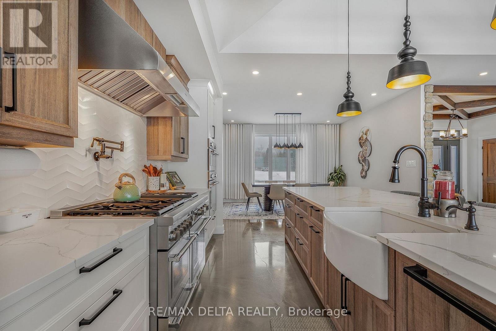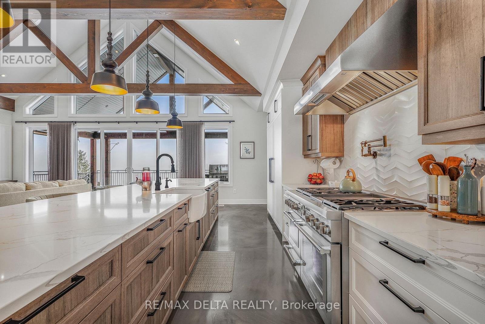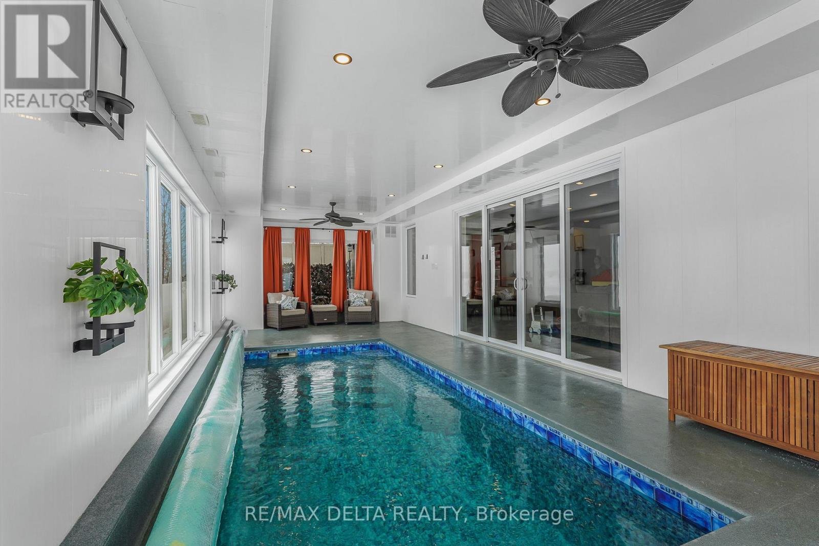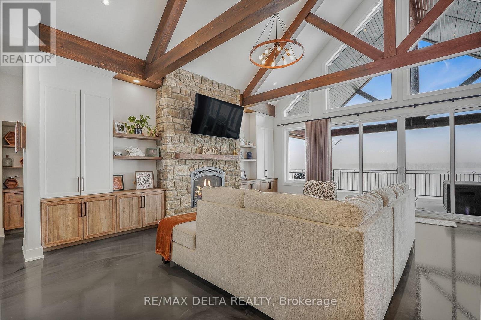 This stunning bungalow spans over 6,785 sqft of living space, complemented by a spacious 1,639 sqft triple car garage. Step inside to be captivated by the stunning vistas of the Ottawa River. The gourmet kitchen features Thermador appliances, a large island, a walk-in pantry, and ample storage.The primary bedroom is a private retreat, offering direct access to the deck, a generous walk-in closet, and a luxurious 5-piece en-suite bathroom. The main floor also includes a bedroom, a bathroom, and a laundry room, all exuding a sense of luxury and comfort. The walk-out basement is an entertainer's paradise, featuring an indoor in-ground pool and a spacious family room with a fully equipped bar. The basement offers two more bedrooms, a bathroom, and access to the basement of the garage, which includes an equipment elevator. Nestled right on the Ottawa River, this exquisite home is ready to welcome you. See link for more info, video + pictures. Paved (fall 2025)