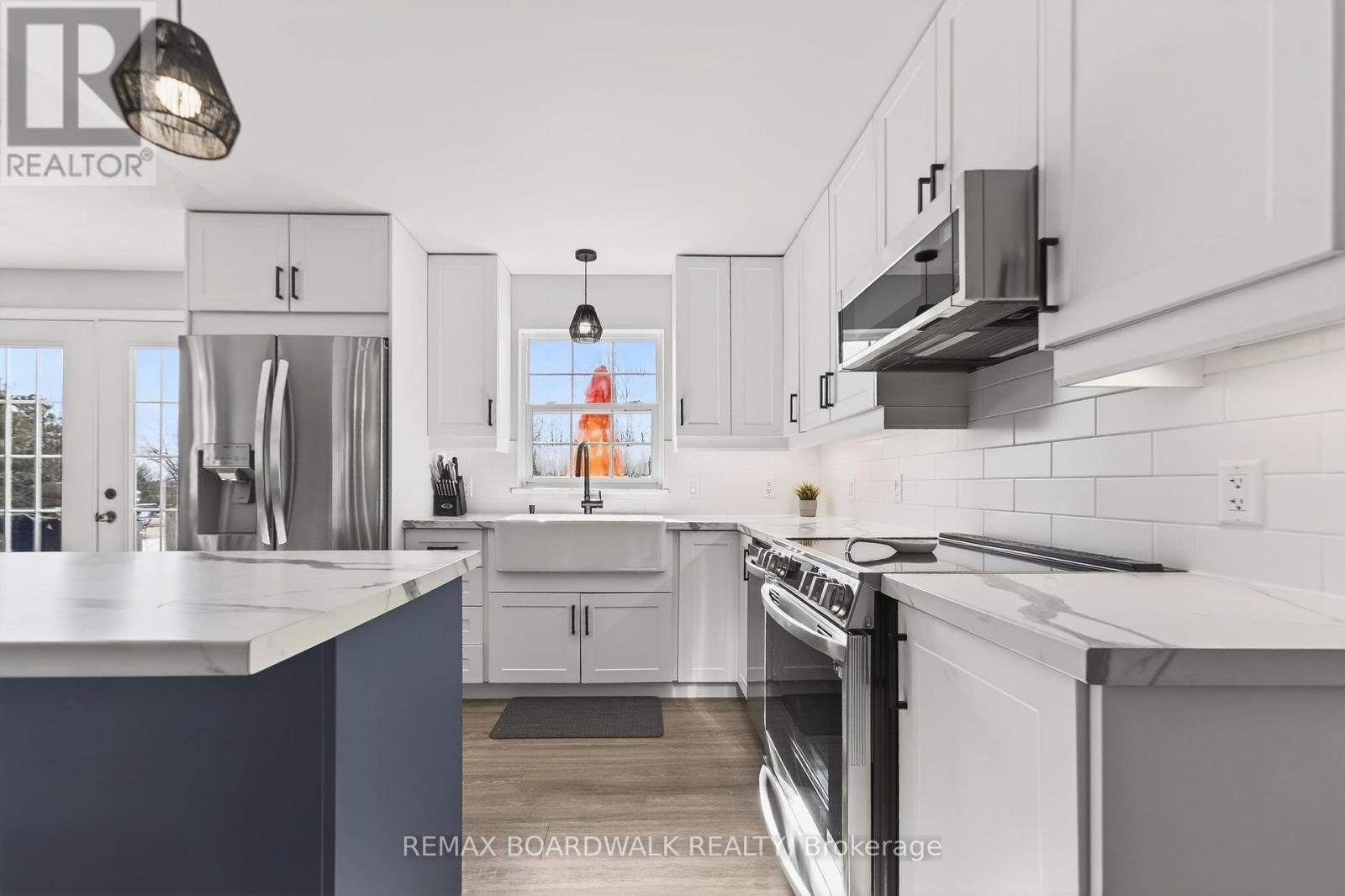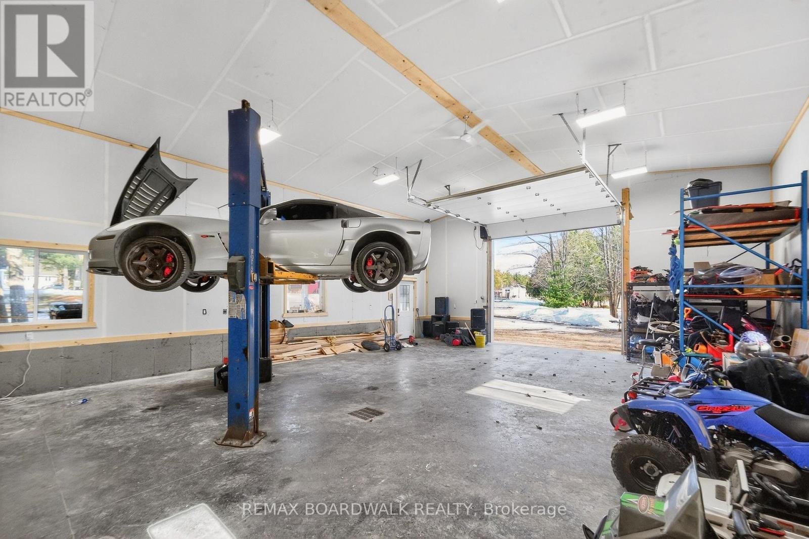 This Detached Bungalow is Located in a Prime Location Situated Across the Road from White Lake & the Boat Launch. CUSTOM DETACHED GARAGE(2022) IS A SHOWSTOPPER!! (30Ft x 50Ft & 16.5Ft Cathedral Ceiling, Fully Insulated & Drywalled, w/a Loft(Pine), Heated/Cooled & 100 Amp Service). This Home Sits on a 1 Acre Lot w/Mature Treeline Across the Back & Stunning Sunsets Views! Wrap Around Deck w/New Armour Stone Gardens(2025) shows Beautifully in the Summer. Open Concept Main Floor Offers a Great Space to Entertain or Hangout w/Family. Fully Renovated Kitchen(2025) w/New Stainless Steel Appliances, Modern White Cupboards, Subway Tile Backsplash, Farmhouse Sink & Island w/Breakfast Bar. New Vinyl Plank Flooring Throughout the Main Level. Side Door Leads to your Wrap Around Deck & Back Door to the Beautifully Landscaped Backyard w/Deck & Above Ground Pool. Lower Level Features Spacious Family Room w/Upgraded Pot Lights & the 4th Bedroom. 5 Piece Main Bath Updated(2020). A/C(2022), Propane Furnace(2022). Garage has New Heat Pump & Propane Furnace. Home Freshly Painted(2026). Home is Very Dry- No Sump Pump ever Needed. 3 Sheds Included- 1 w/Power. Home has 200 Amp Service. No Rental Items. Too Much to List, w/$200,000 in Upgrades. See Attached Feature Sheets!